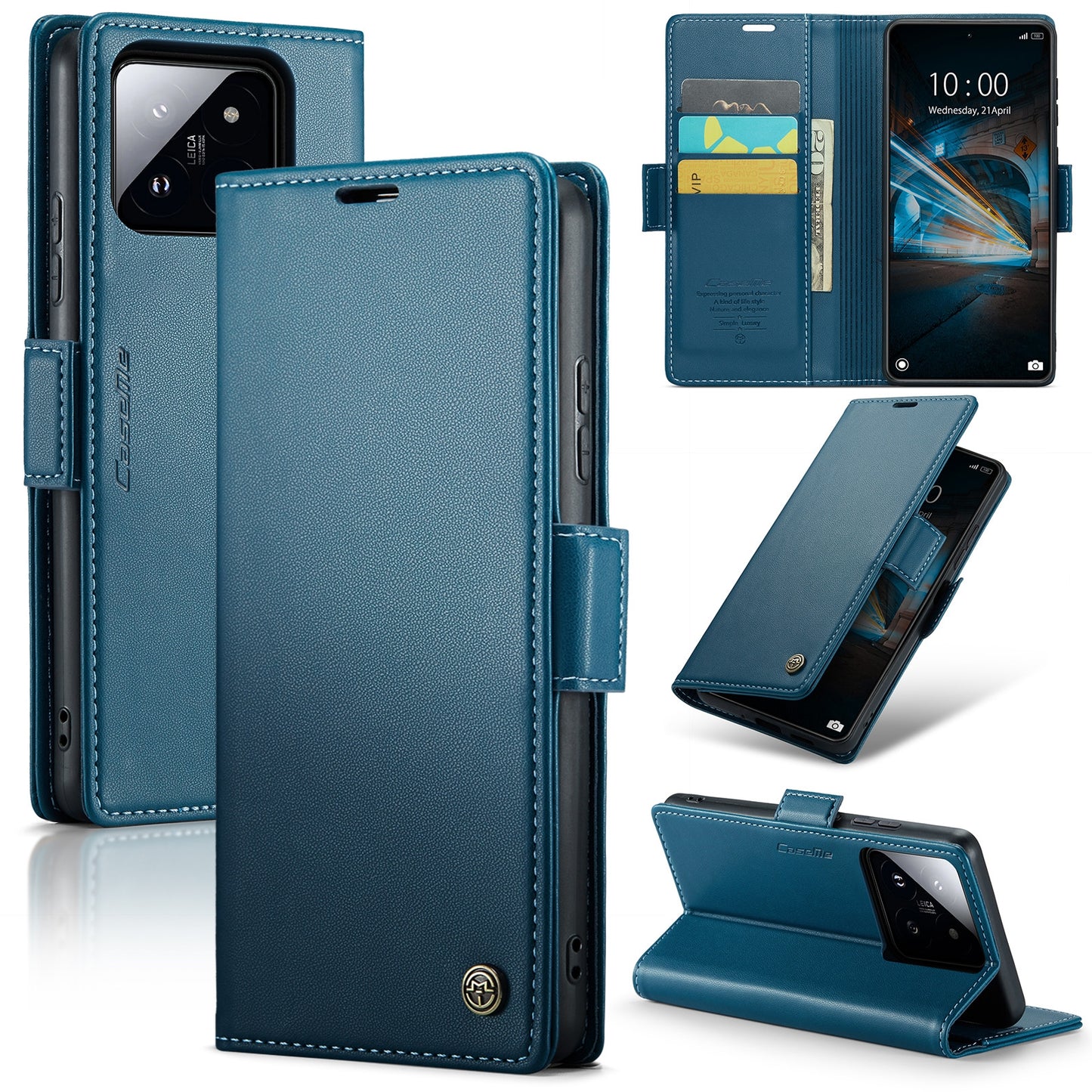 Xiaomi 14 Leather Case - RFID Anti-Theft, Litchi Texture, Wallet & Stand Design