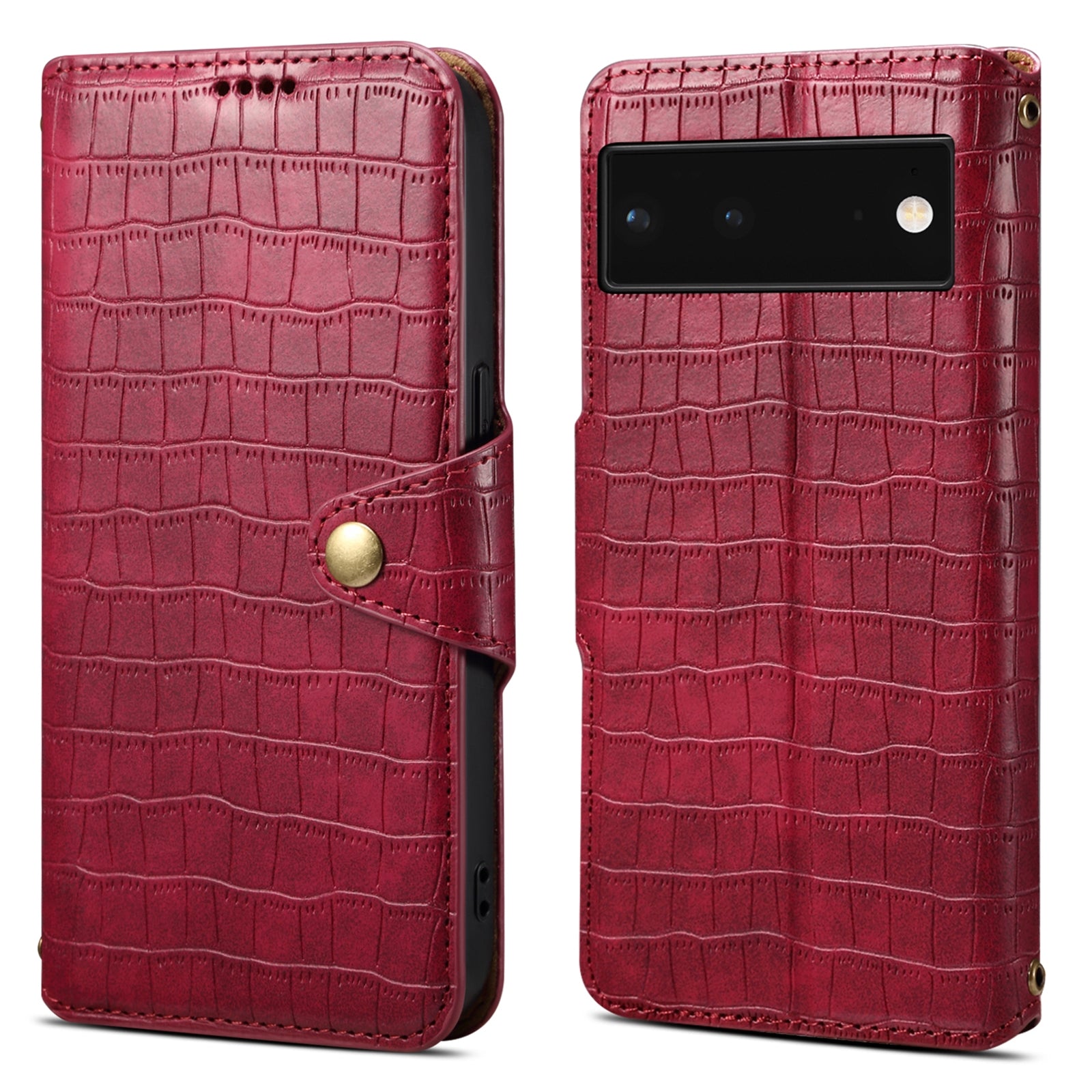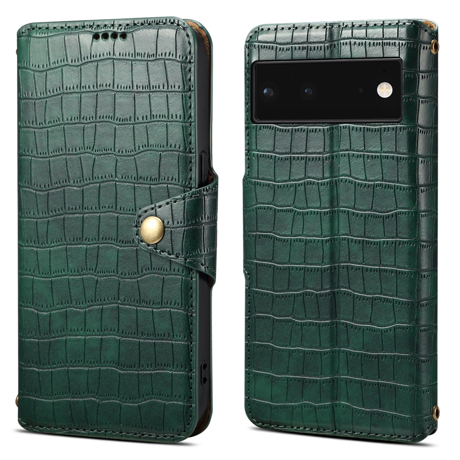Google Pixel 6 Denior Leather Case - Crocodile Texture with Oil Edge, Wallet & Kickstand Features