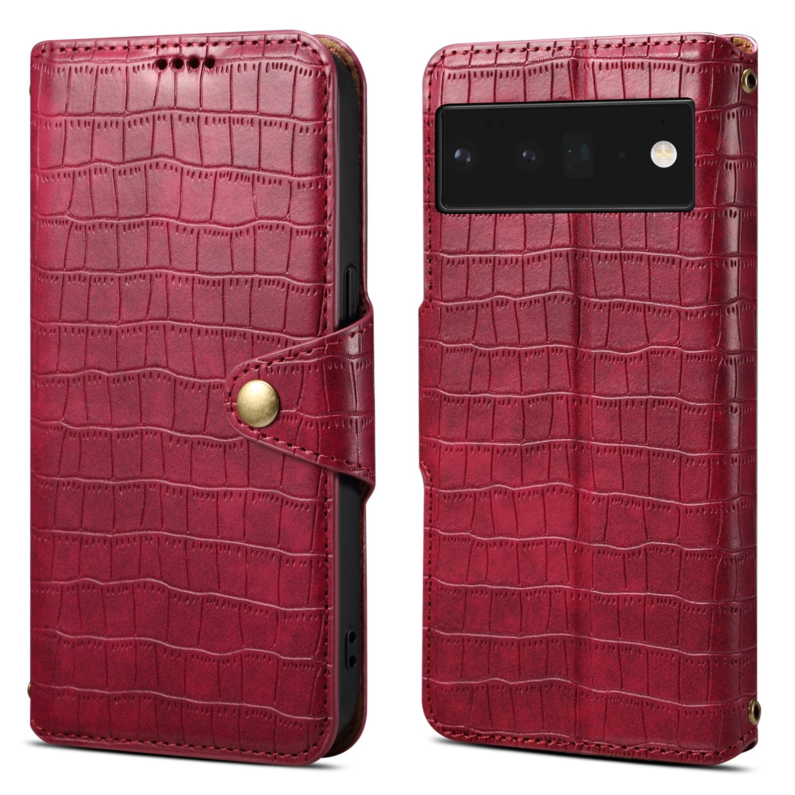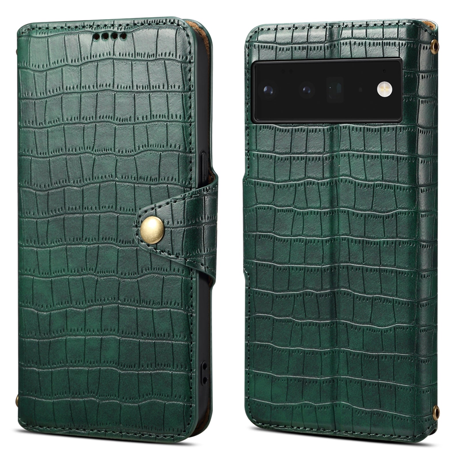 Google Pixel 6 Pro Denior Leather Case - Crocodile Texture with Oil Edge, Wallet & Kickstand Features