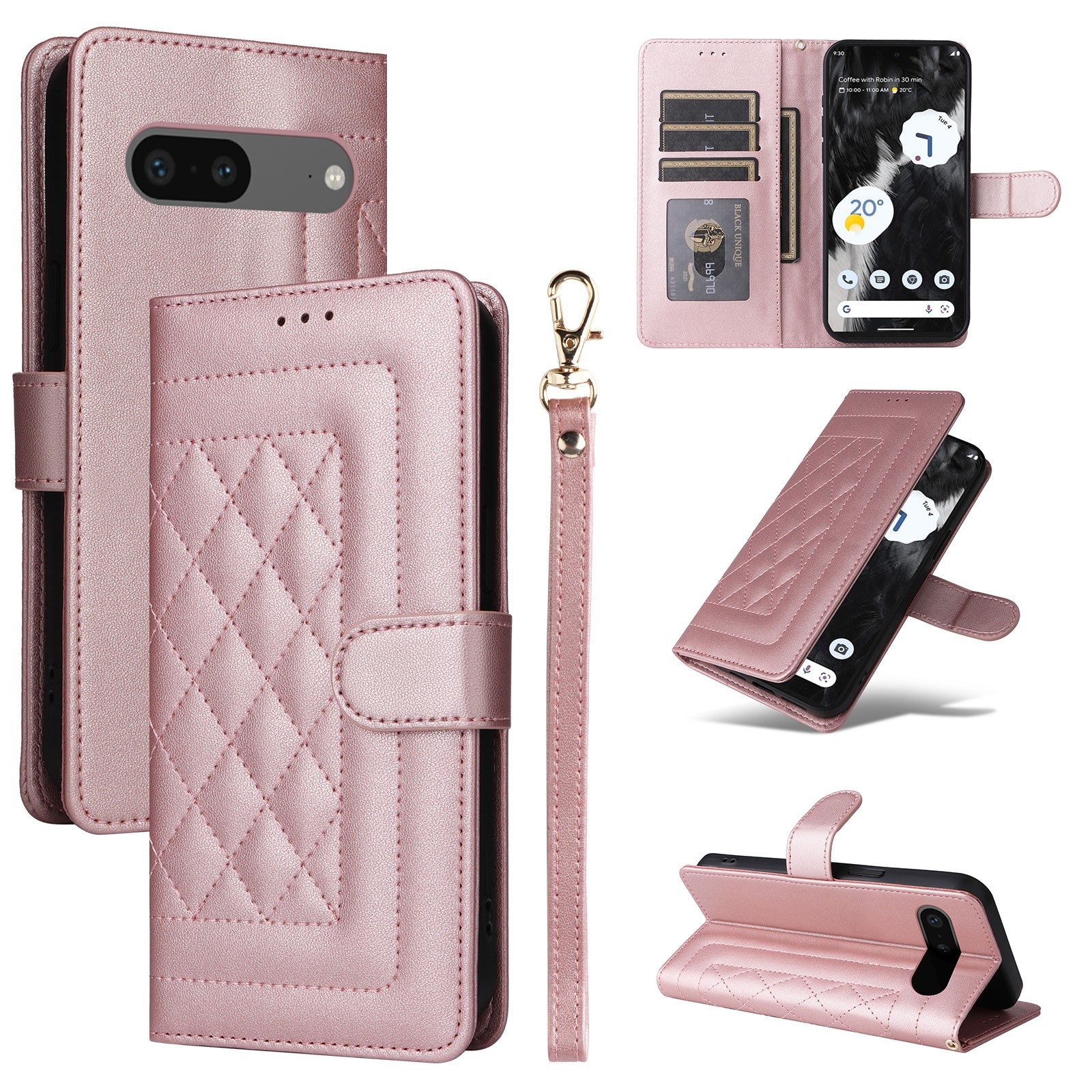 Google Pixel 7 Diamond Lattice Leather Flip Phone Case - Durable and Convenient Holder with Precision Cutouts