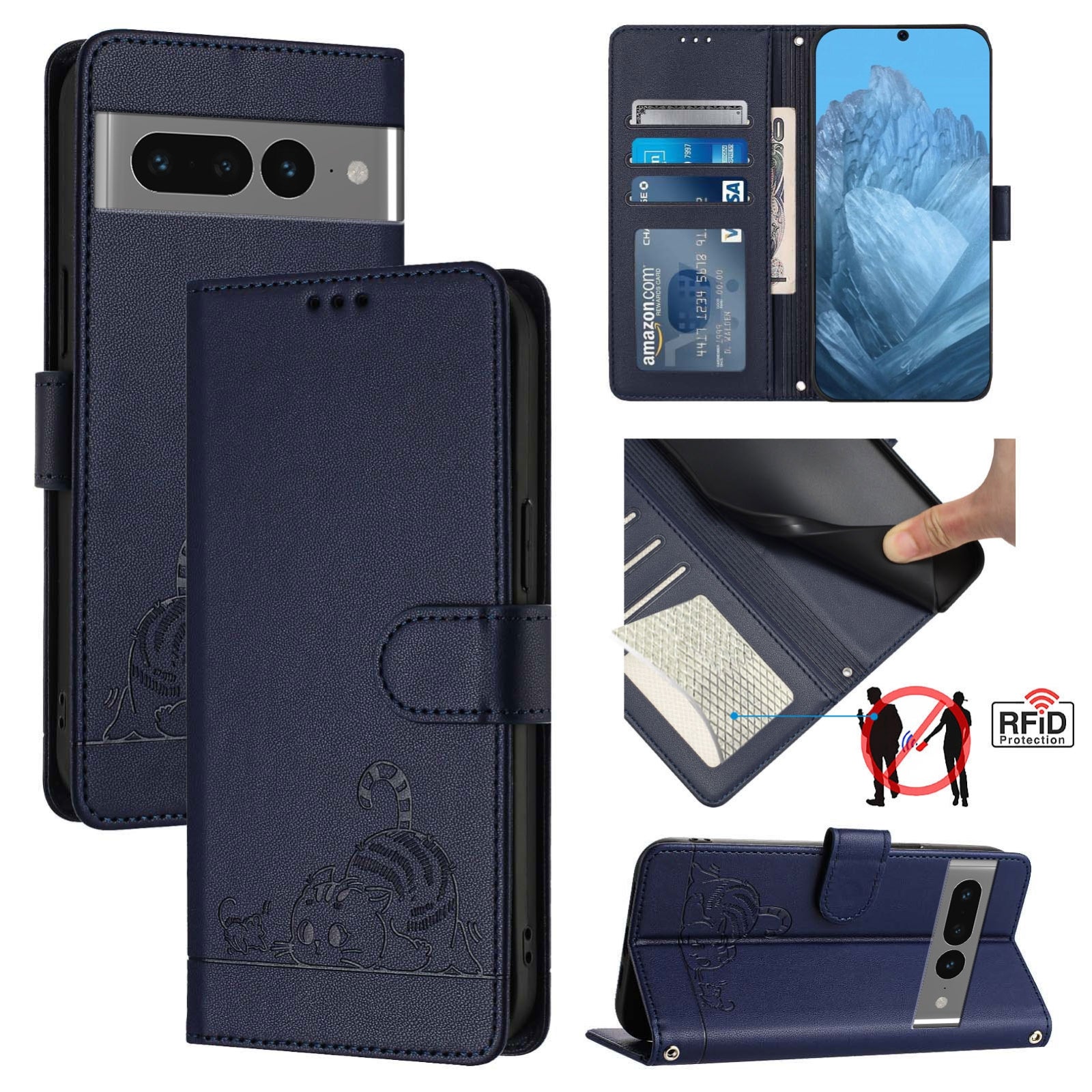 Explore the perfect blend of style and functionality with our Google Pixel 7 Pro 5G Leather Phone Case. Featuring a charming cat and rat embossed pattern, this case offers multiple benefits:
