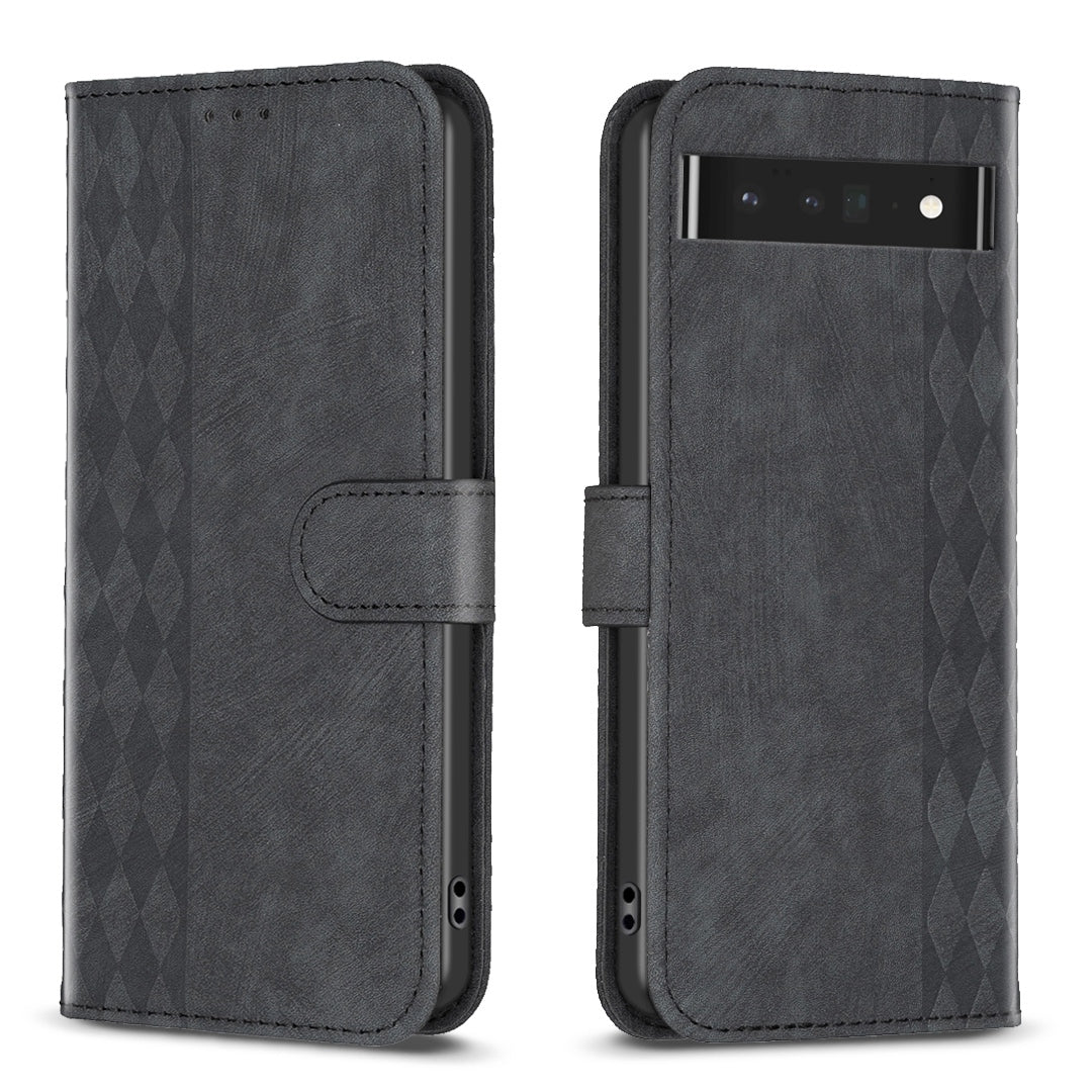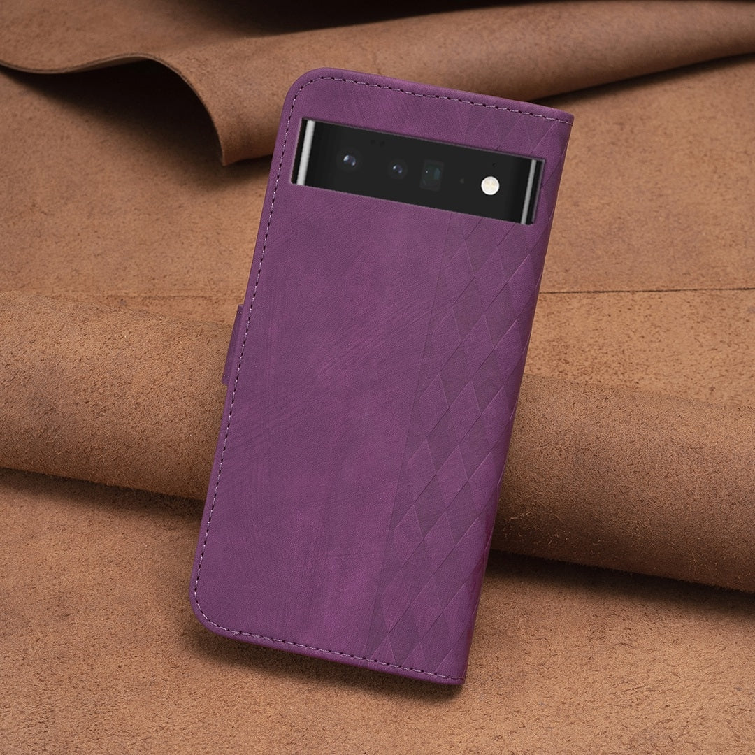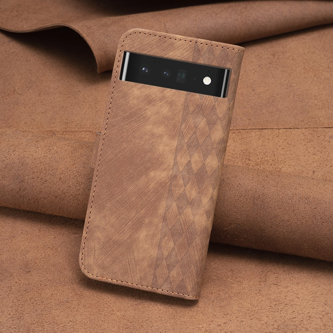 Google Pixel 7 Pro Case - Embossed Plaid Leather Wallet Cover with Card Slots, Kickstand, and 360 degree Protection