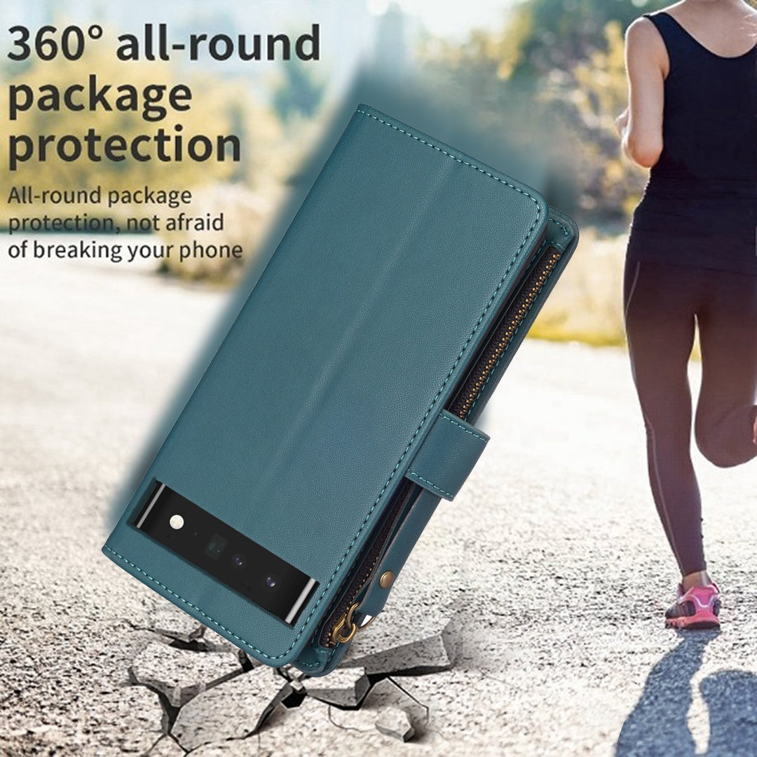 Google Pixel 7 Pro Leather Flip Phone Case with Zipper Wallet and 9 Card Slots, Durable PU + TPU Material