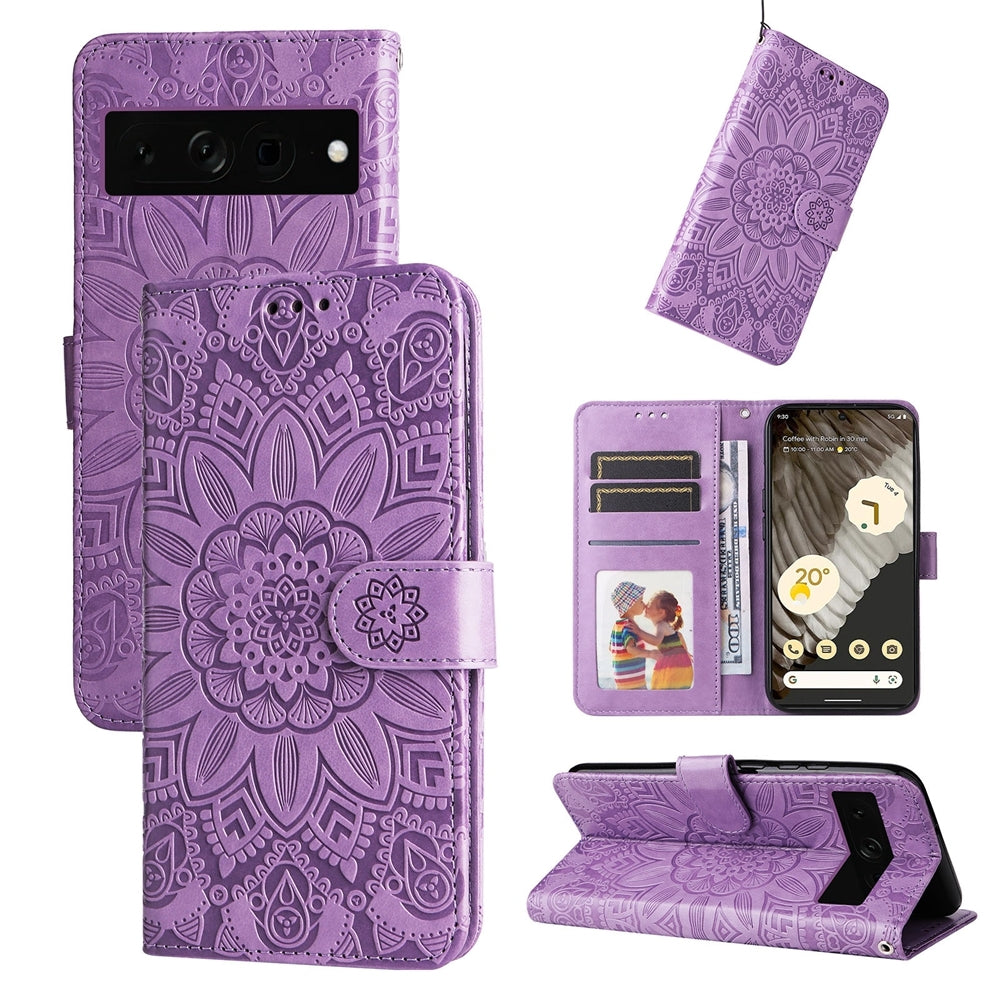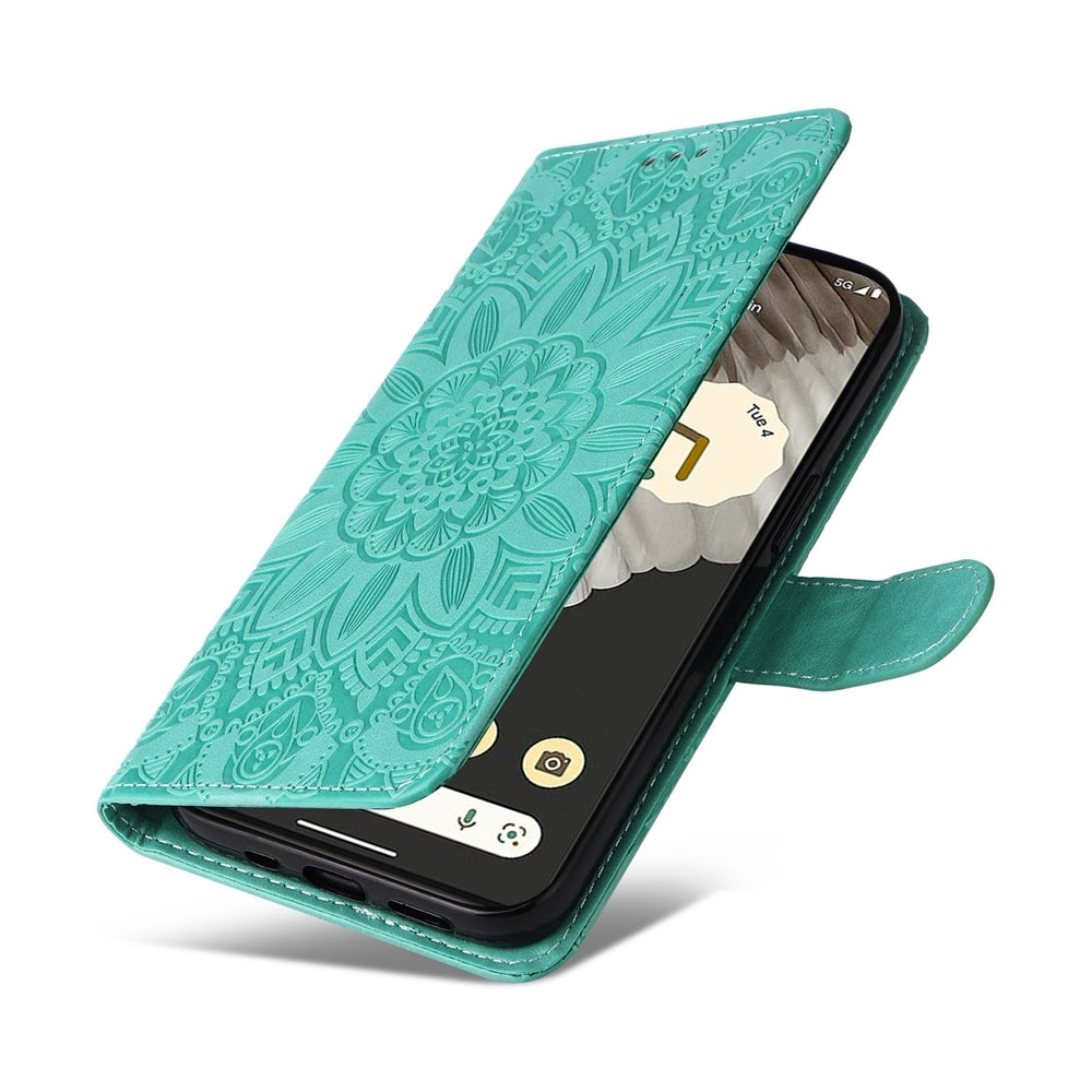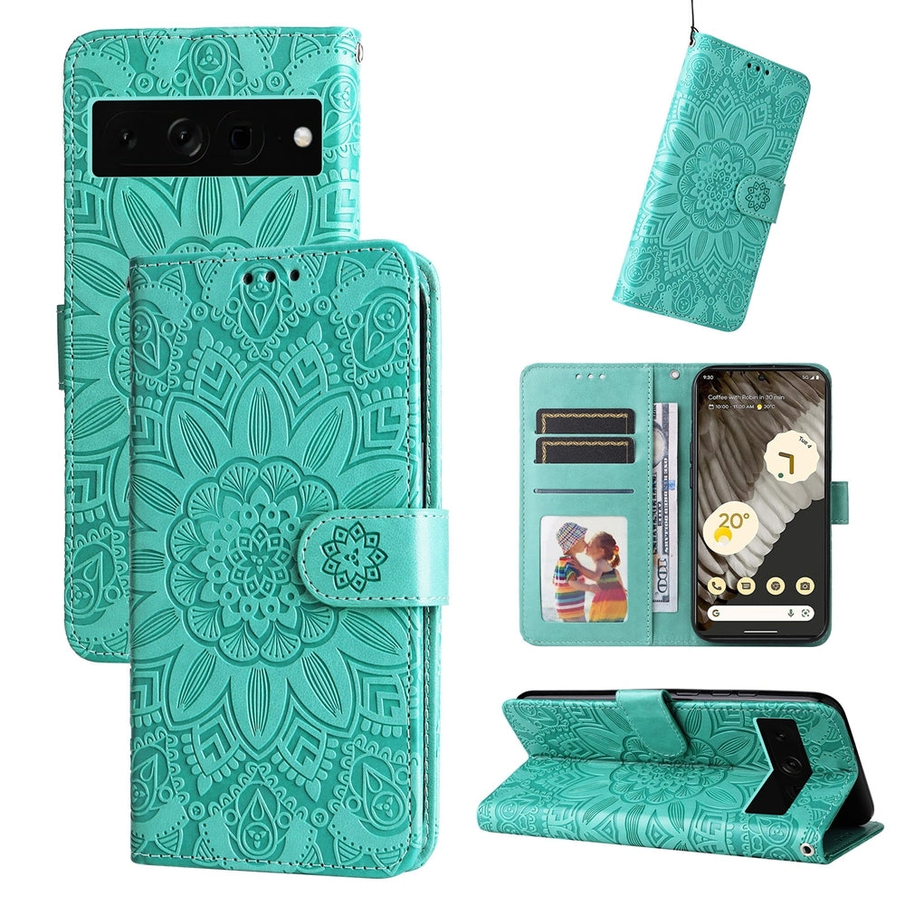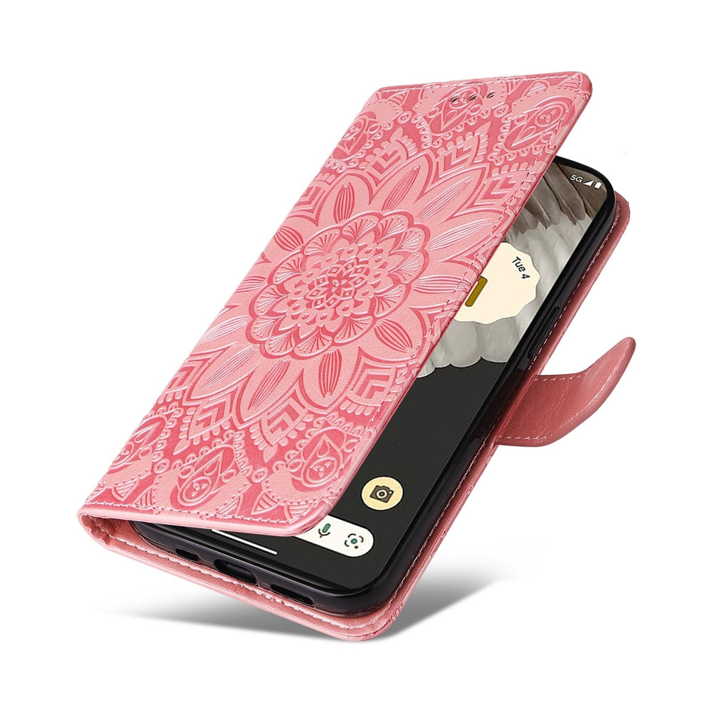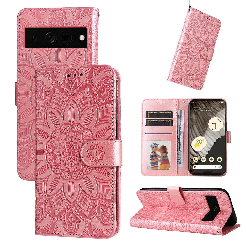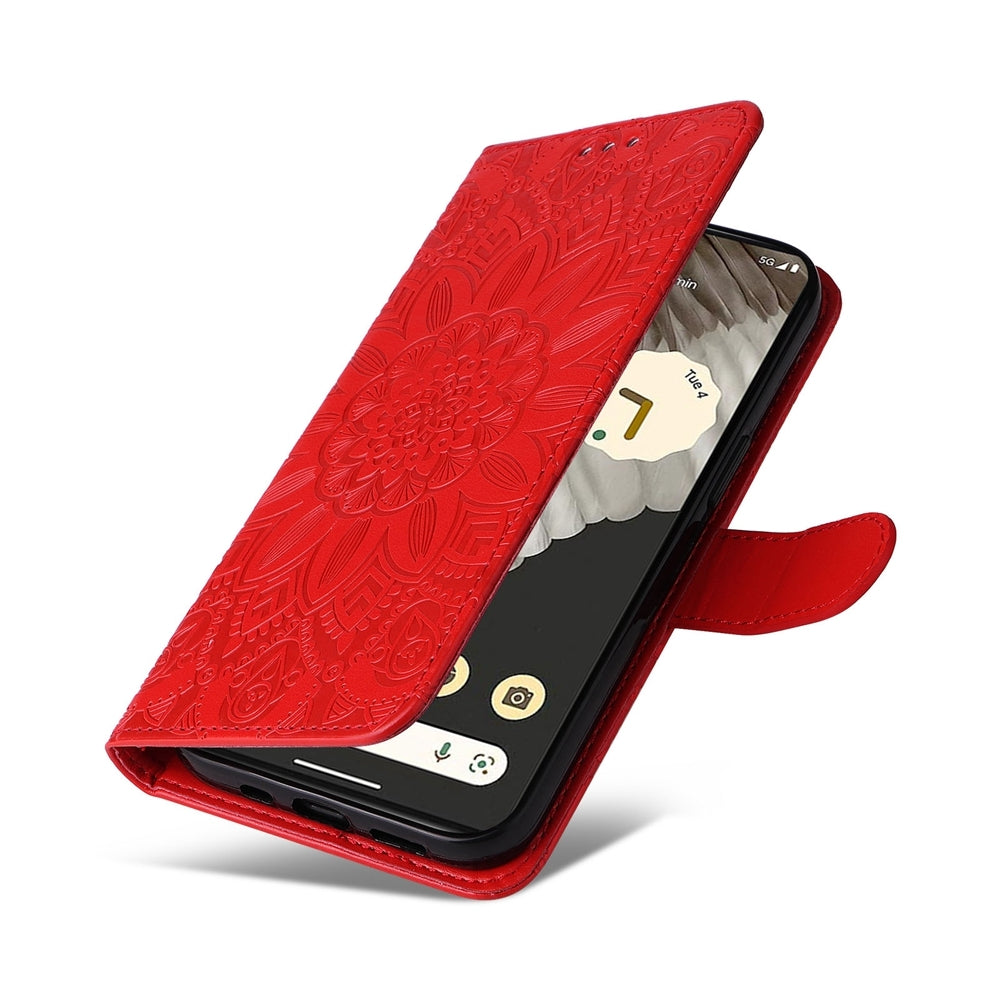 Google Pixel 7 Pro Sunflower Embossed Leather Wallet Phone Case with Kickstand and Card Holder