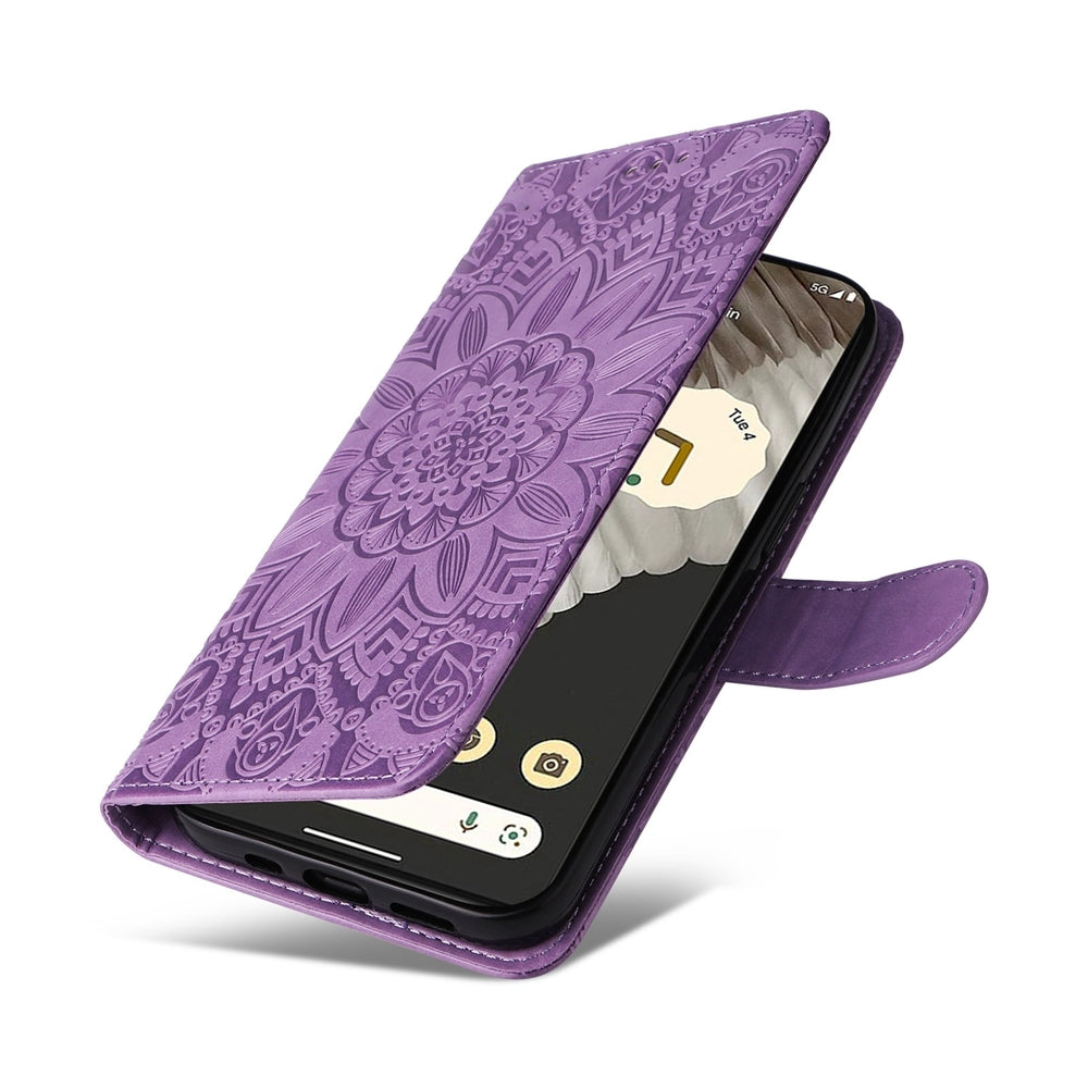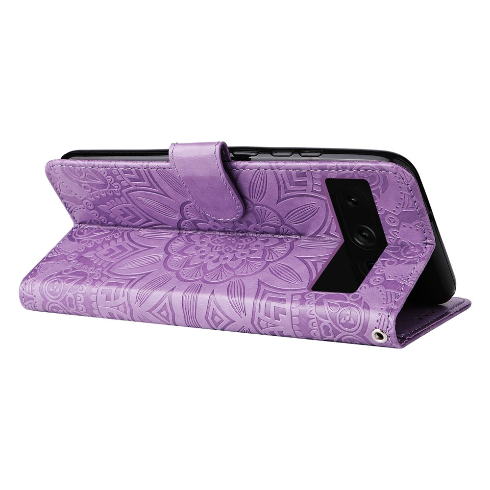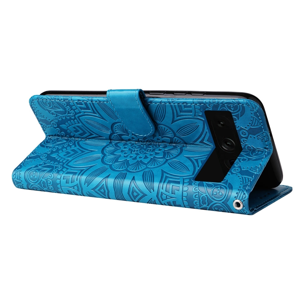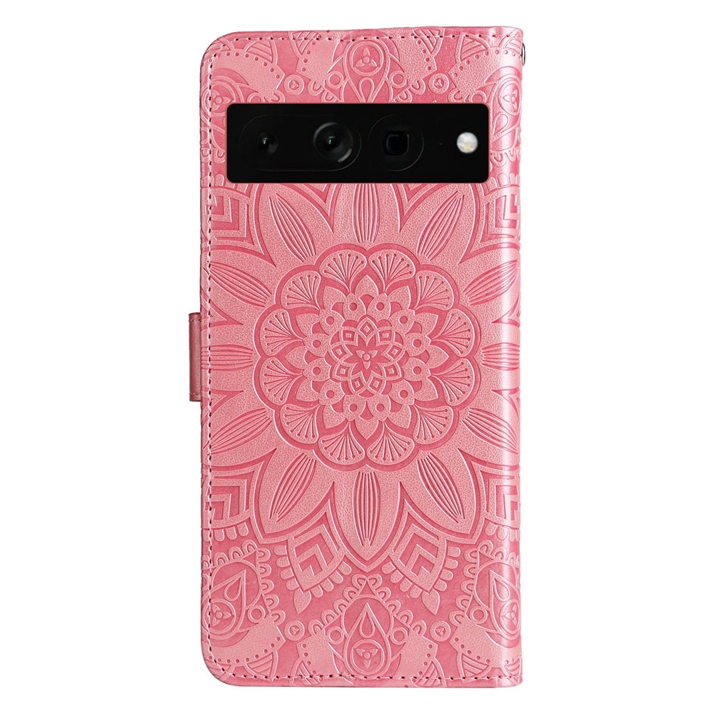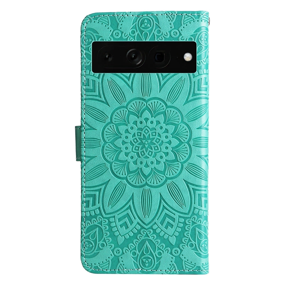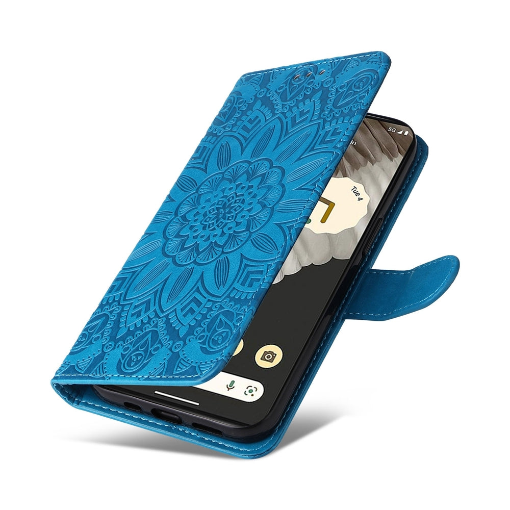 Google Pixel 7 Pro Sunflower Embossed Leather Wallet Phone Case with Kickstand and Card Holder