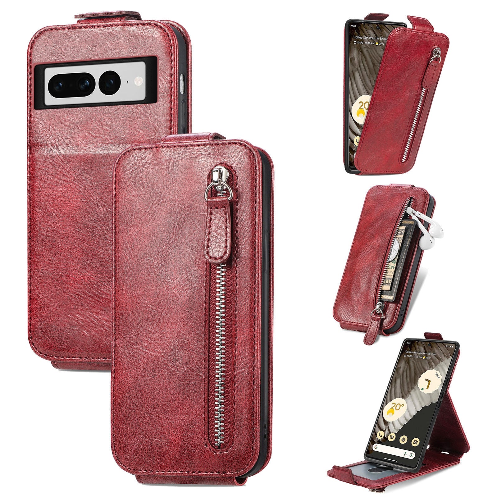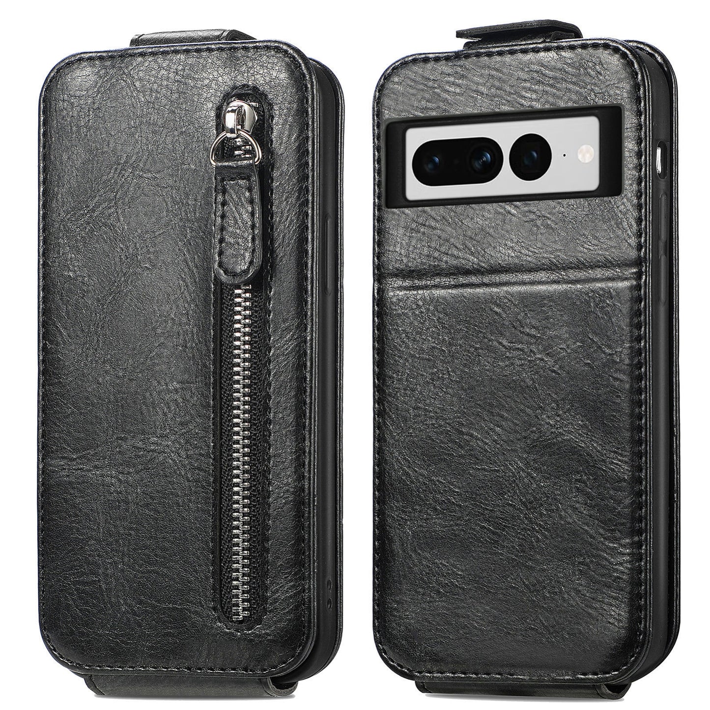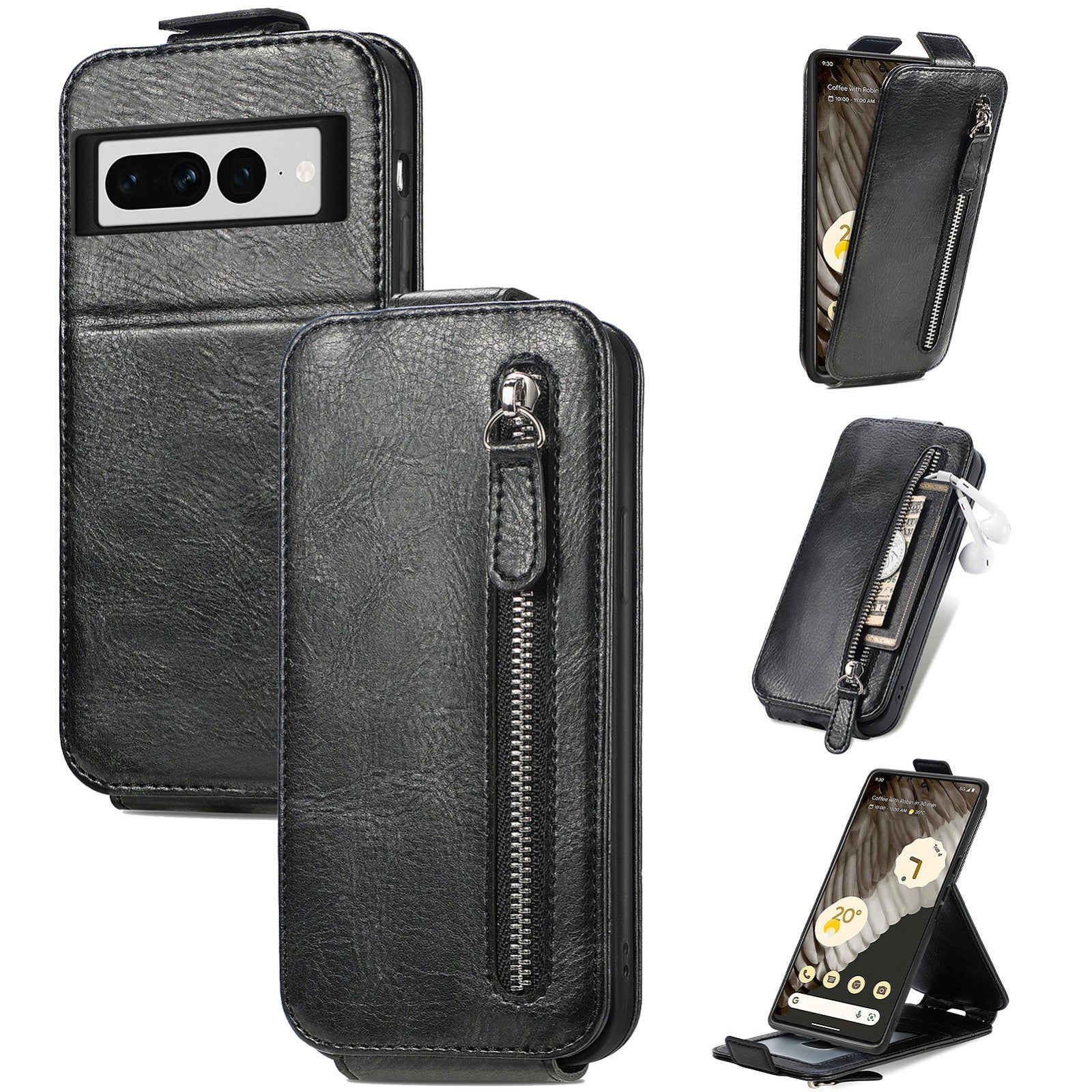 Google Pixel 7 Pro Zipper Wallet Case - Vertical Flip Leather Phone Cover with Multiple Card Slots and Stand