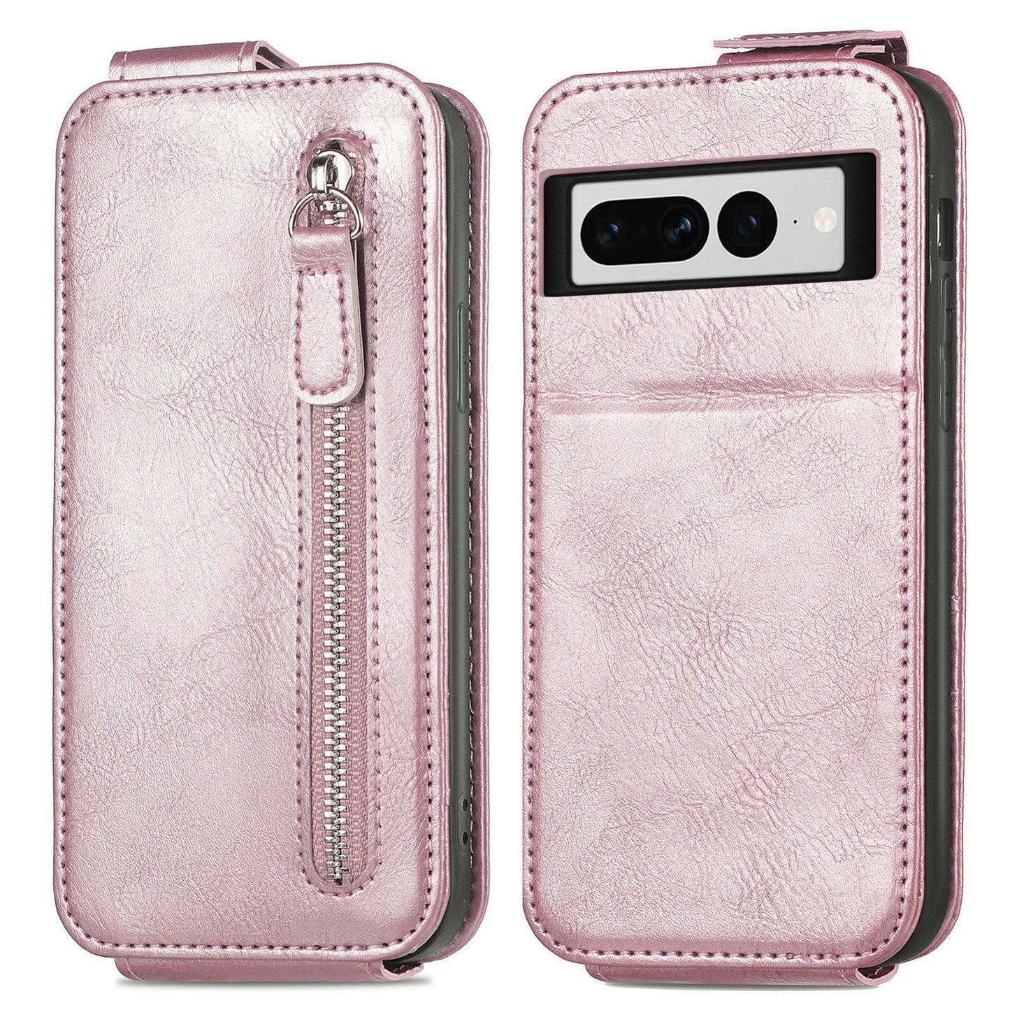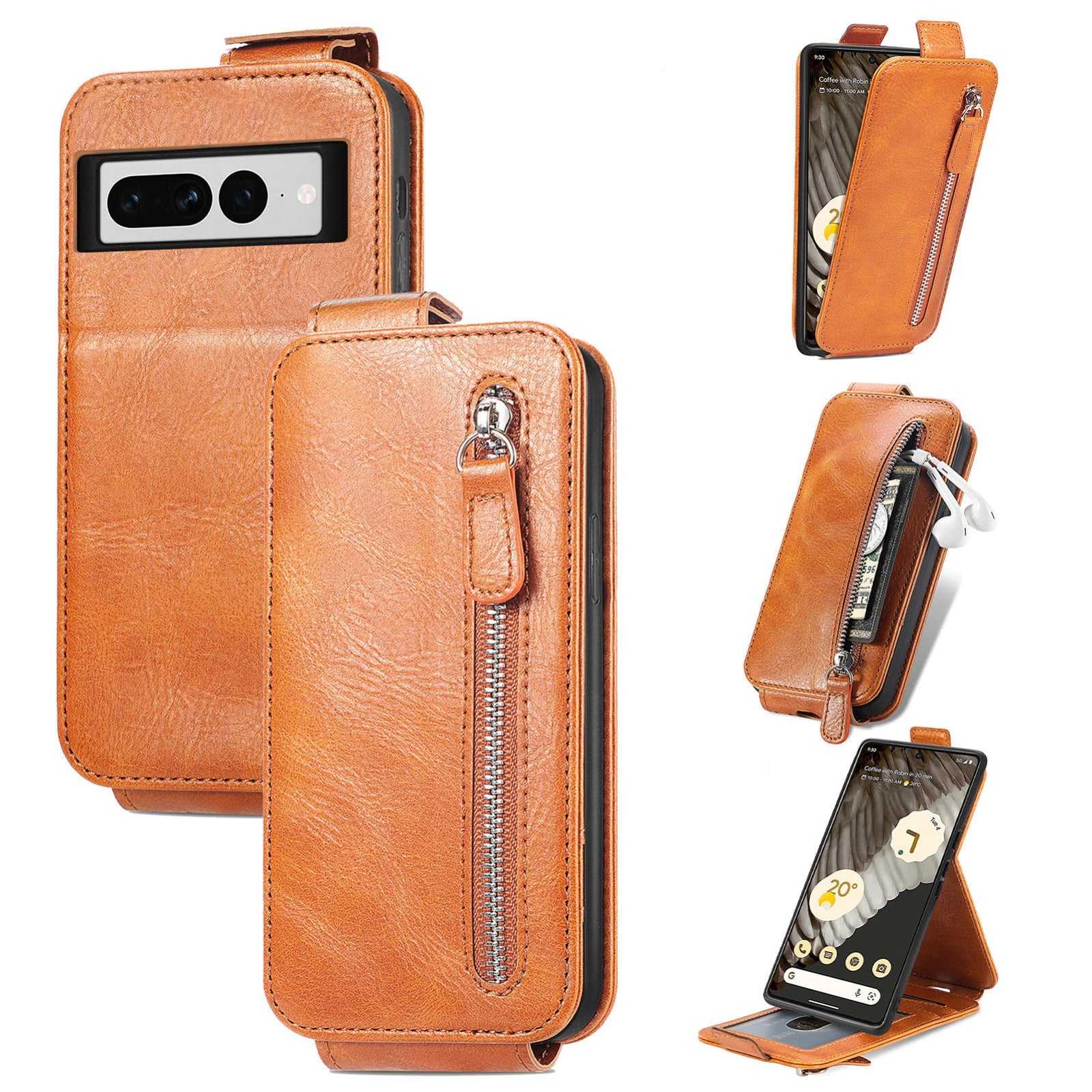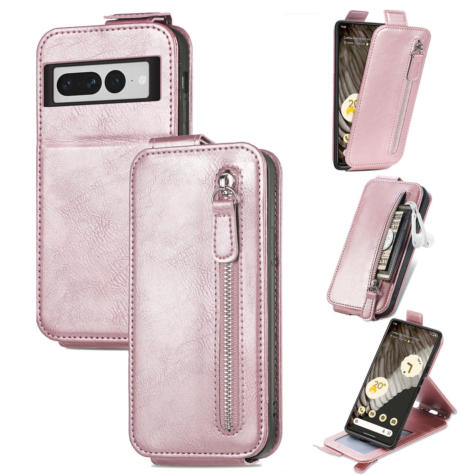 Google Pixel 7 Pro Zipper Wallet Case - Vertical Flip Leather Phone Cover with Multiple Card Slots and Stand