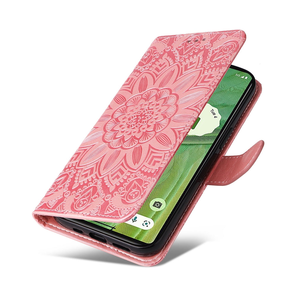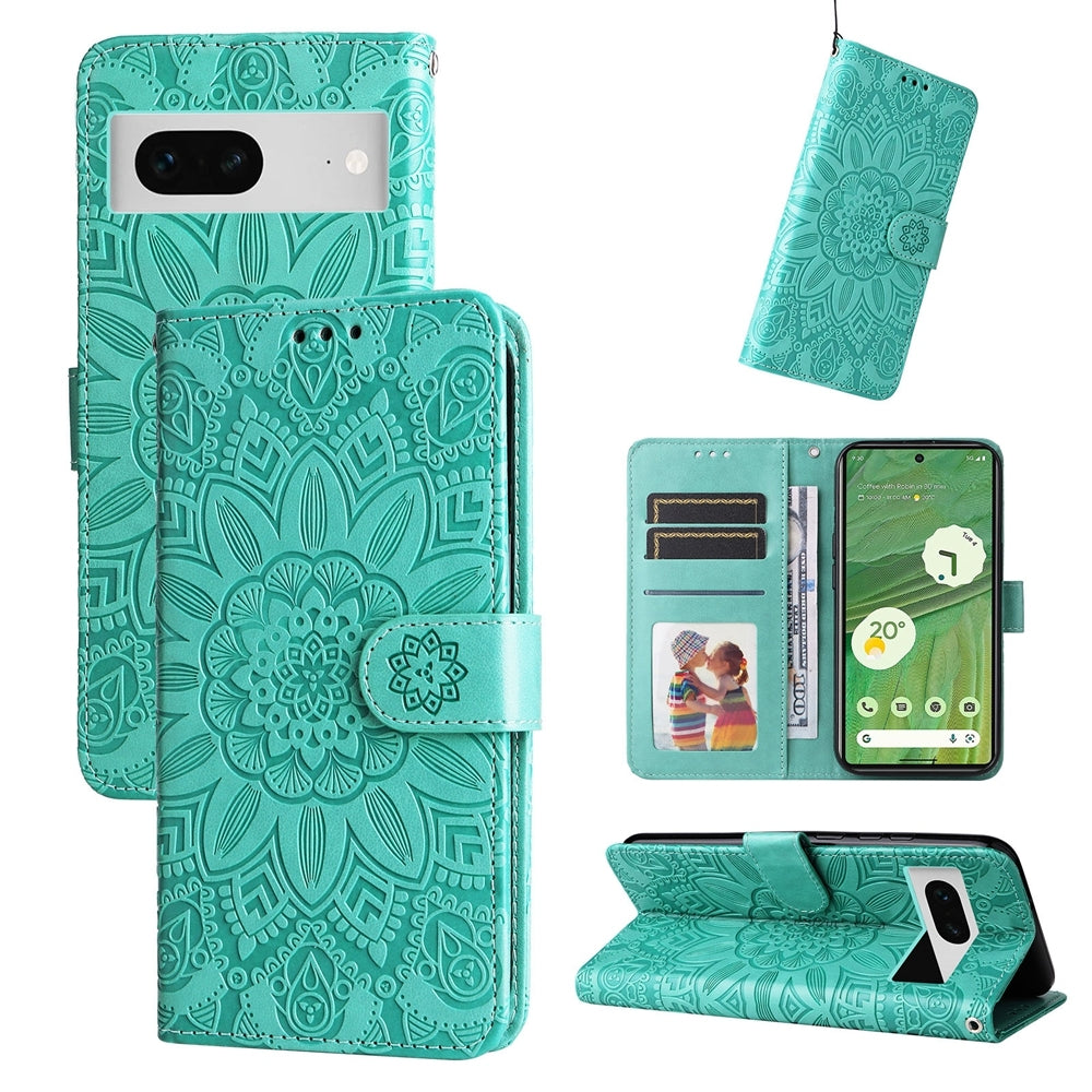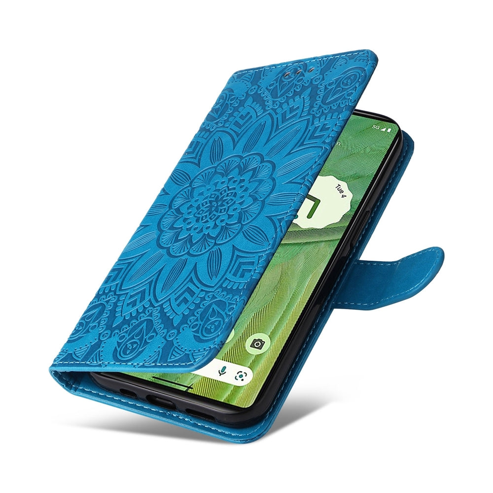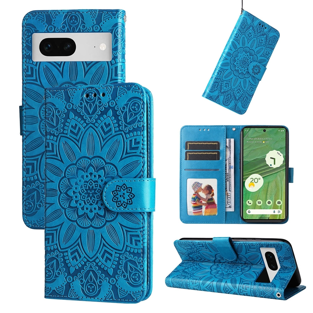 Google Pixel 7 Sunflower Embossed Leather Wallet Phone Case with Kickstand and Card Holder