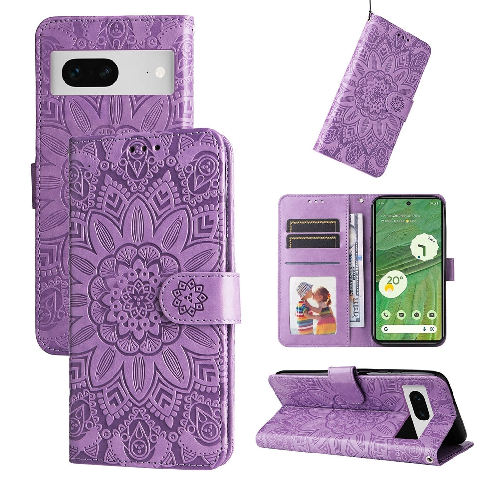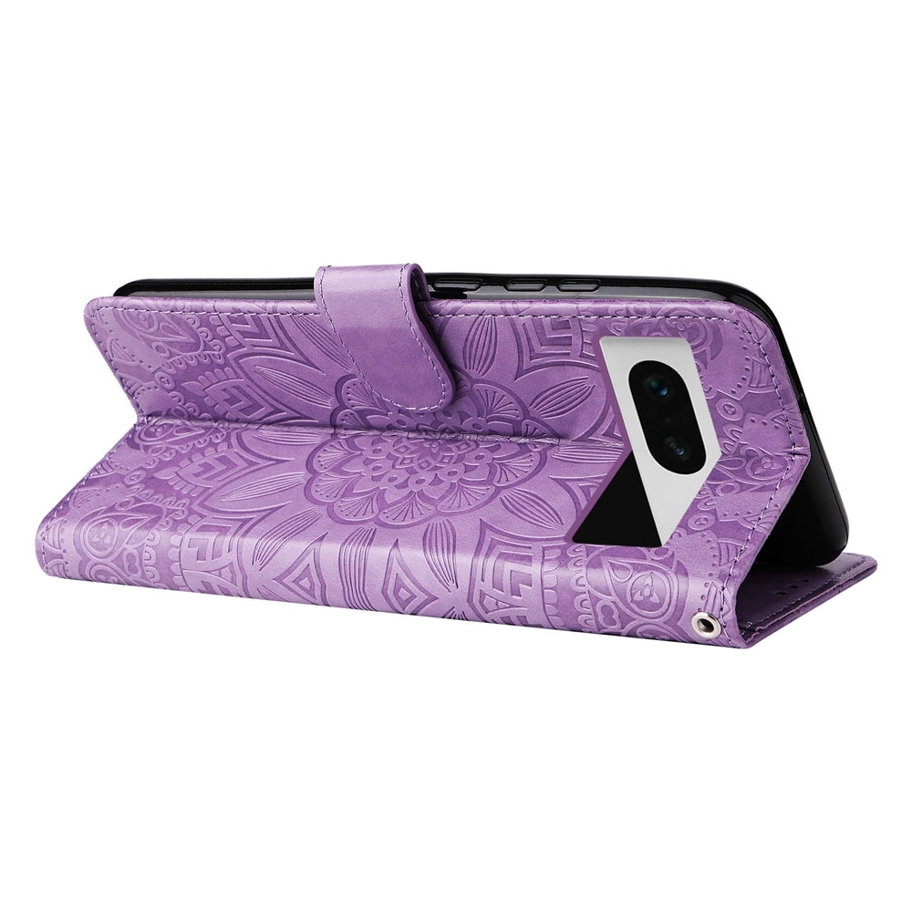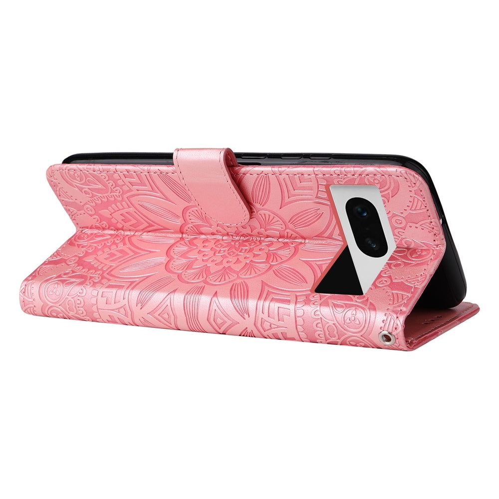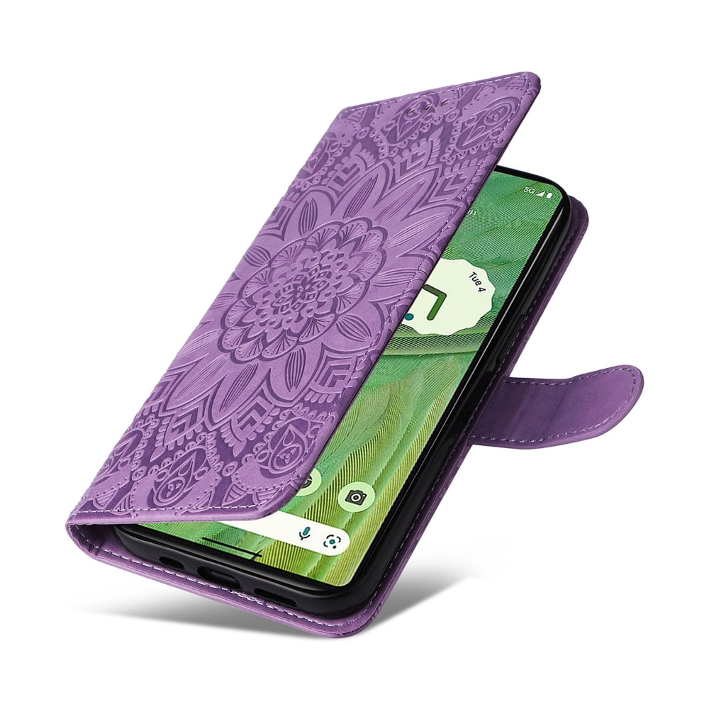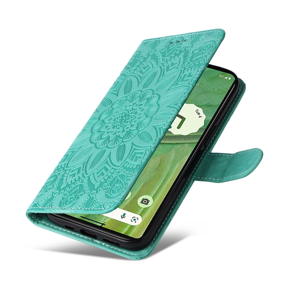 Google Pixel 7 Sunflower Embossed Leather Wallet Phone Case with Kickstand and Card Holder