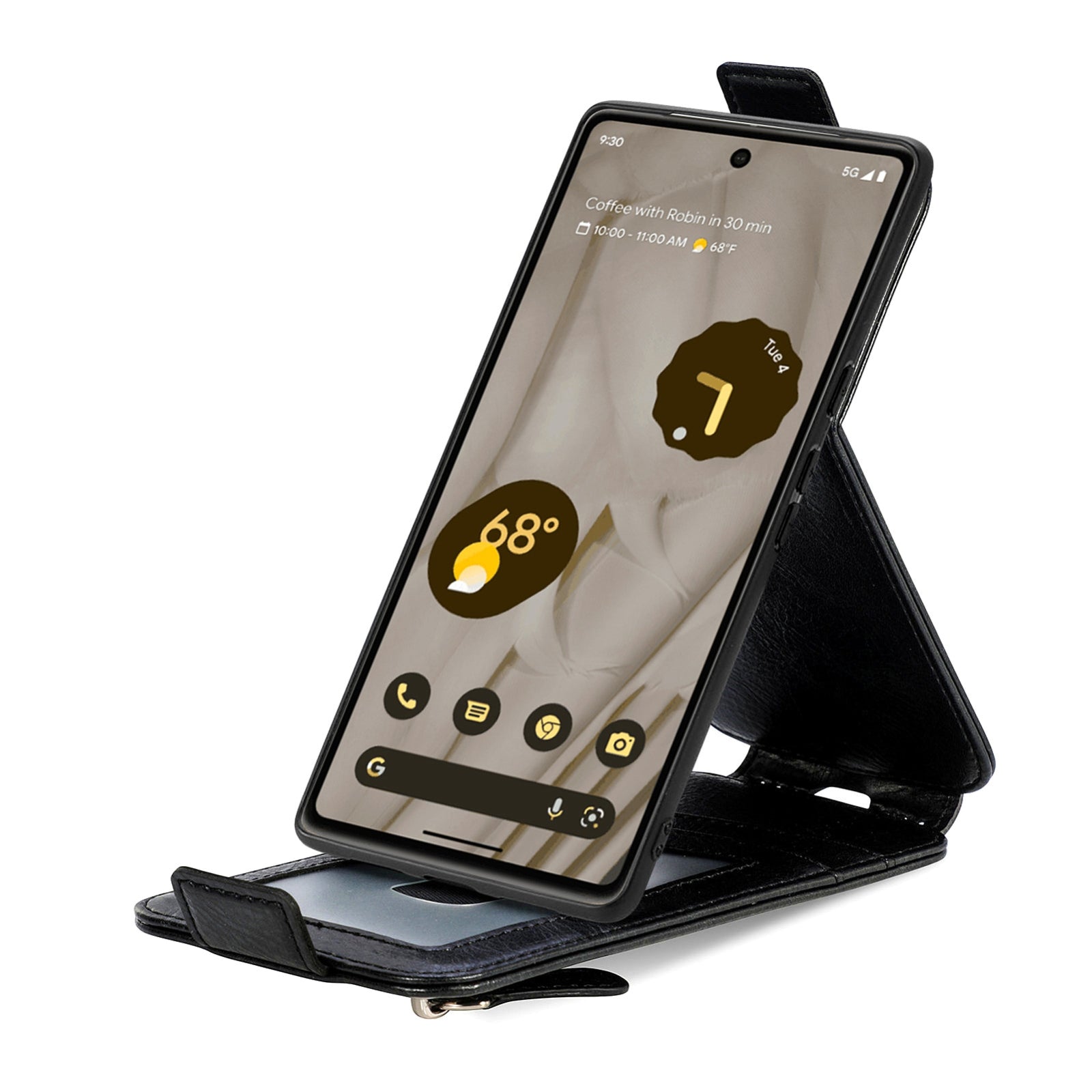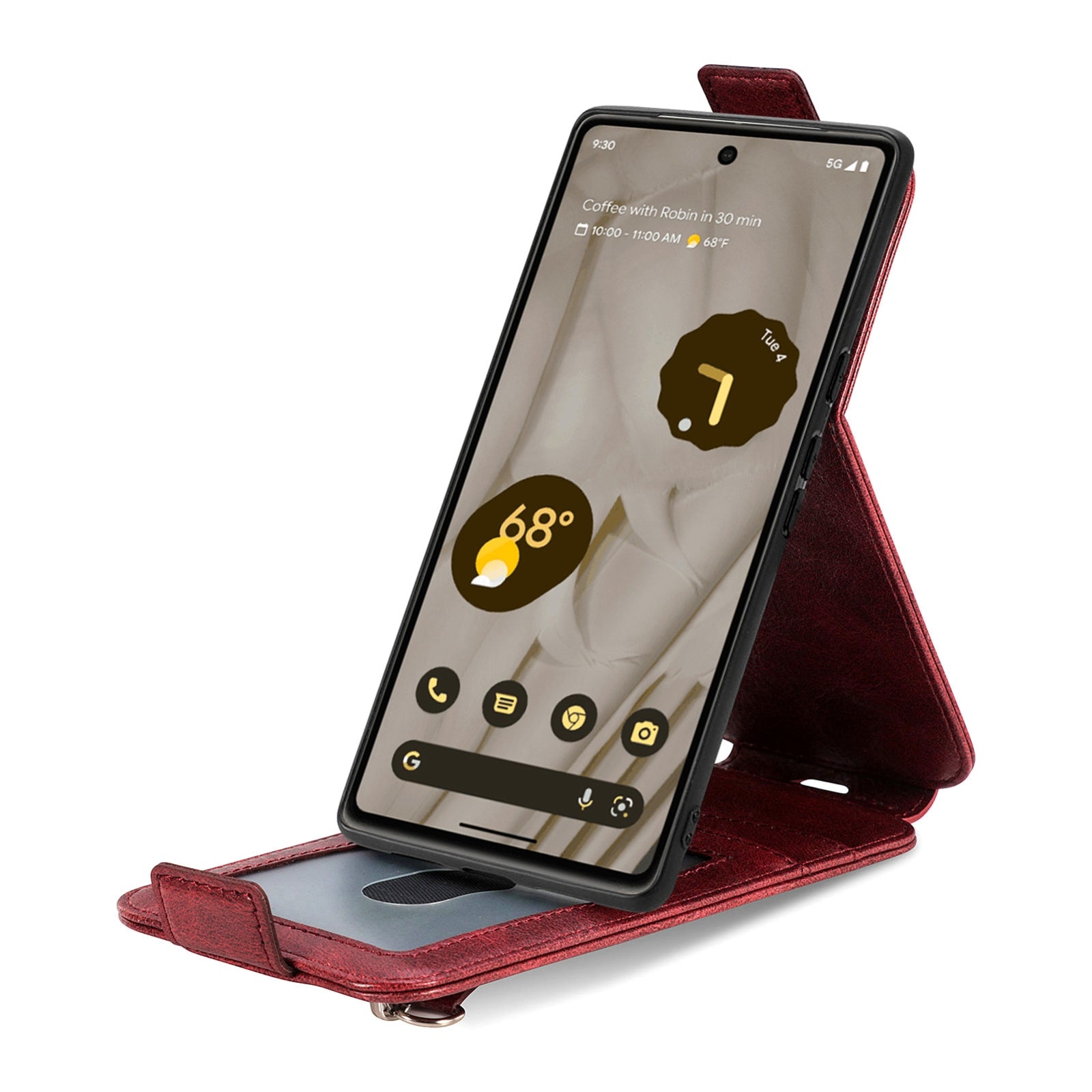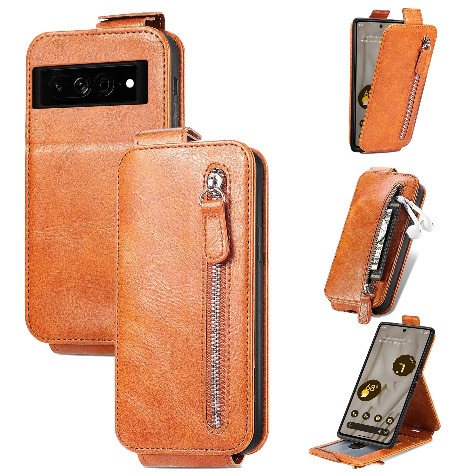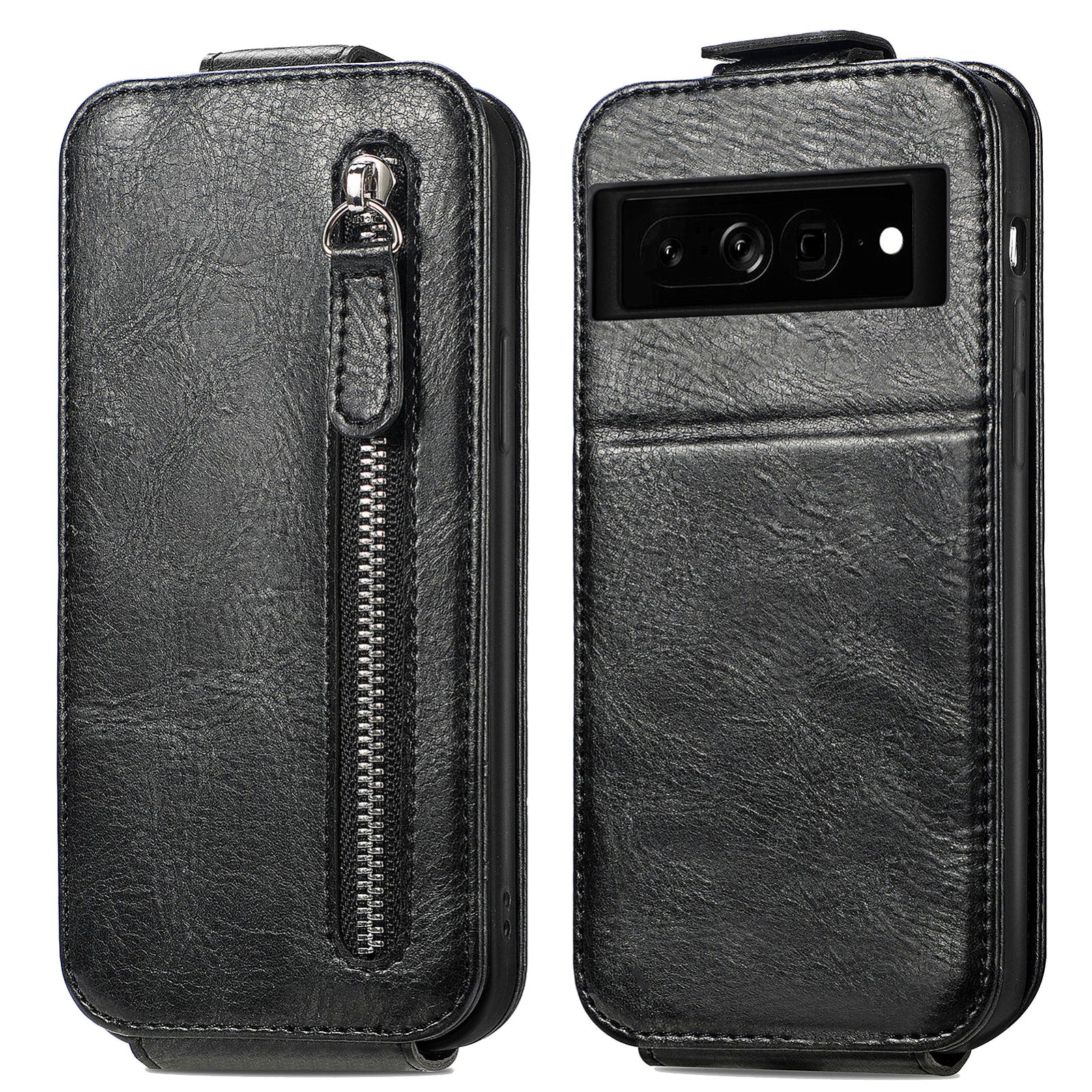 Google Pixel 7A Zipper Wallet Case - Vertical Flip Leather Phone Cover with Multiple Card Slots and Stand