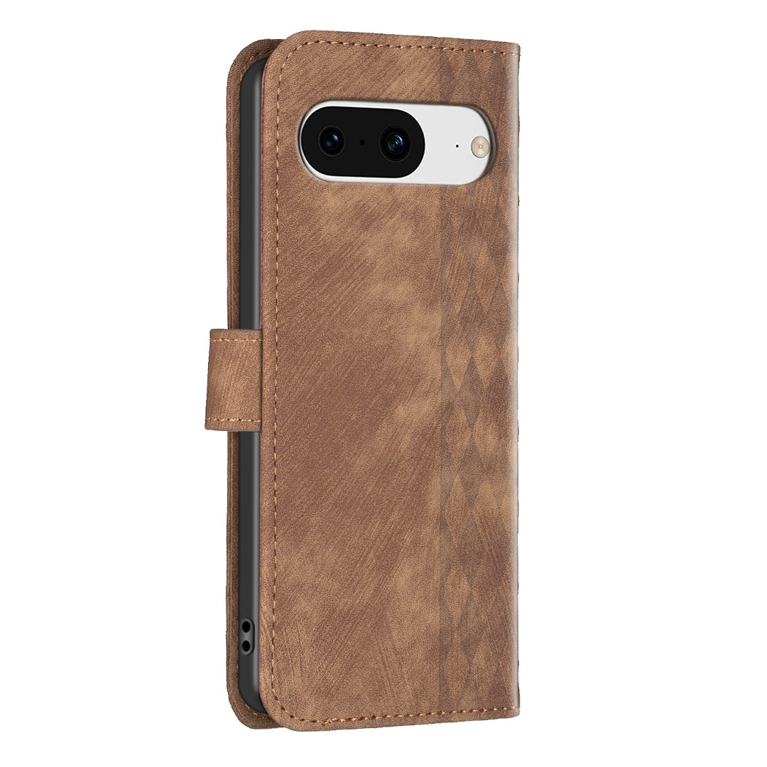 Google Pixel 8 Case - Embossed Plaid Leather Wallet Cover with Card Slots, Kickstand, and 360 degree Protection