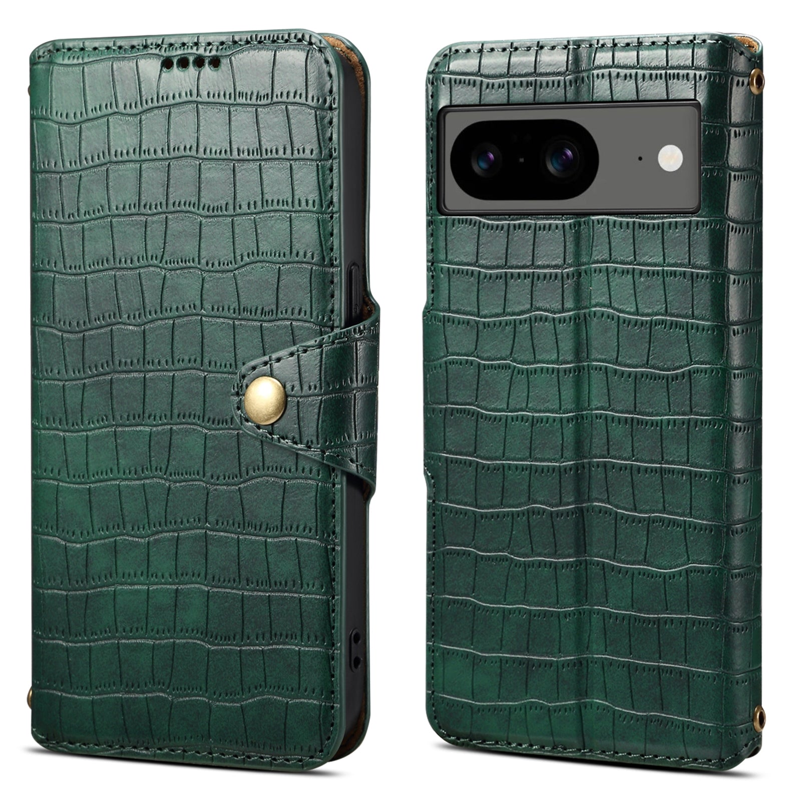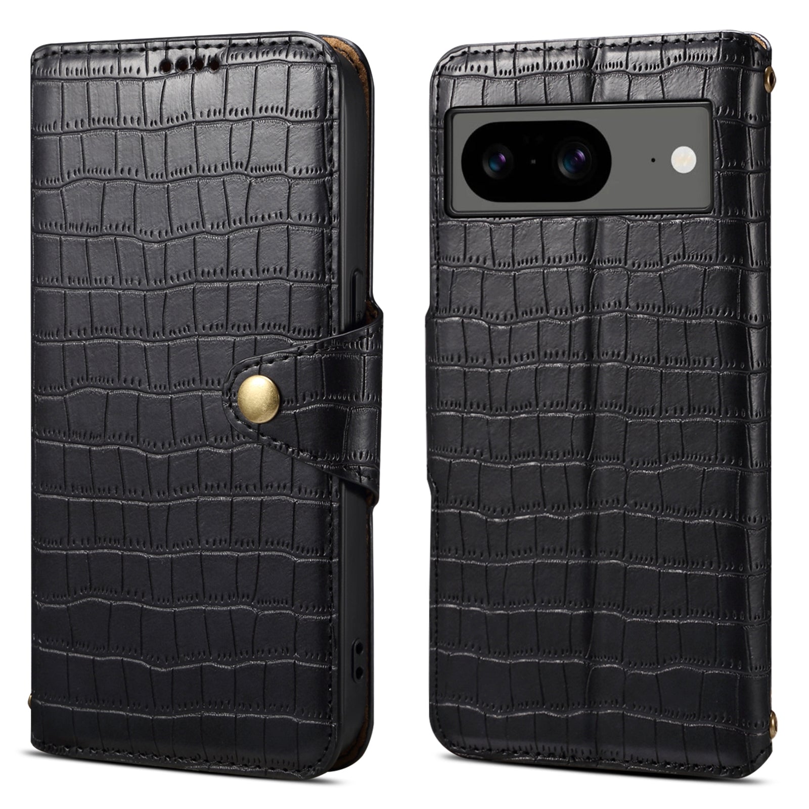 Google Pixel 8 Denior Leather Case - Crocodile Texture with Oil Edge, Wallet & Kickstand Features