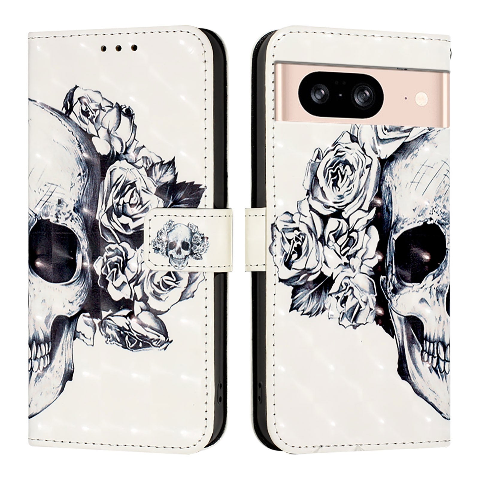 Google Pixel 8 Leather Flip Phone Case with 3D Painted Design, Card Holder, Wallet & Stand Function - Durable Protection & Easy Access