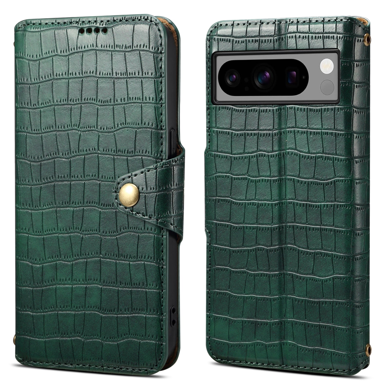 Google Pixel 8 Pro Denior Leather Case - Crocodile Texture with Oil Edge, Wallet & Kickstand Features