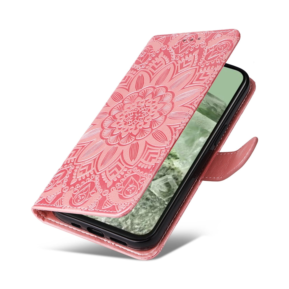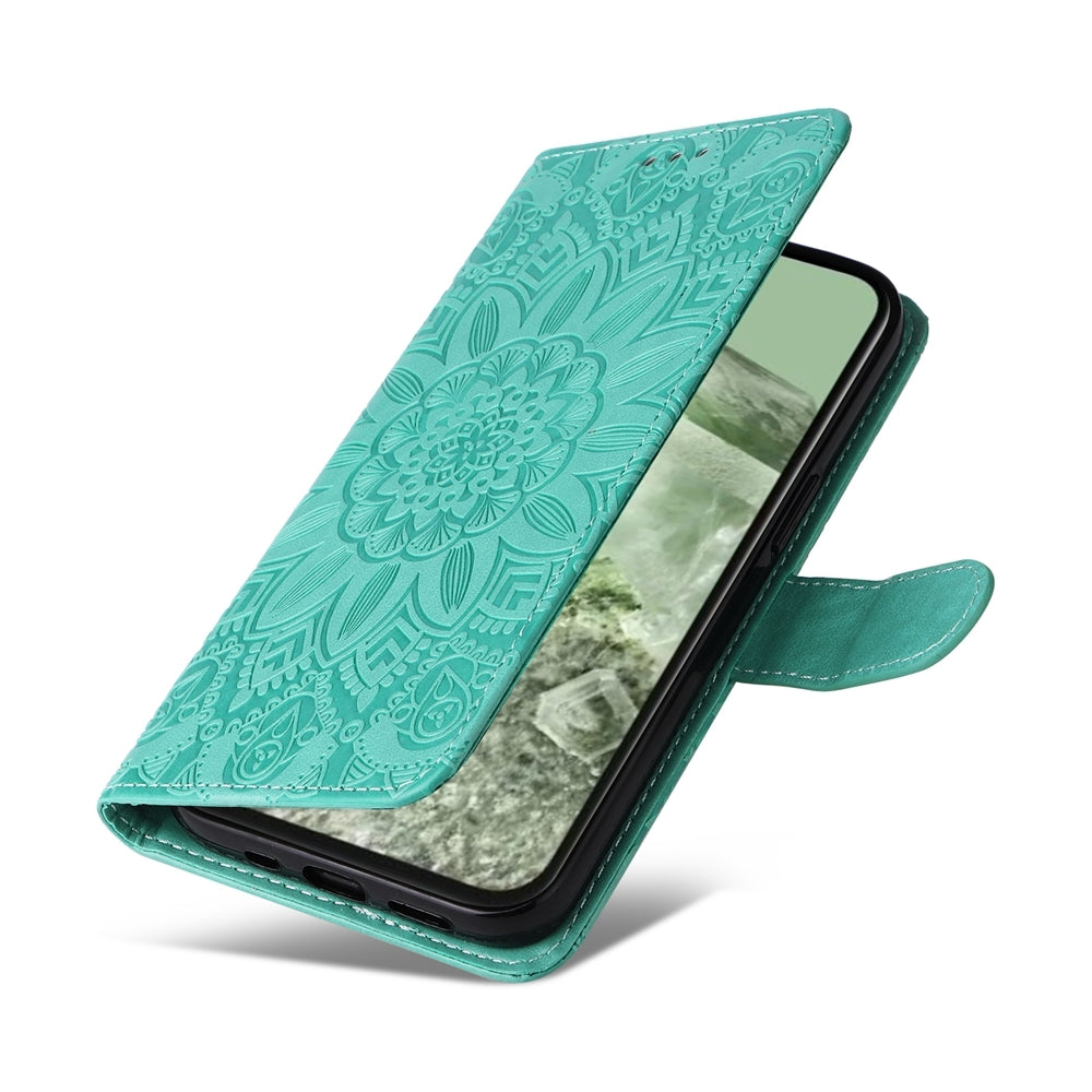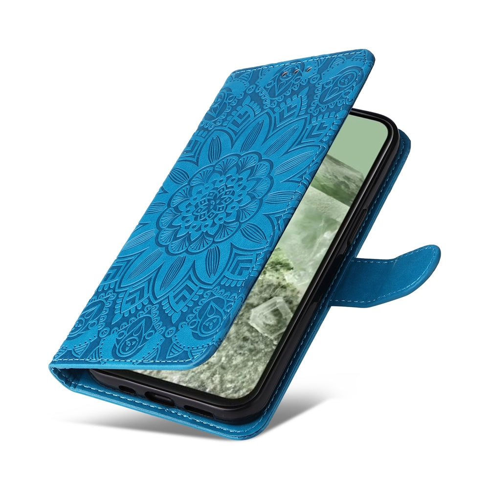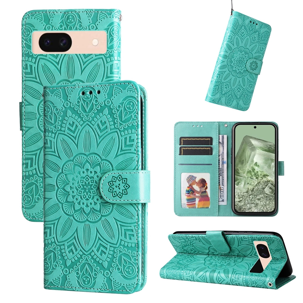 Google Pixel 8a Sunflower Embossed Leather Wallet Phone Case with Kickstand and Card Holder