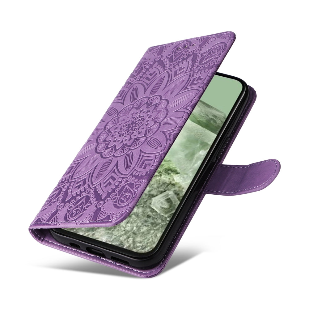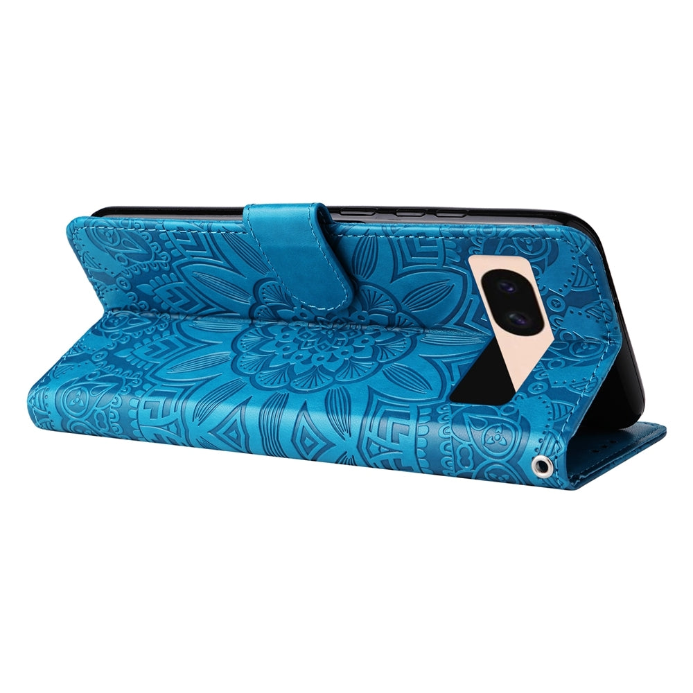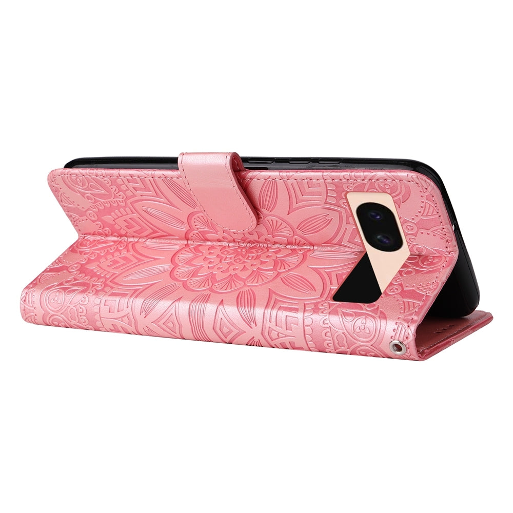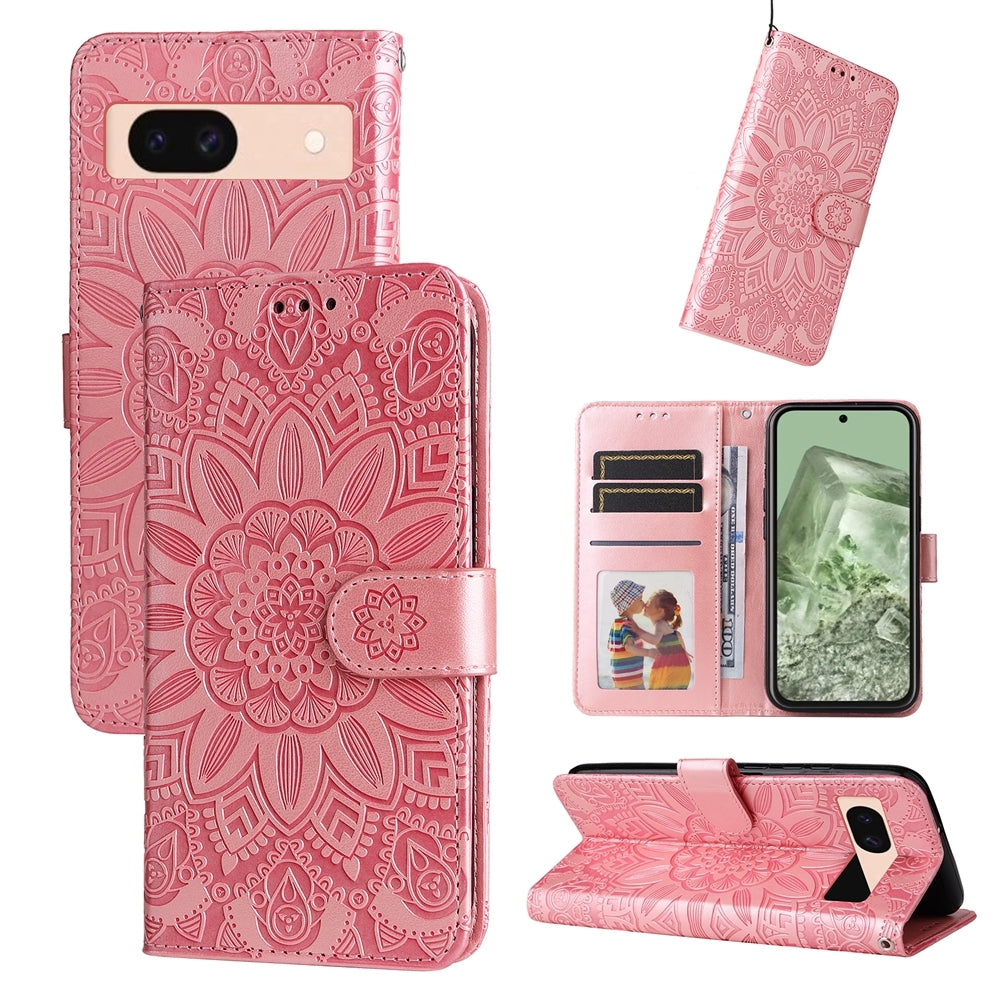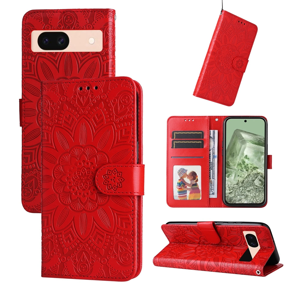 Google Pixel 8a Sunflower Embossed Leather Wallet Phone Case with Kickstand and Card Holder