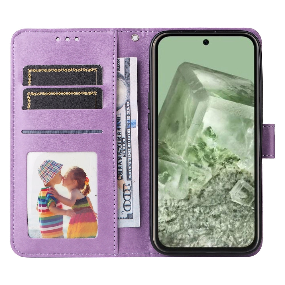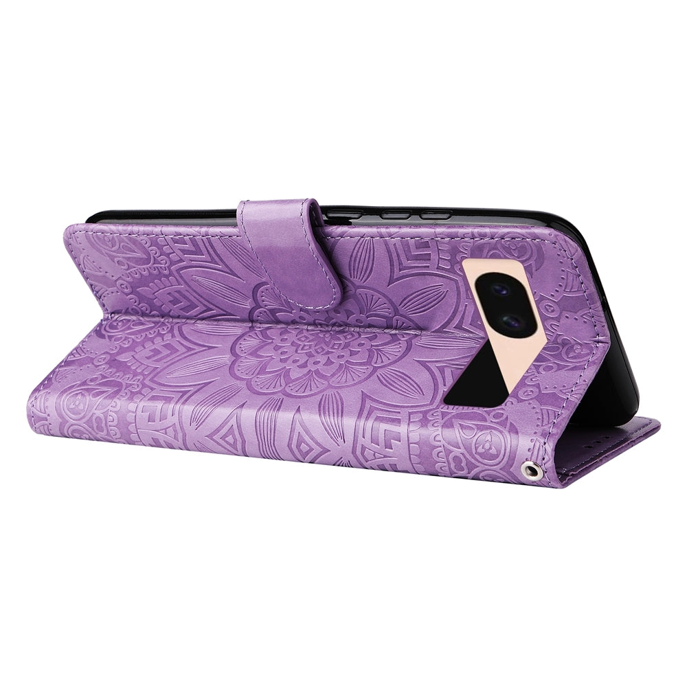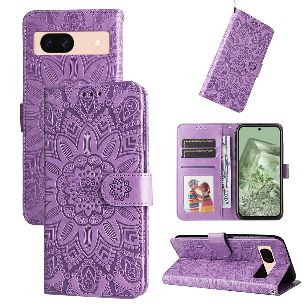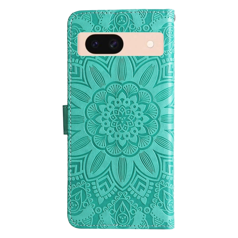 Google Pixel 8a Sunflower Embossed Leather Wallet Phone Case with Kickstand and Card Holder