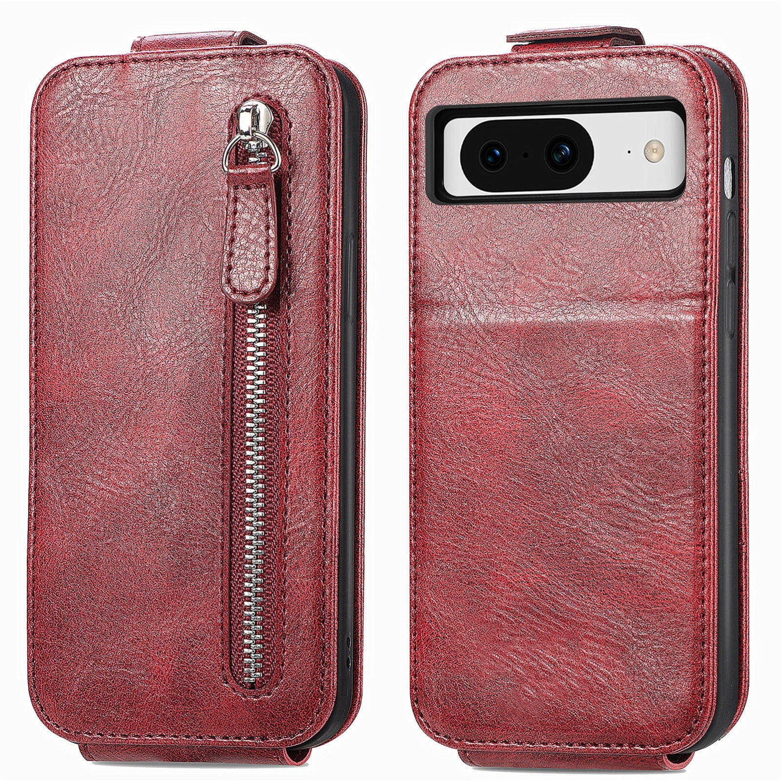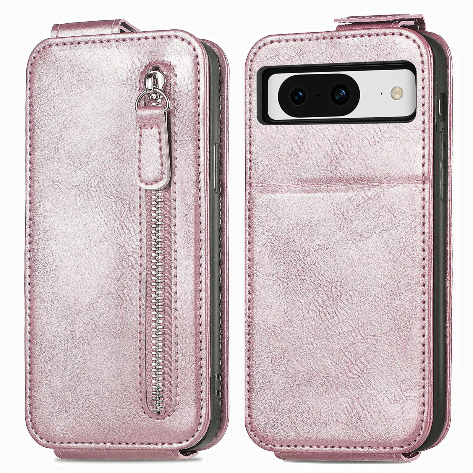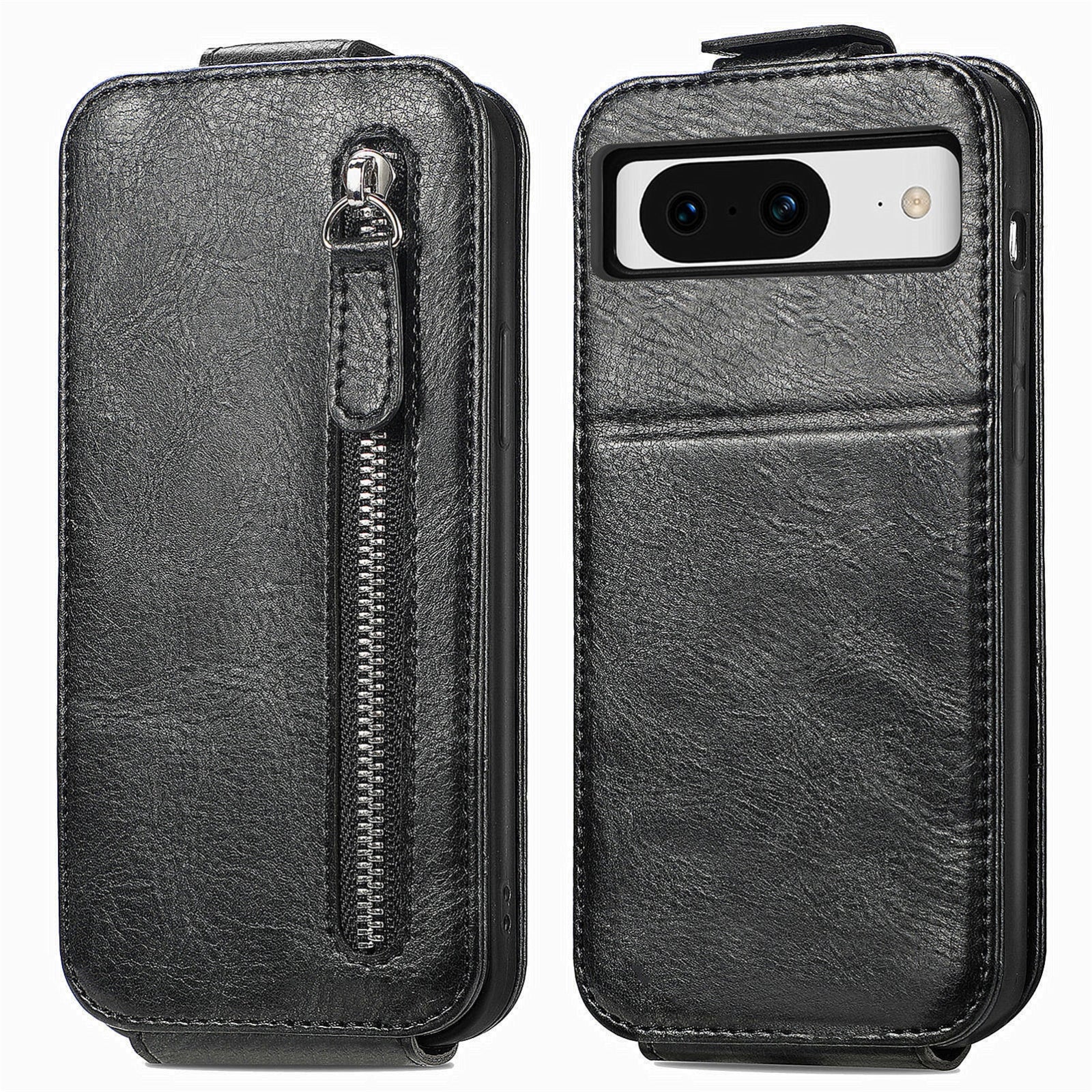 Google Pixel 8a Zipper Wallet Case - Vertical Flip Leather Phone Cover with Multiple Card Slots and Stand