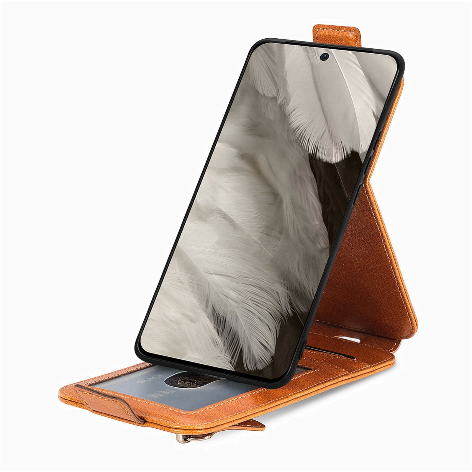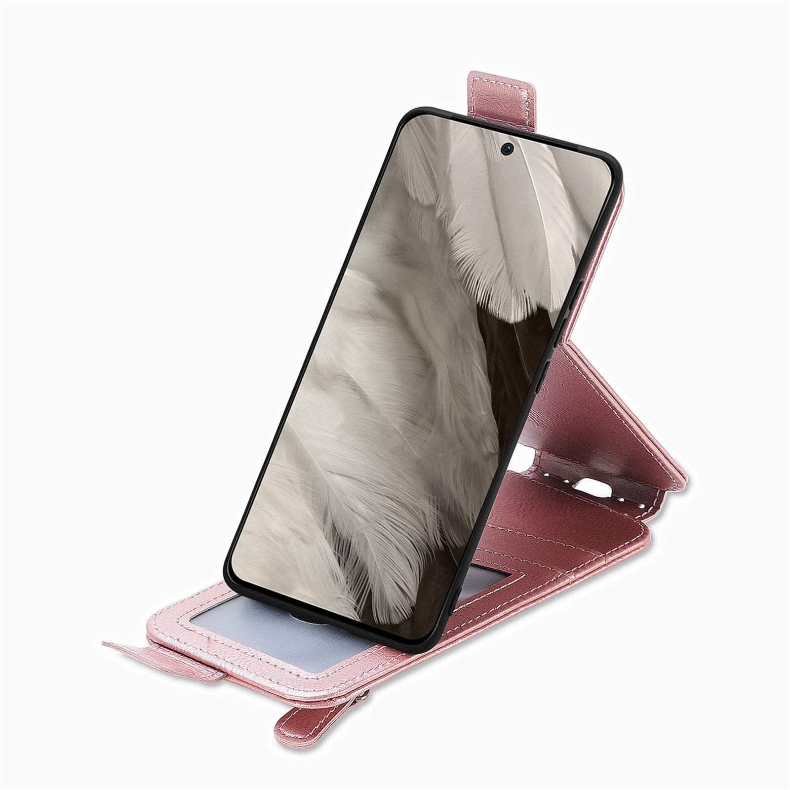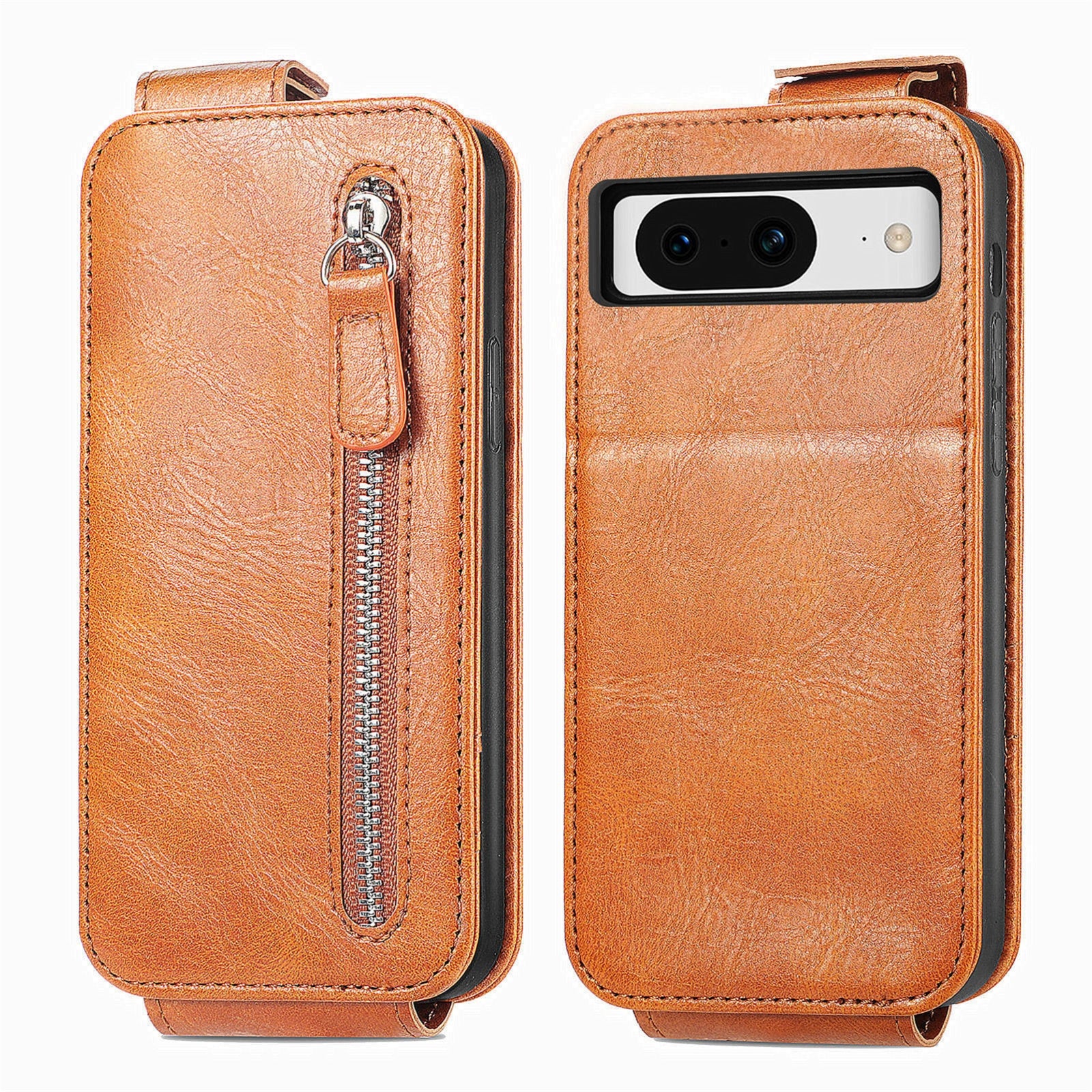 Google Pixel 8a Zipper Wallet Case - Vertical Flip Leather Phone Cover with Multiple Card Slots and Stand
