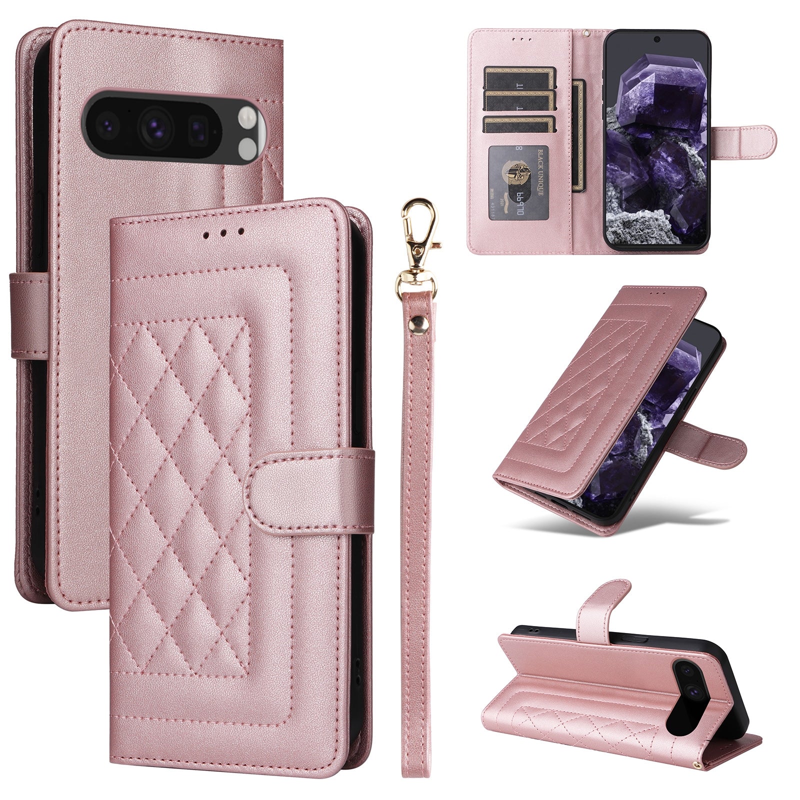 Google Pixel 9 Diamond Lattice Leather Flip Phone Case - Durable and Convenient Holder with Precision Cutouts