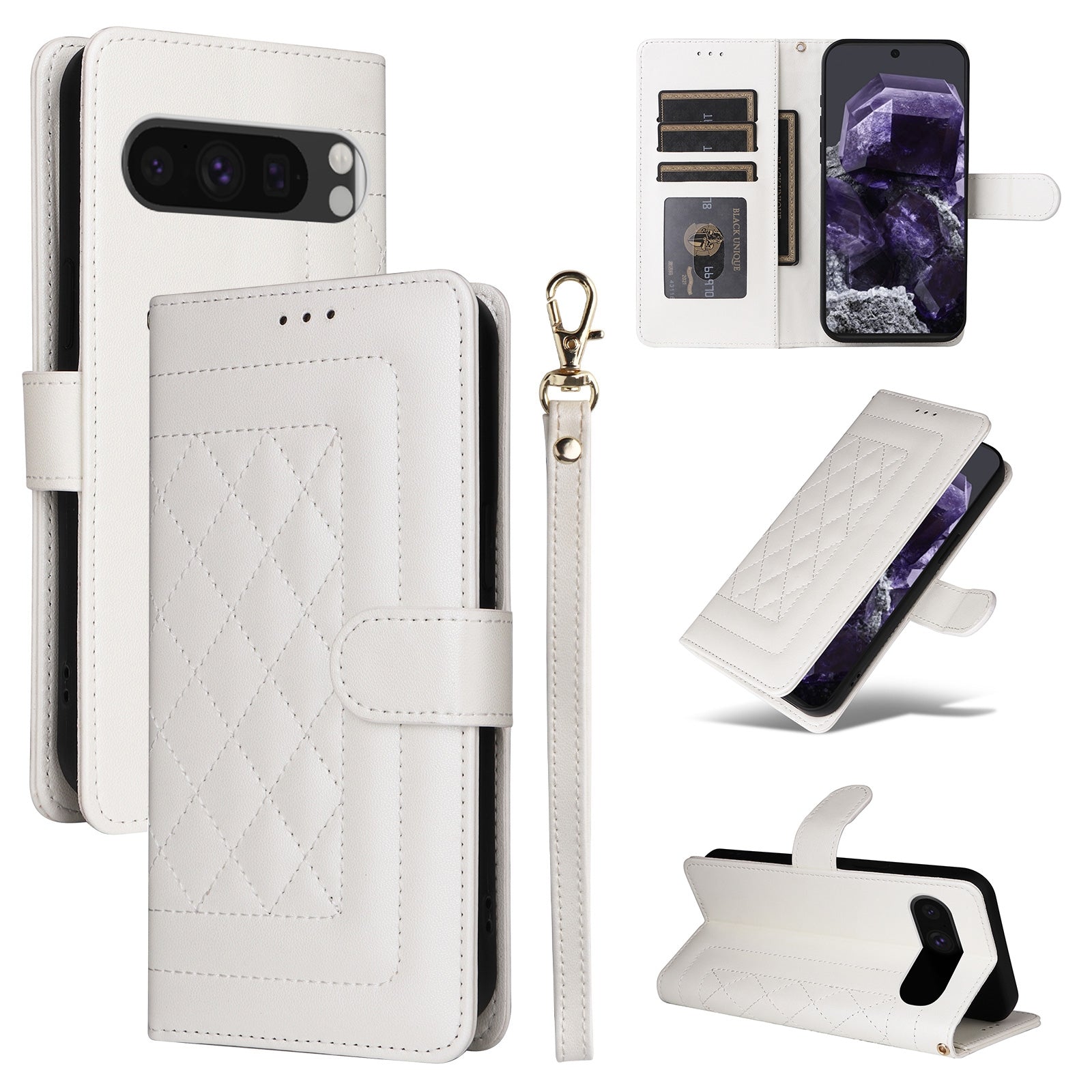 Google Pixel 9 Pro Diamond Lattice Leather Flip Phone Case - Durable and Convenient Holder with Precision Cutouts