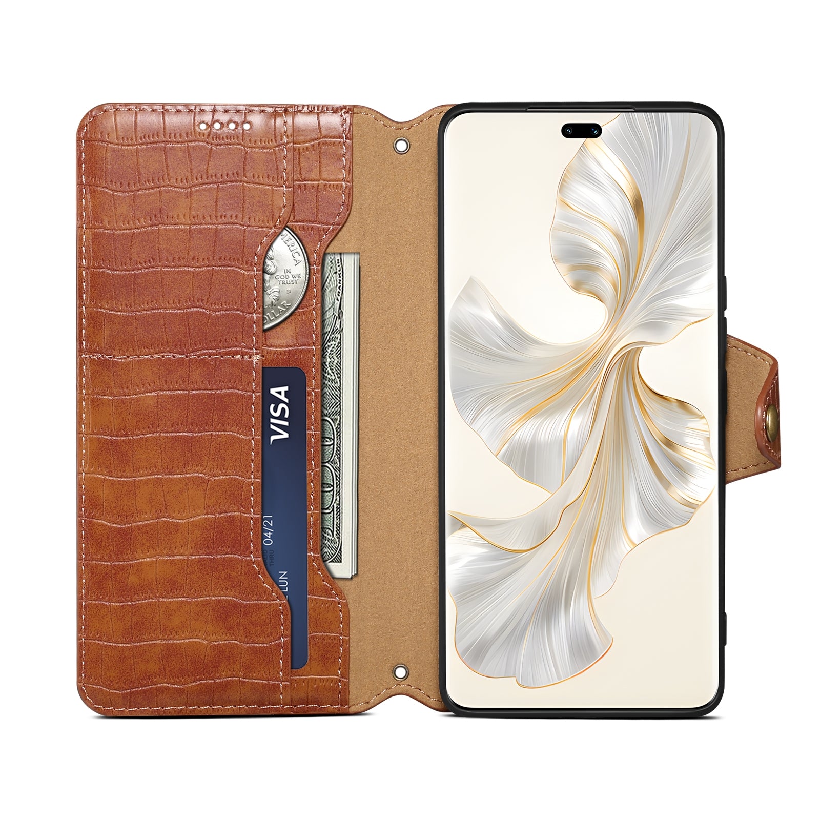 Honor 100 Pro Denior Leather Case - Crocodile Texture with Oil Edge, Wallet & Kickstand Features