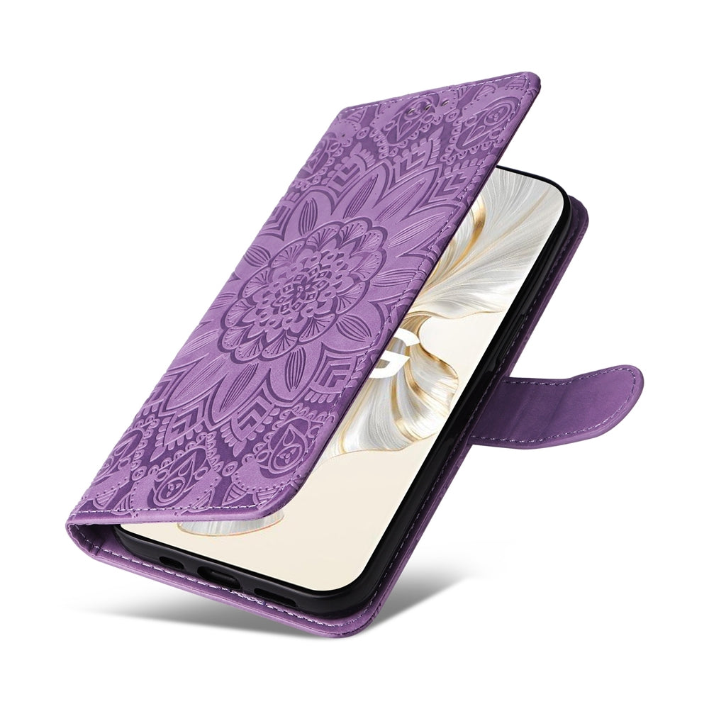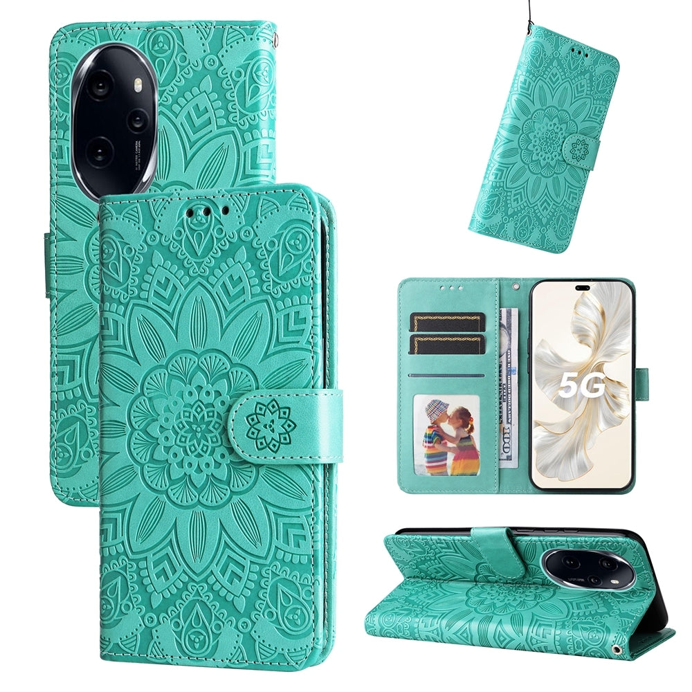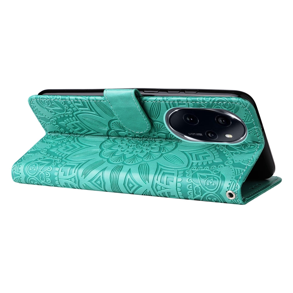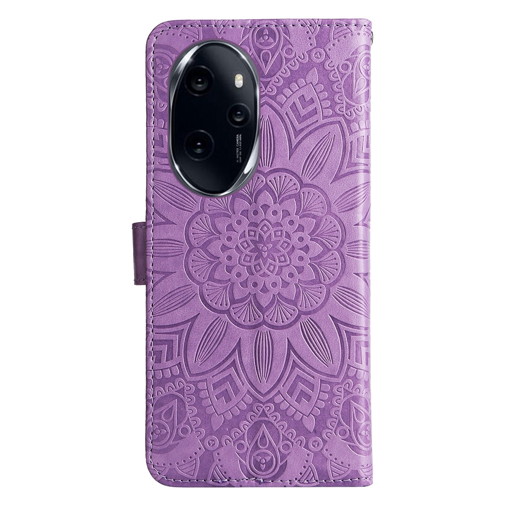 Honor 100 Pro Sunflower Embossed Leather Wallet Phone Case with Kickstand and Card Holder