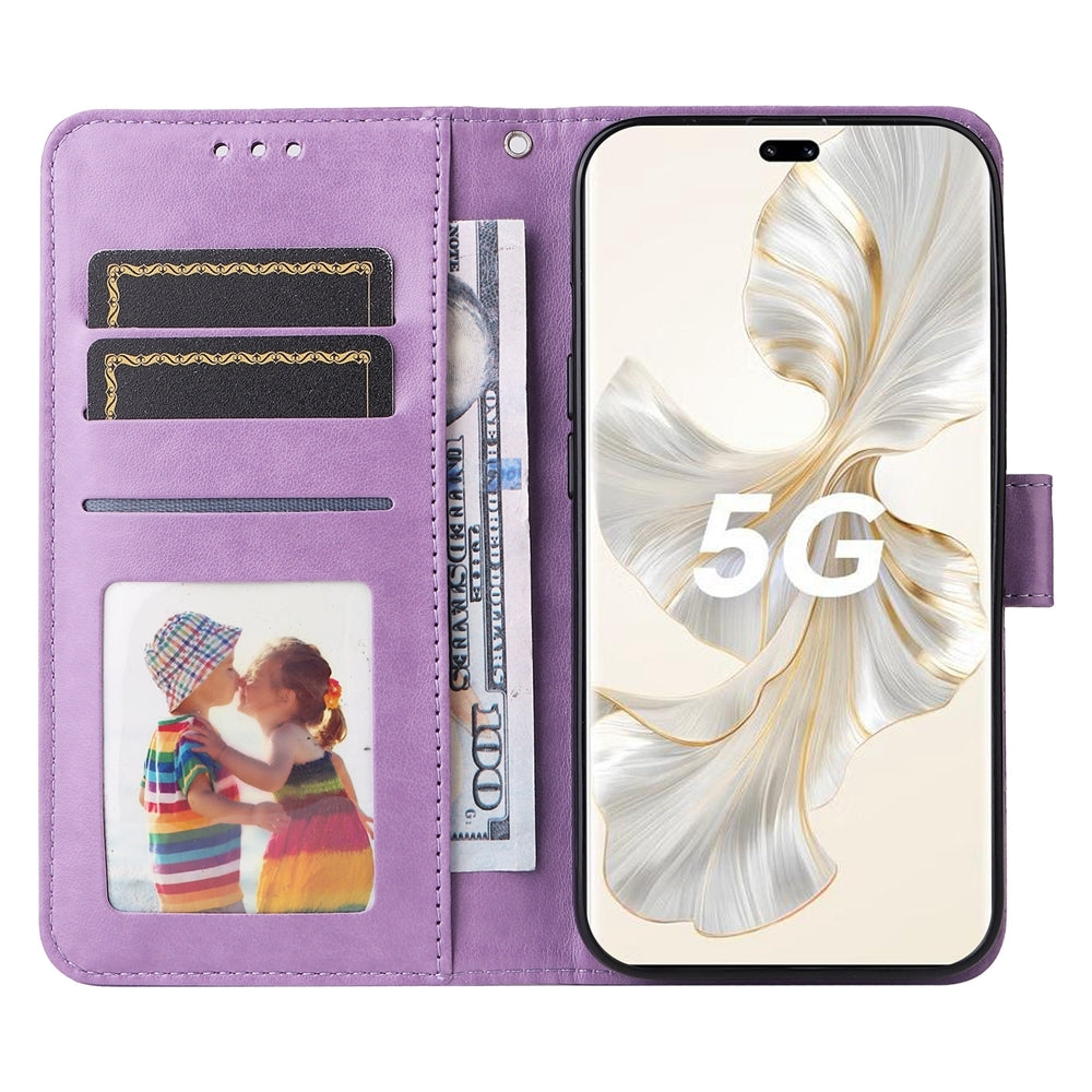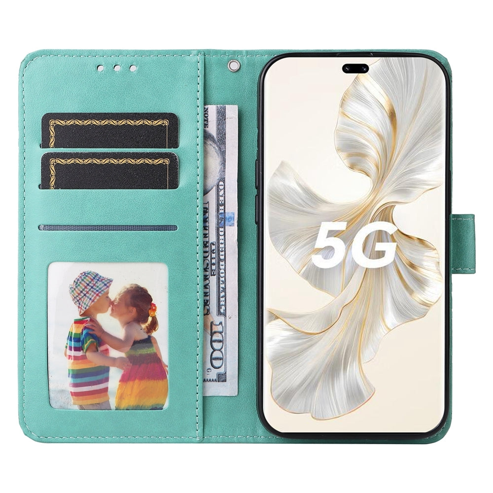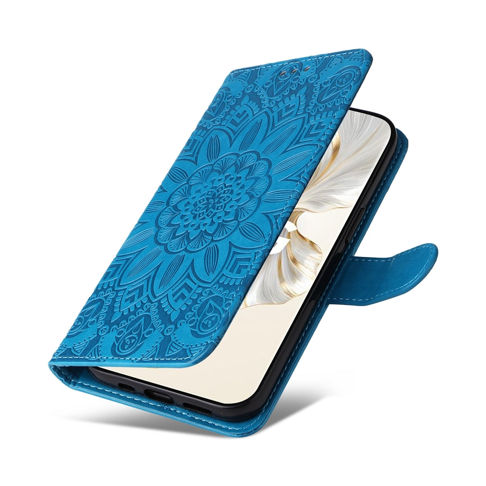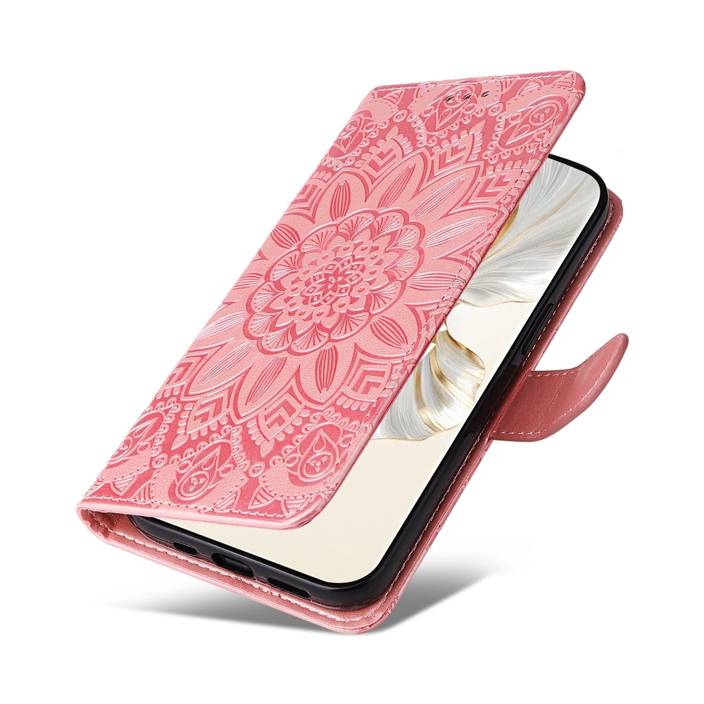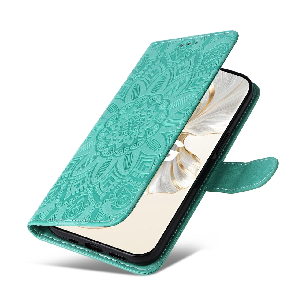Honor 100 Pro Sunflower Embossed Leather Wallet Phone Case with Kickstand and Card Holder