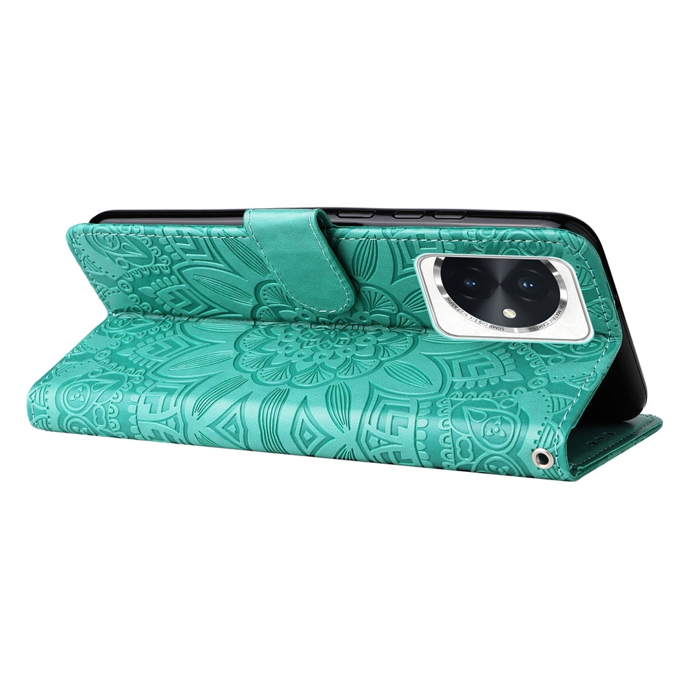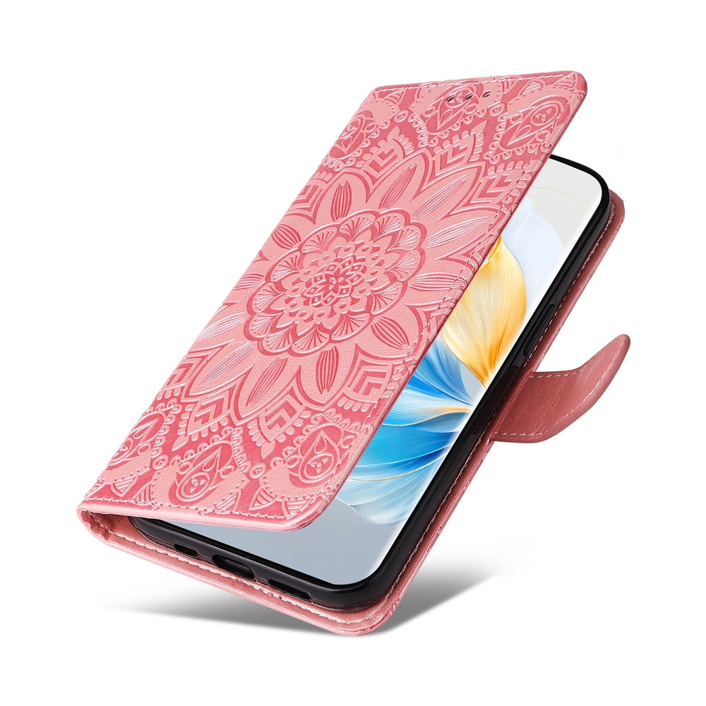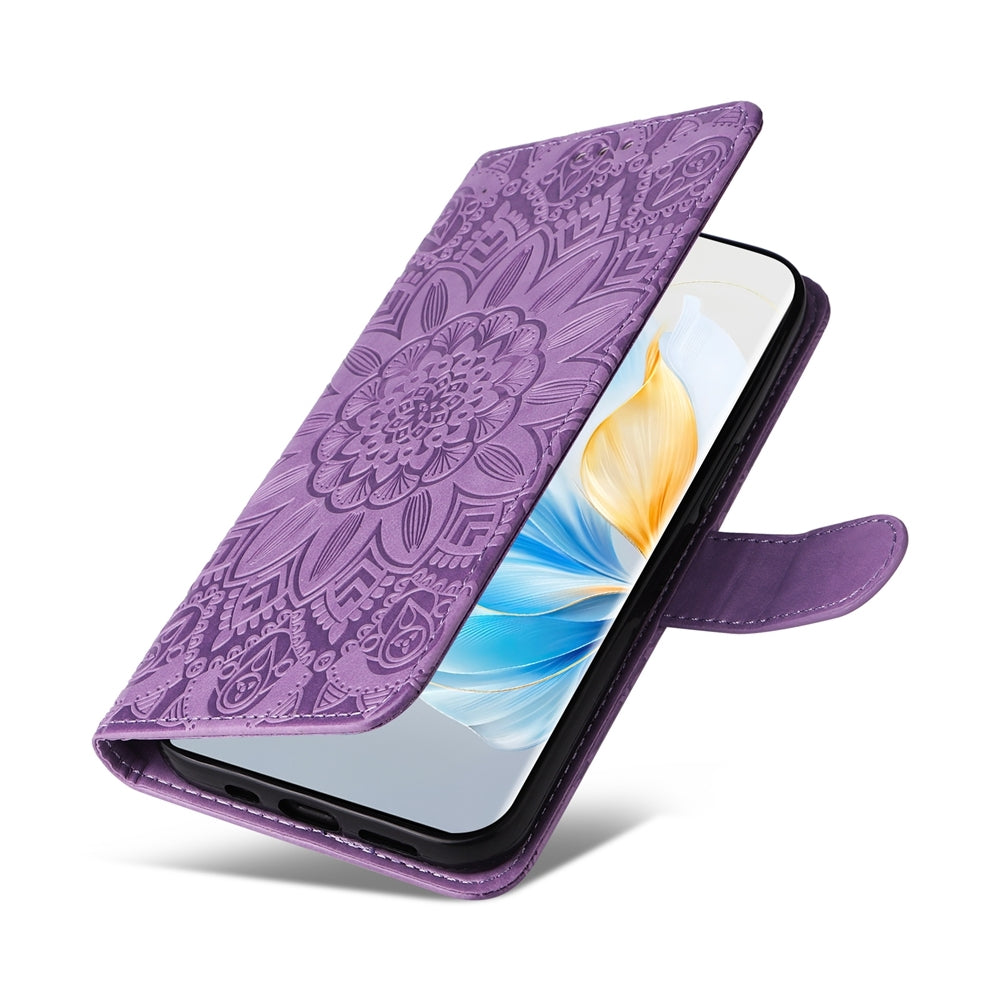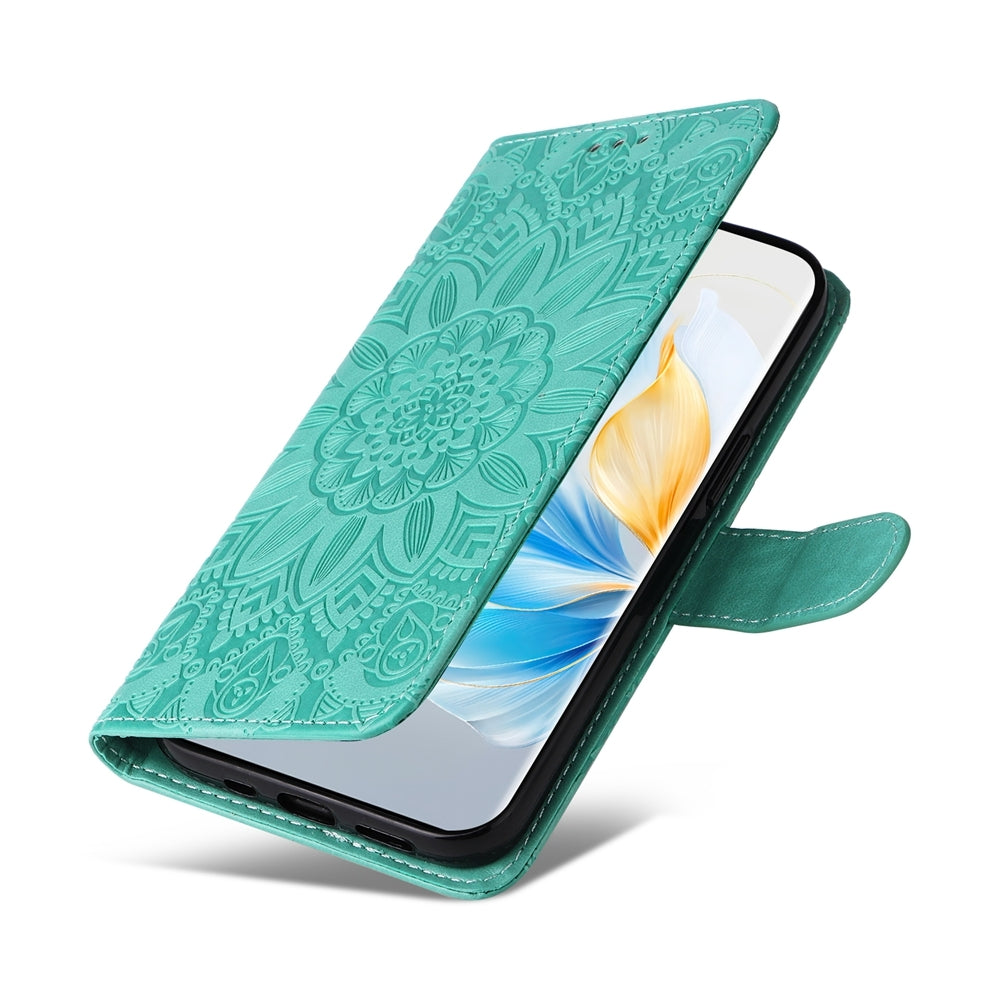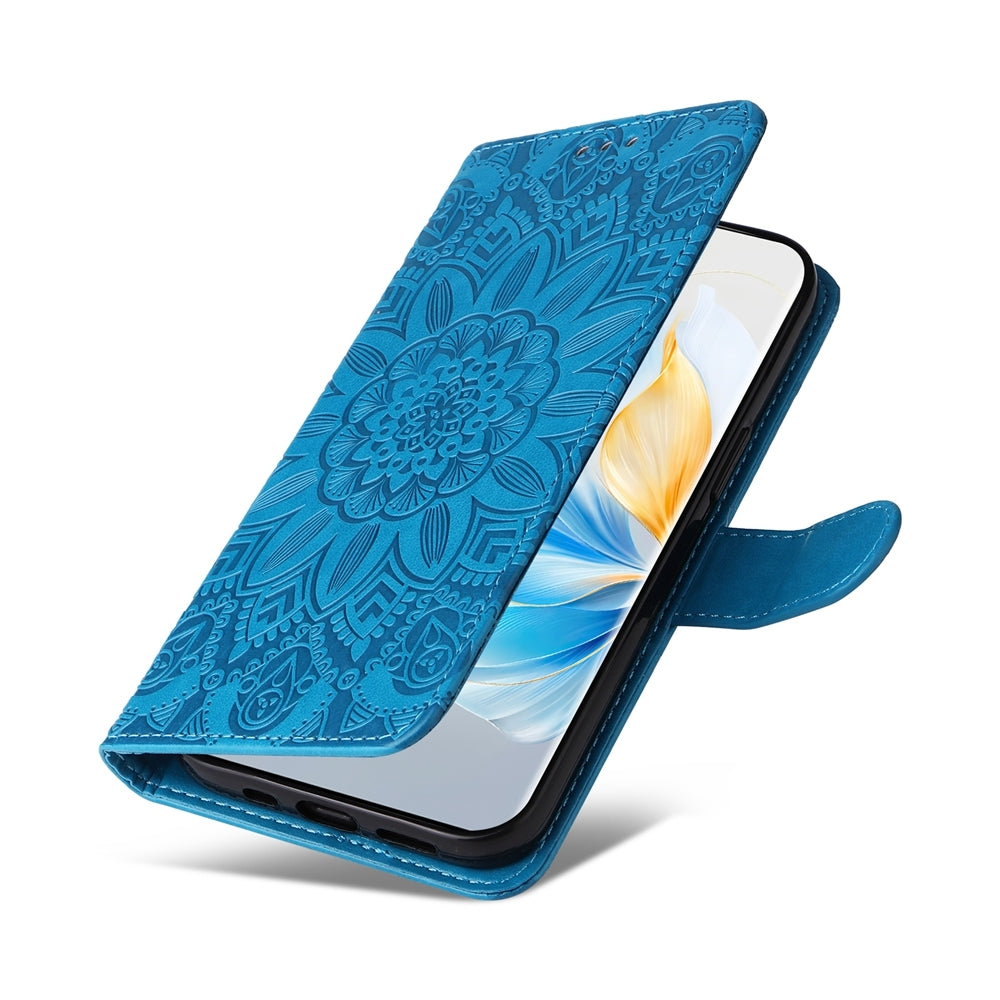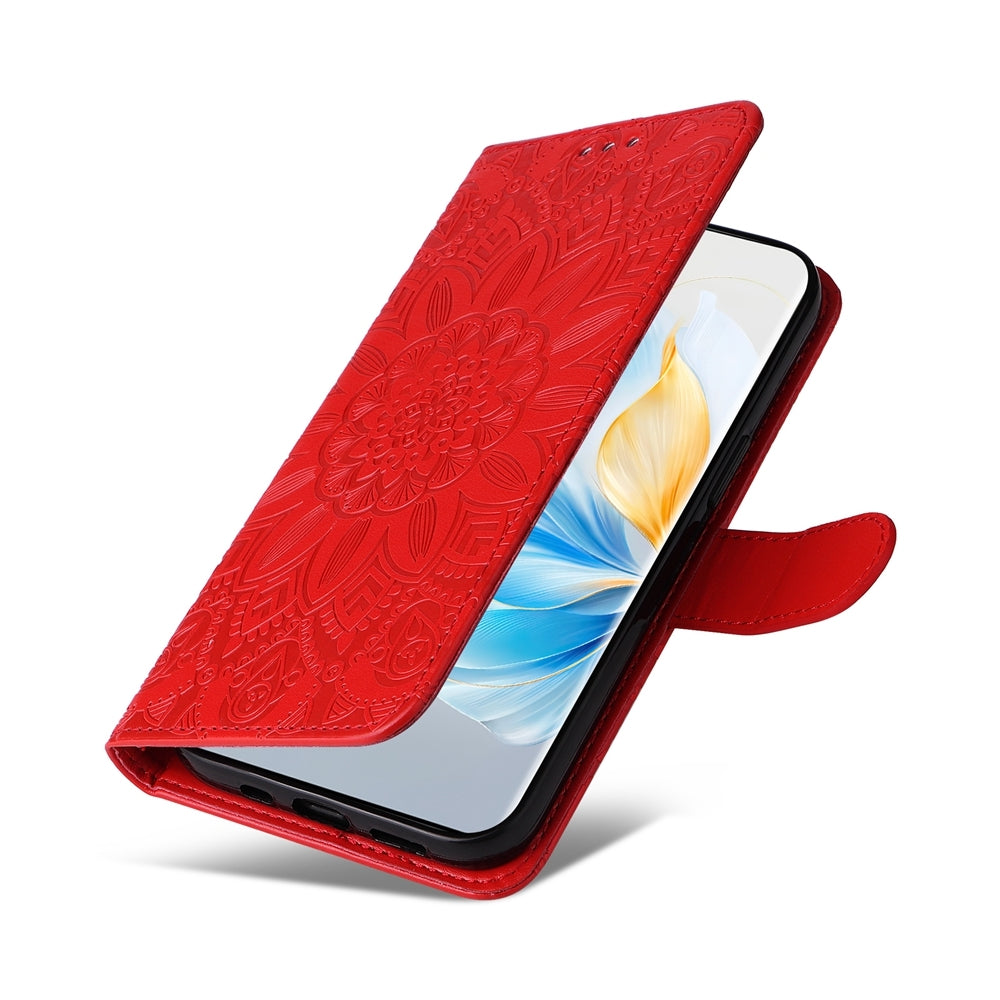 Honor 100 Sunflower Embossed Leather Wallet Phone Case with Kickstand and Card Holder