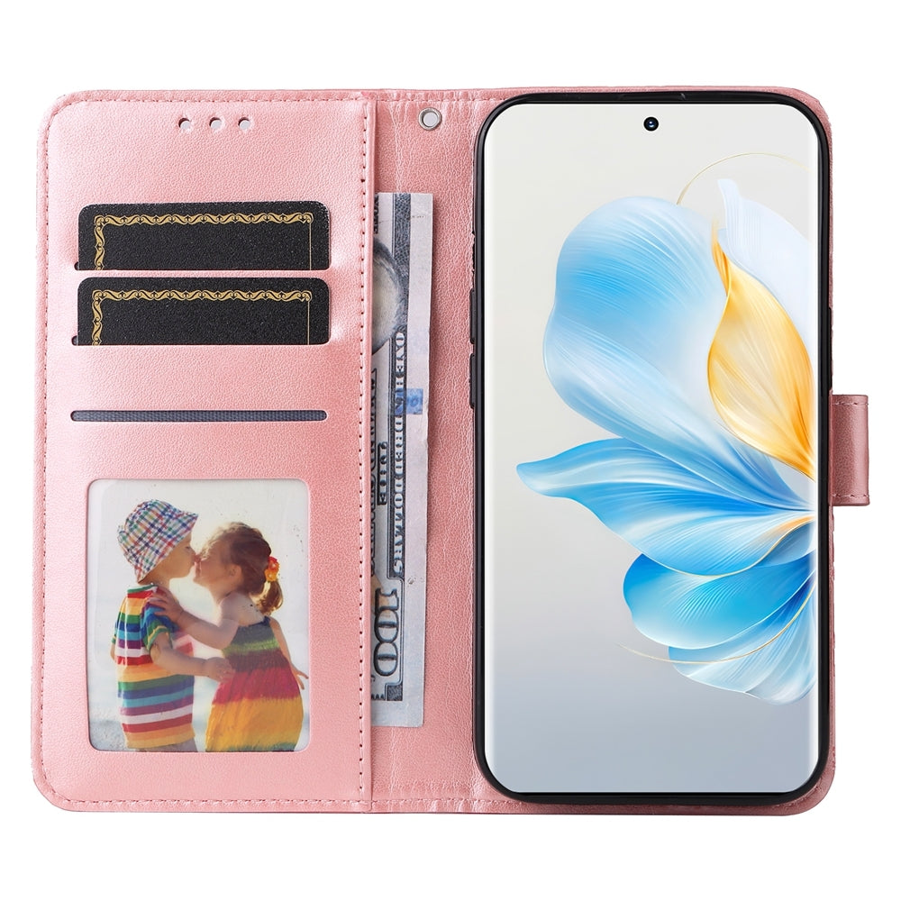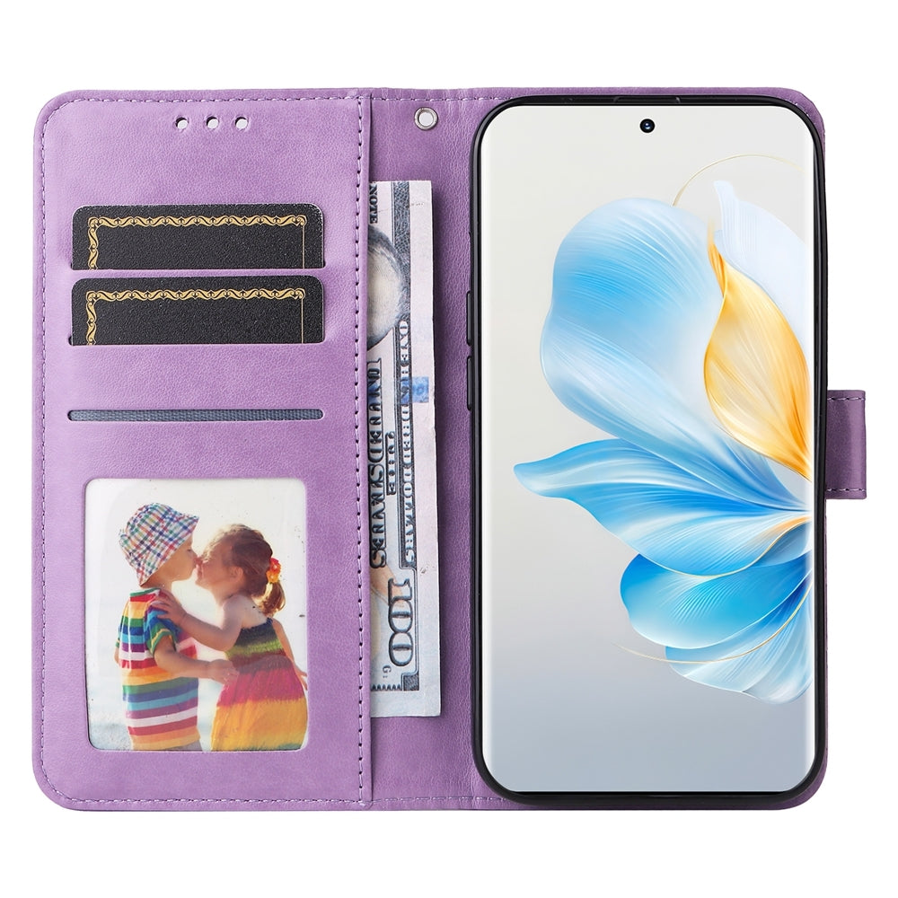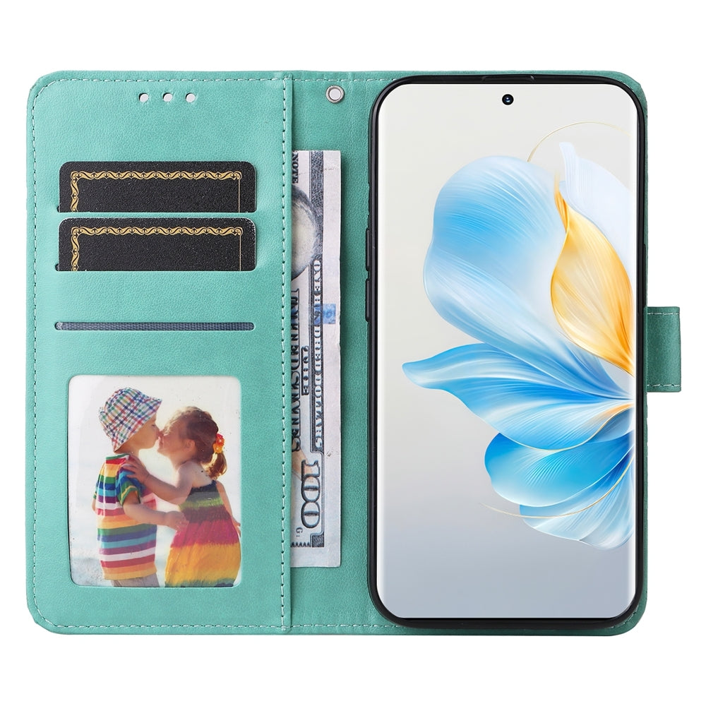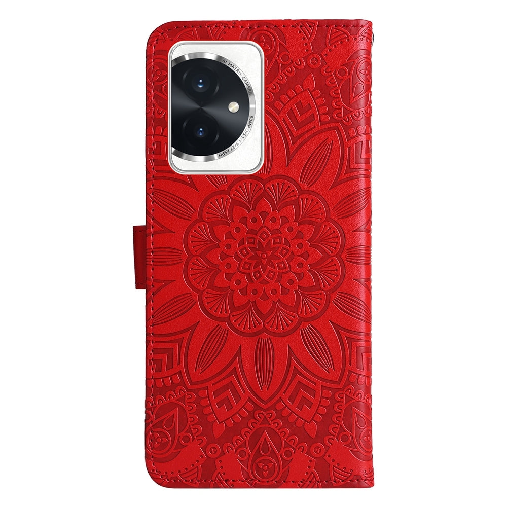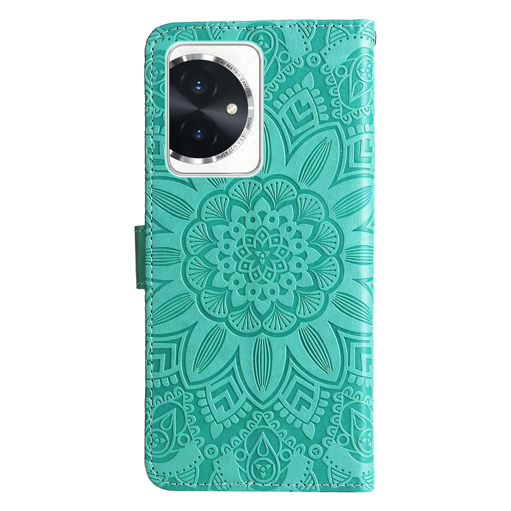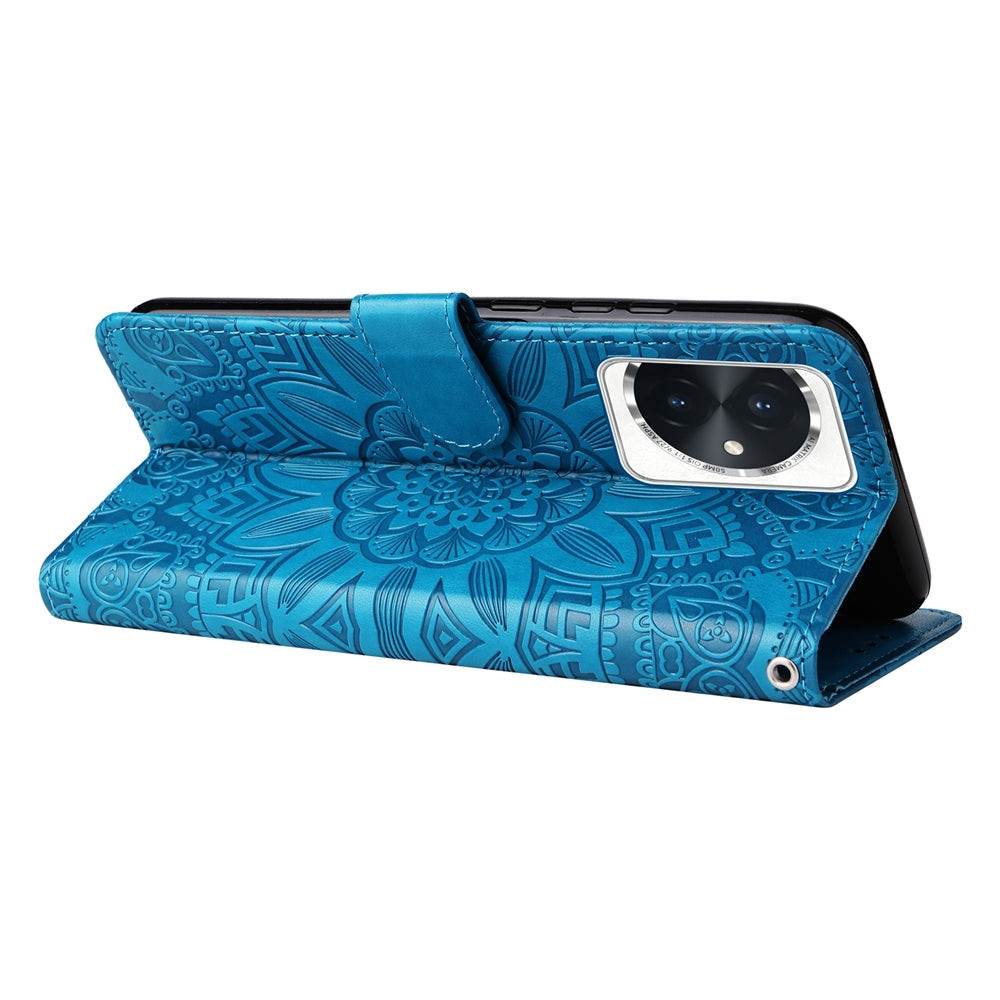 Honor 100 Sunflower Embossed Leather Wallet Phone Case with Kickstand and Card Holder