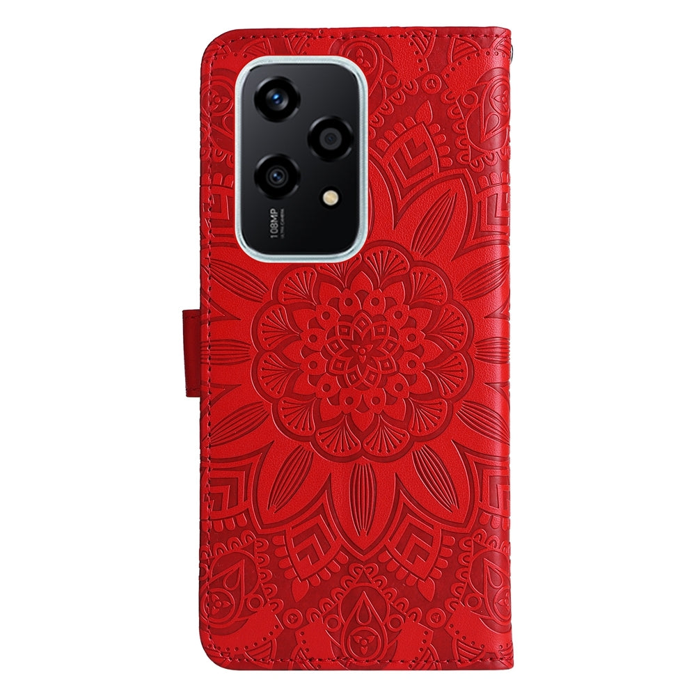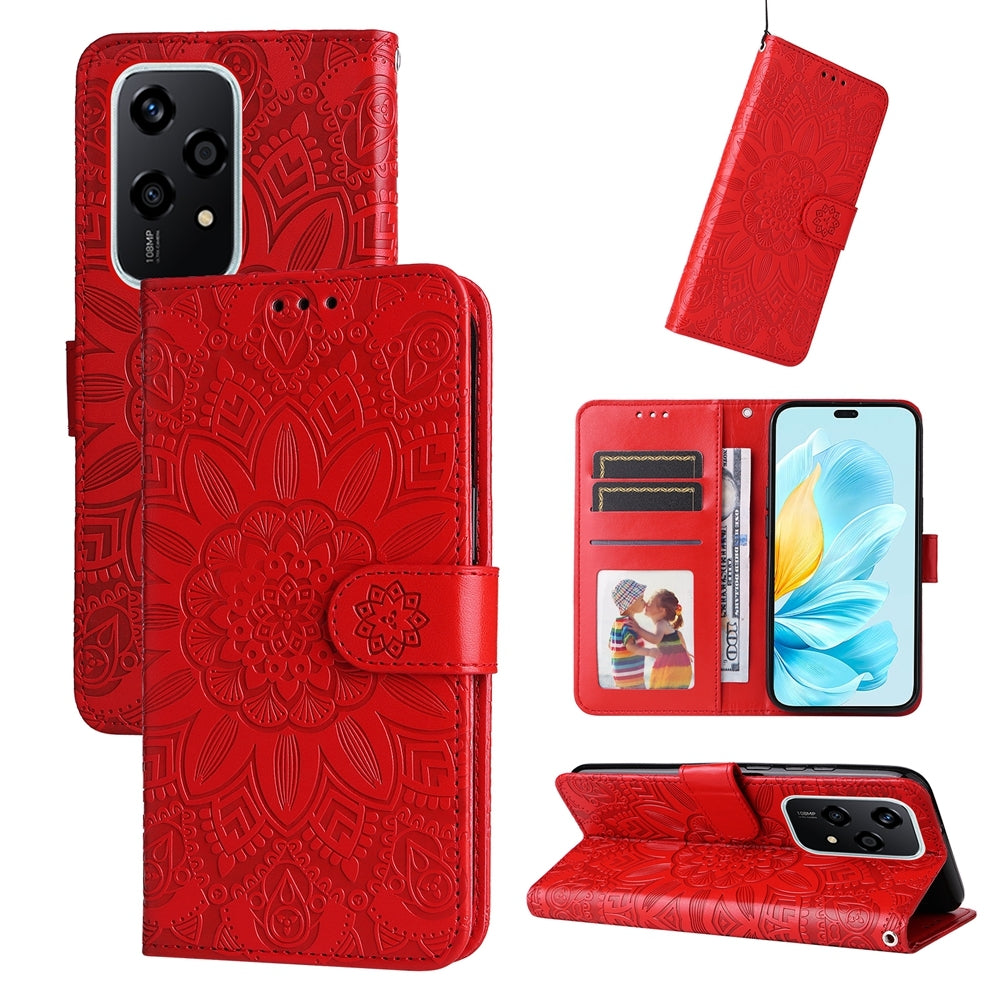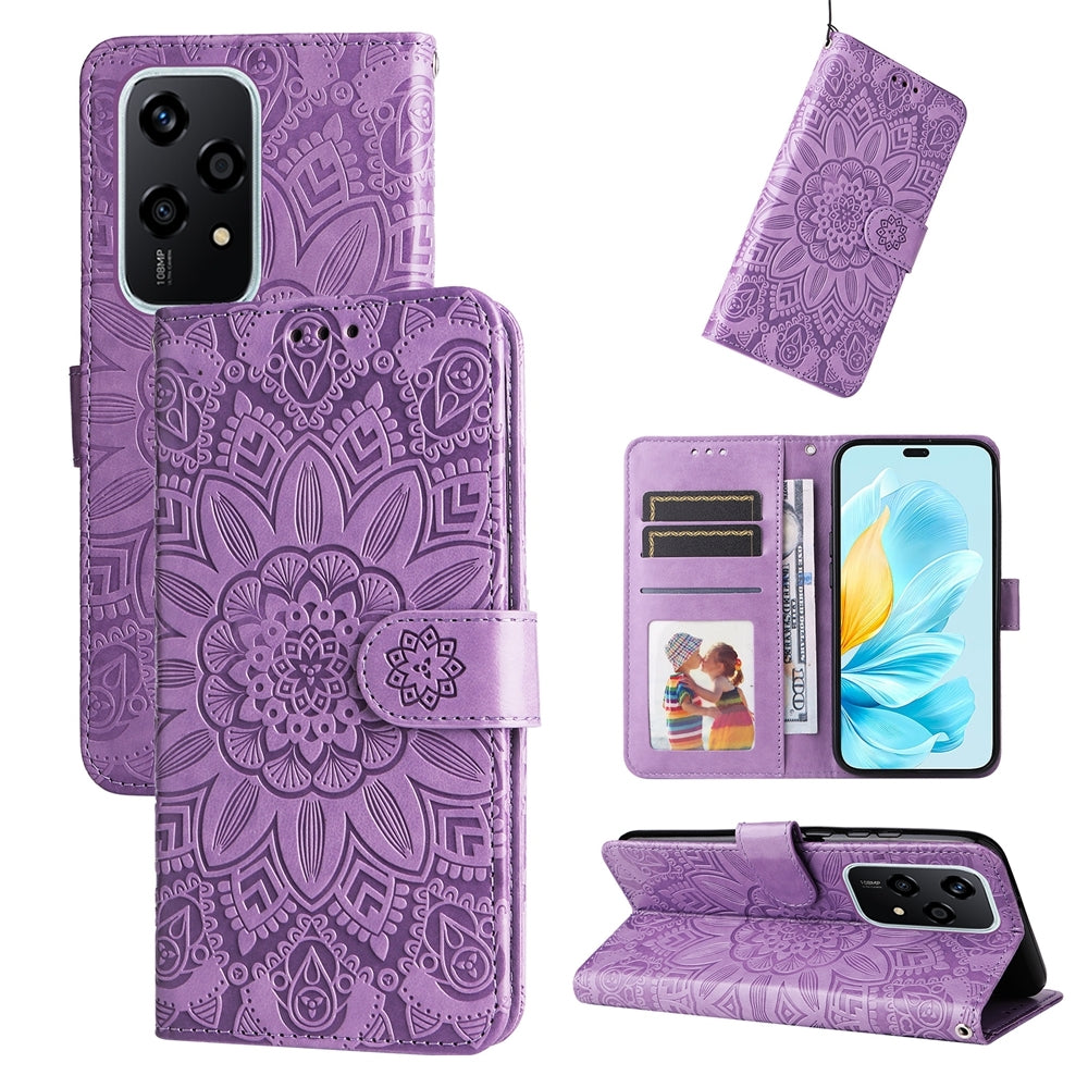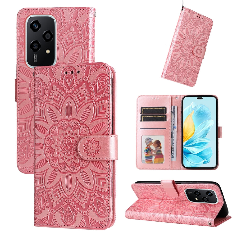 Honor 200 Lite Global Sunflower Embossed Leather Wallet Phone Case with Kickstand and Card Holder