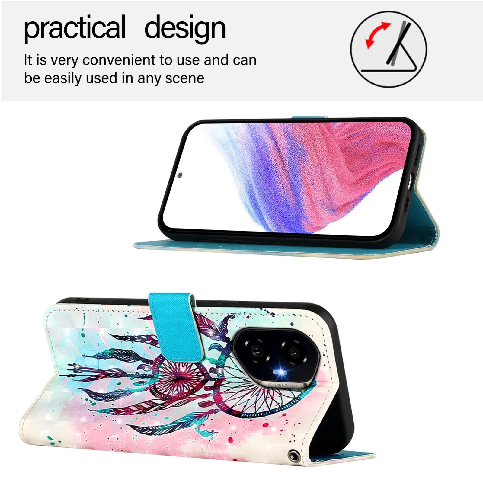 Honor 300 Leather Flip Phone Case with 3D Painted Design, Card Holder, Wallet & Stand Function - Durable Protection & Easy Access