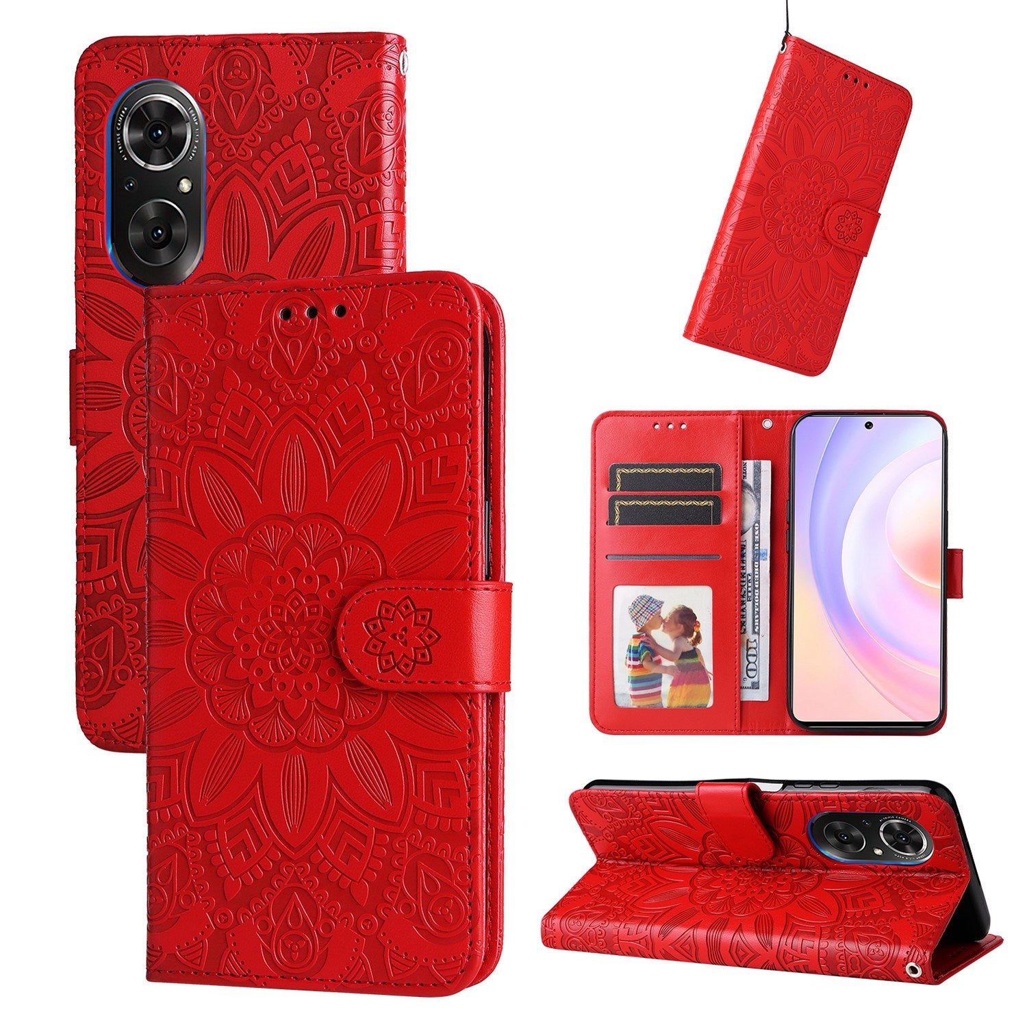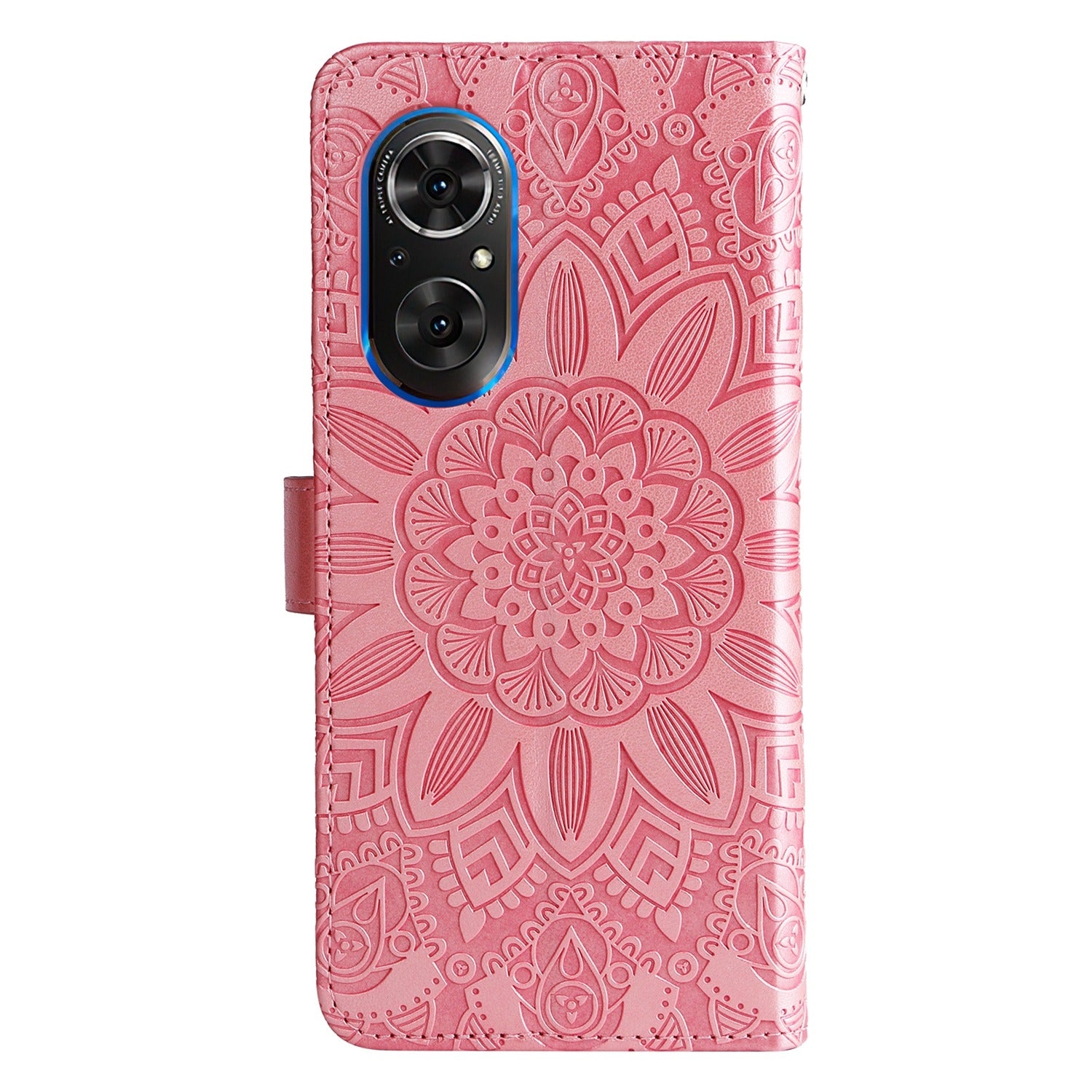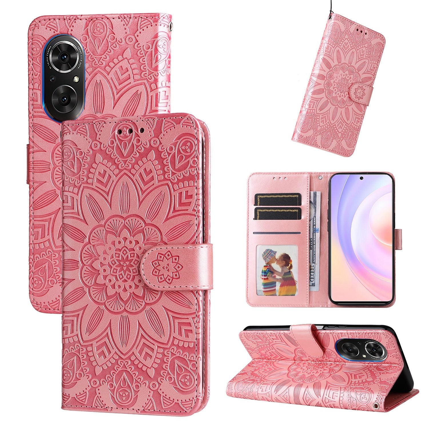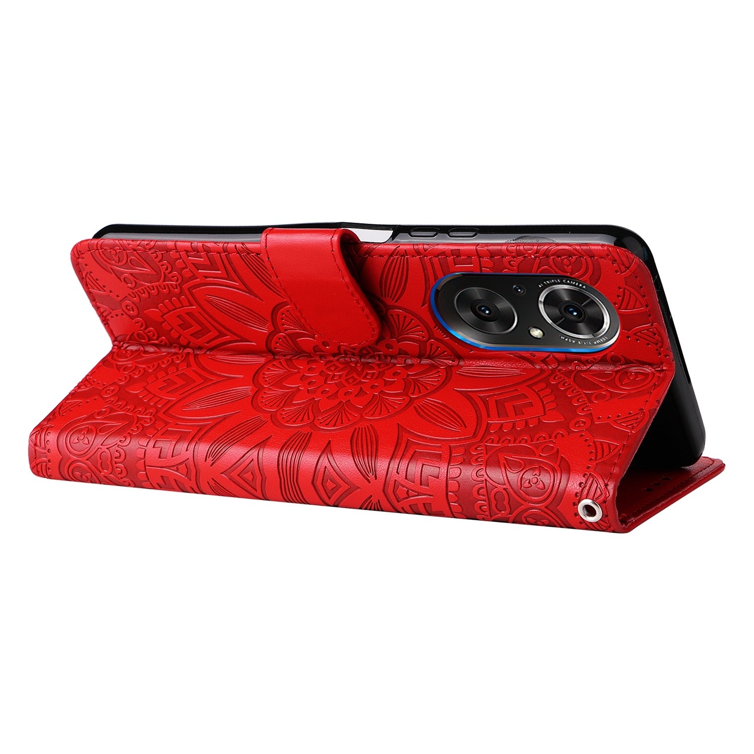 Honor 50 SE Sunflower Embossed Leather Wallet Phone Case with Kickstand and Card Holder