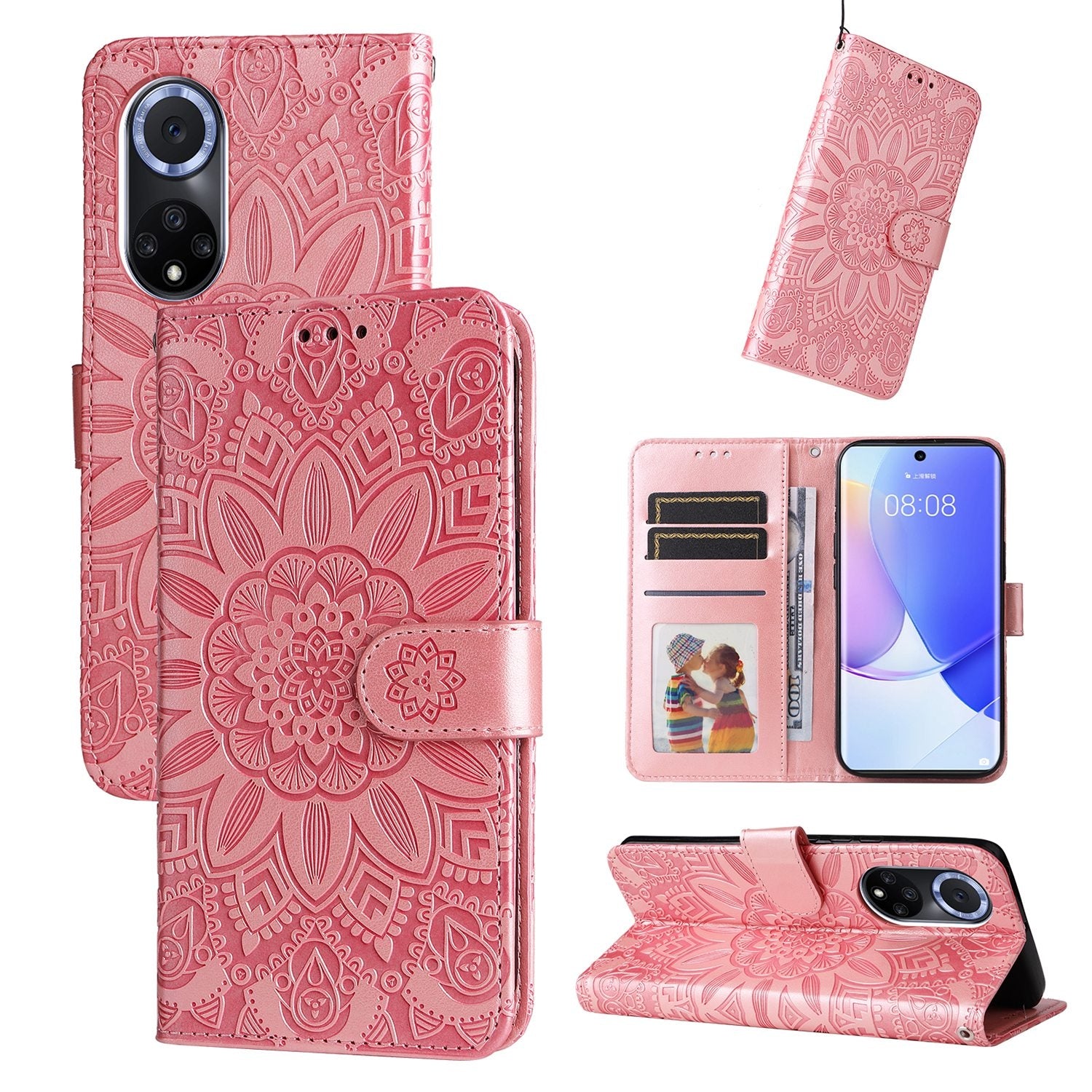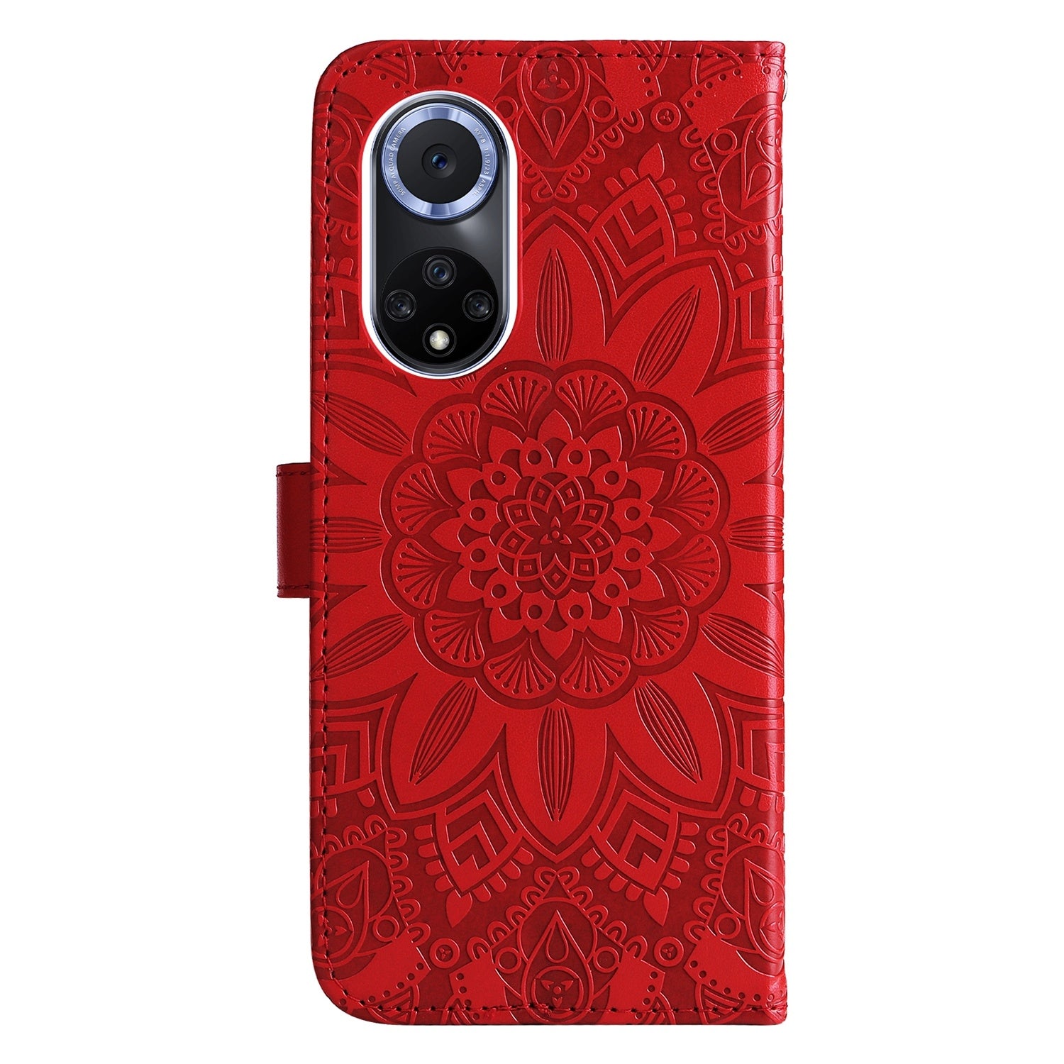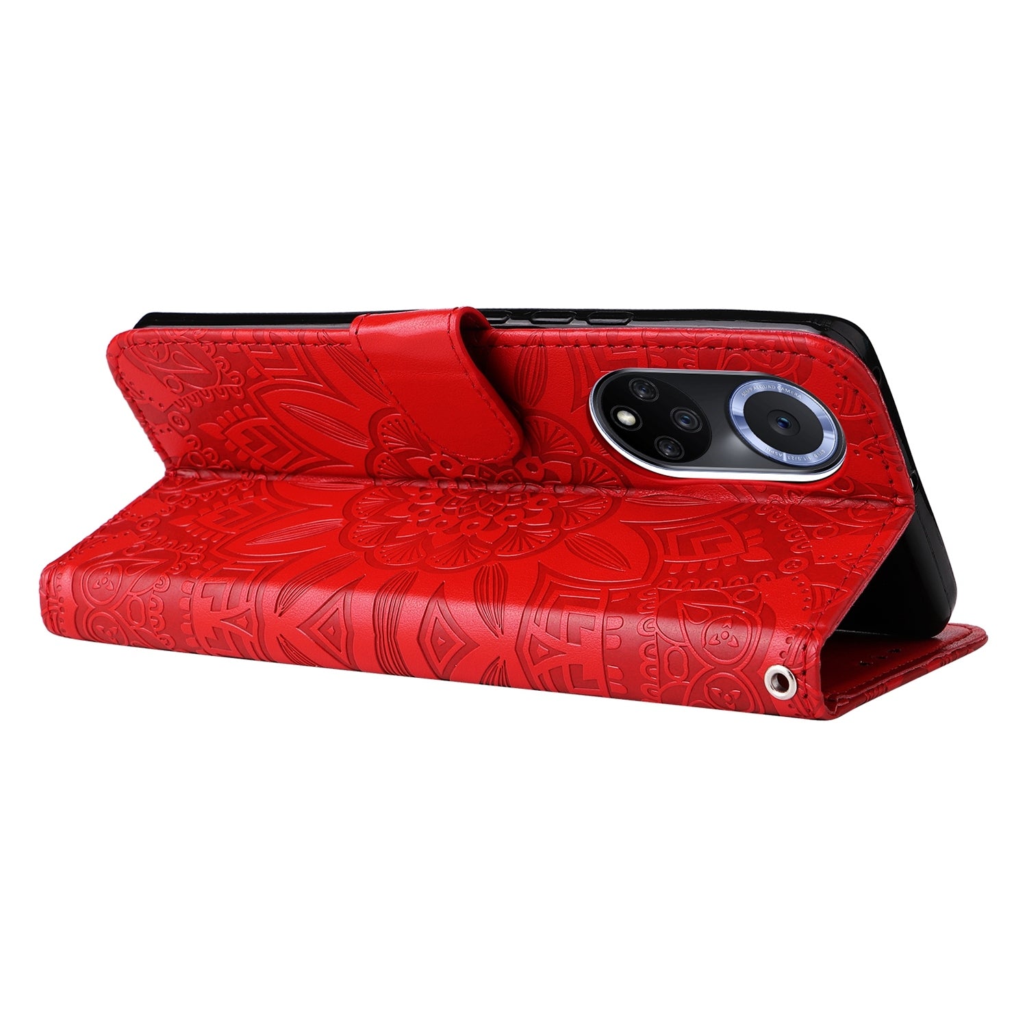 Honor 50 Sunflower Embossed Leather Wallet Phone Case with Kickstand and Card Holder