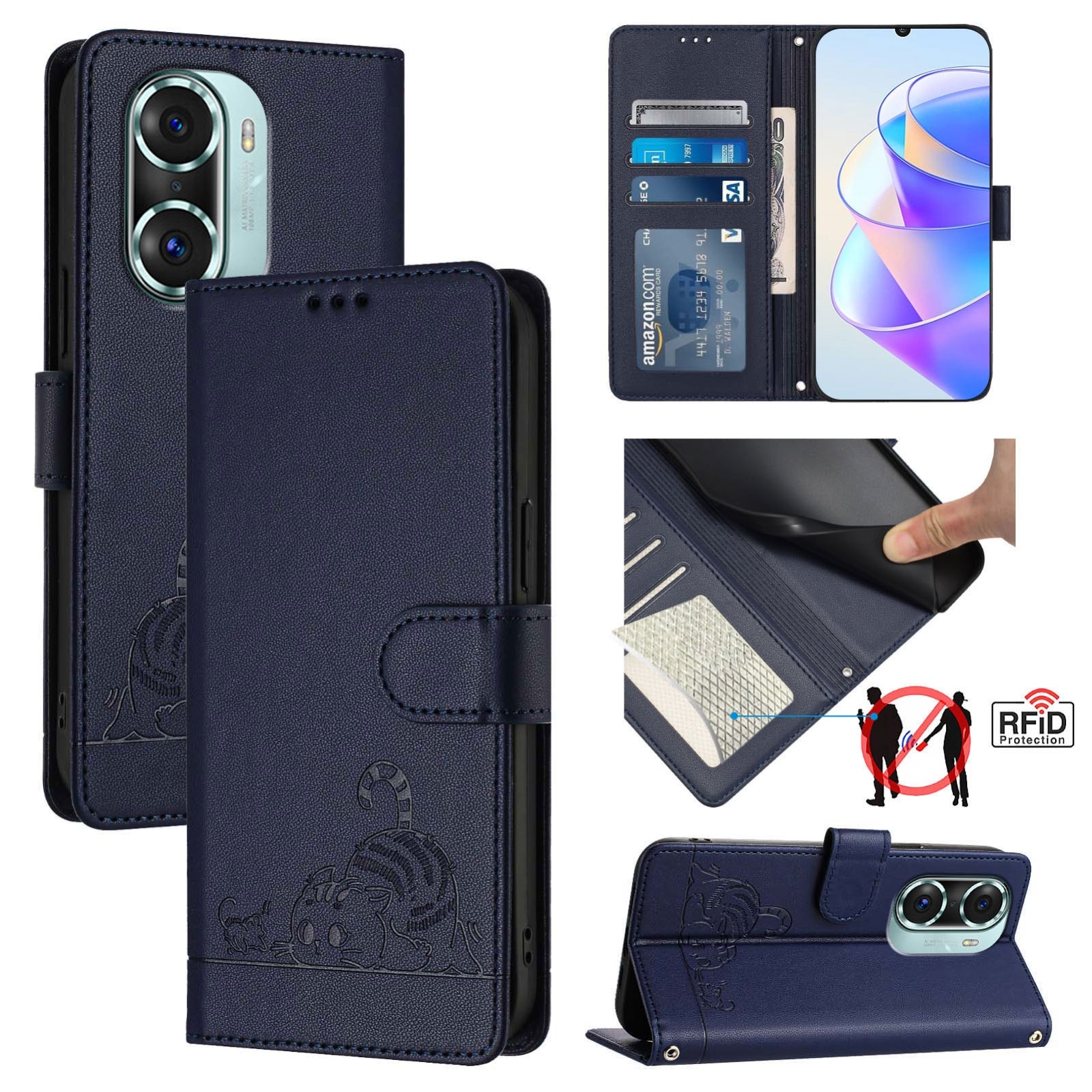 Explore the perfect blend of style and functionality with our Honor 60 Pro 5G Leather Phone Case. Featuring a charming cat and rat embossed pattern, this case offers multiple benefits: