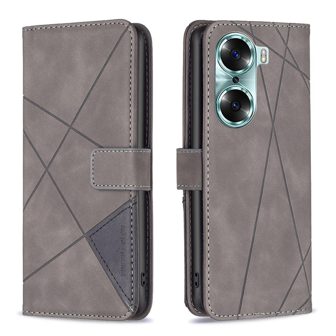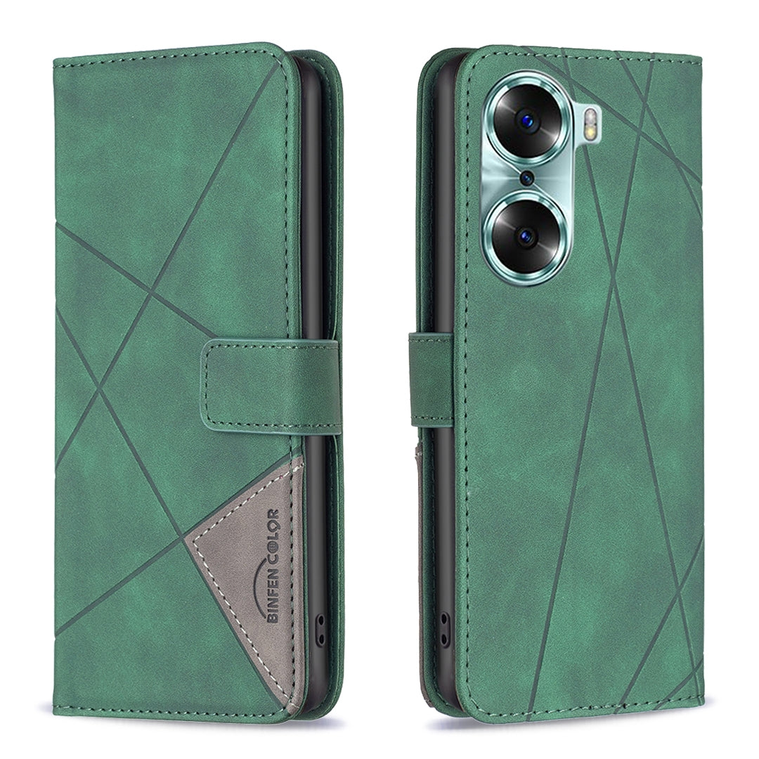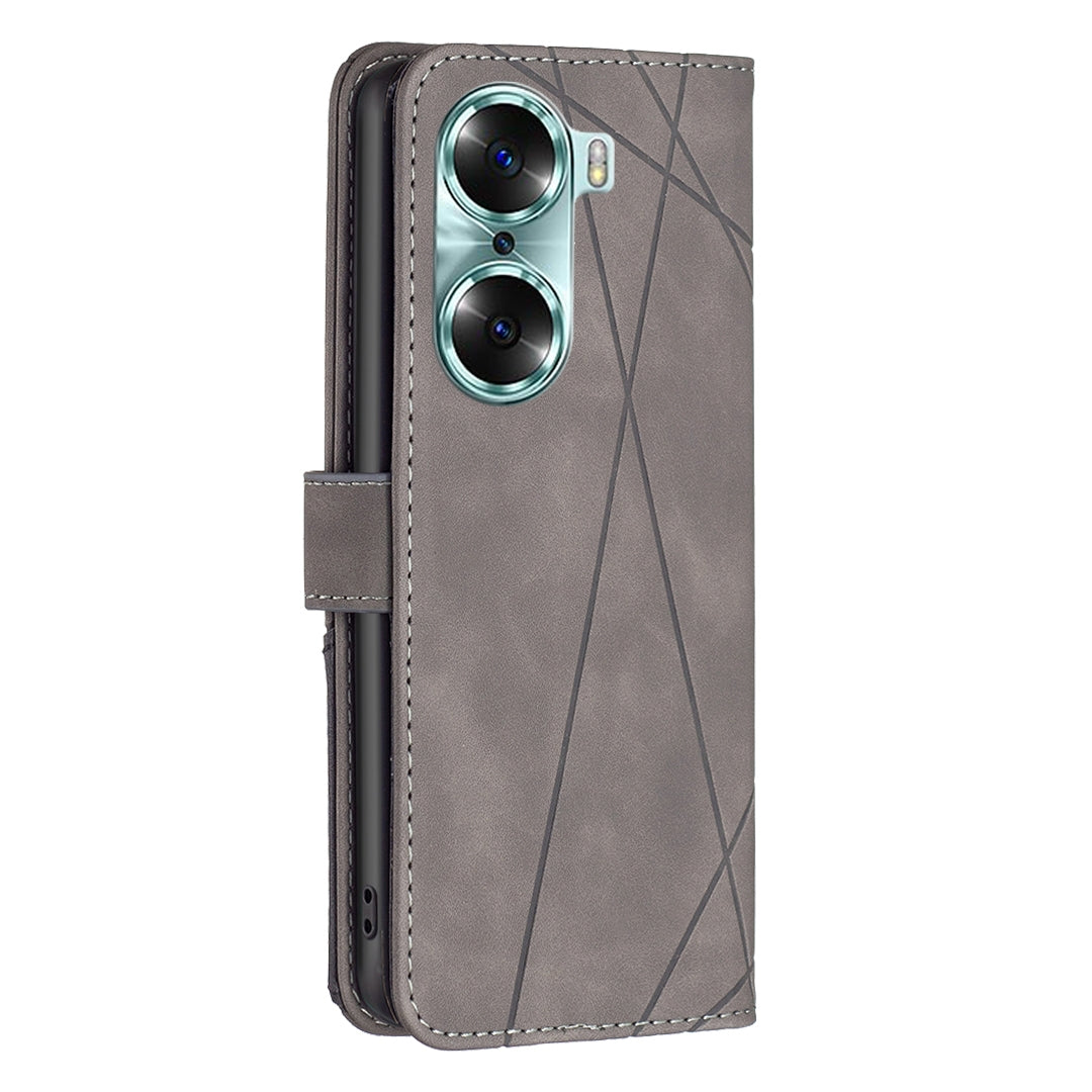 Honor 60 Rhombus Texture Leather Phone Case with Magnetic Buckle and Card Holder