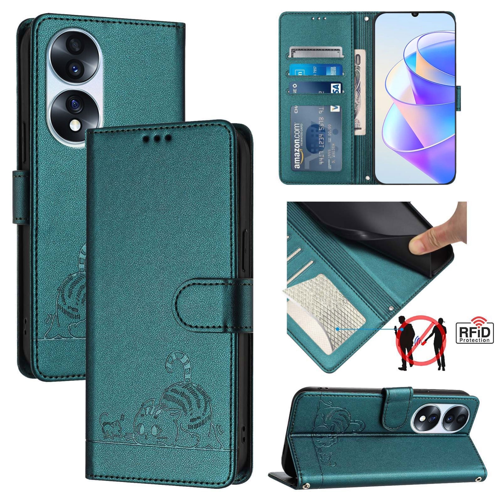 Explore the perfect blend of style and functionality with our Honor 70 5G Leather Phone Case. Featuring a charming cat and rat embossed pattern, this case offers multiple benefits:
