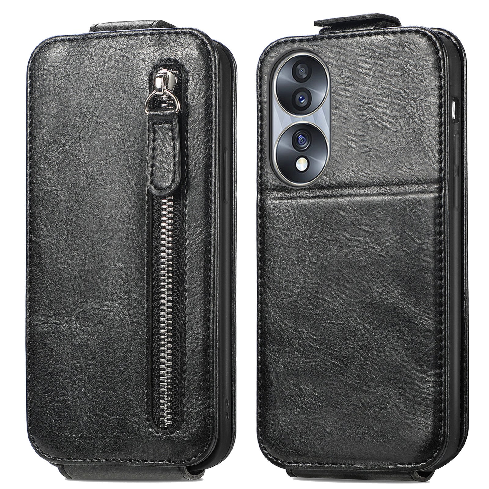 Honor 70 Zipper Wallet Case - Vertical Flip Leather Phone Cover with Multiple Card Slots and Stand