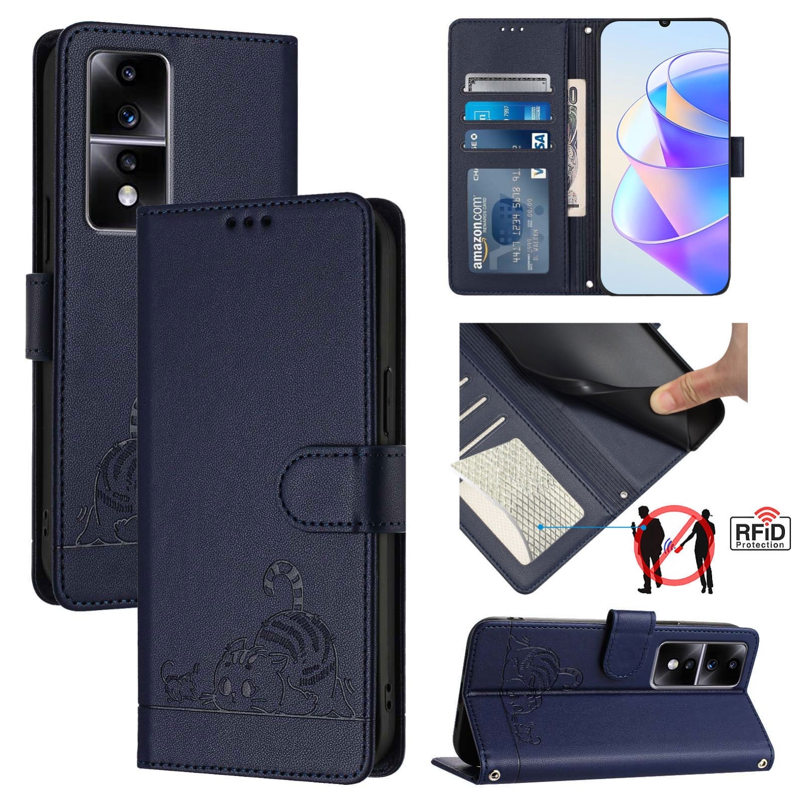 Honor 80 GT 5G Cat and Rat Embossed Pattern, RFID Leather Phone Case with Lanyard, Kickstand, and Wallet Features
