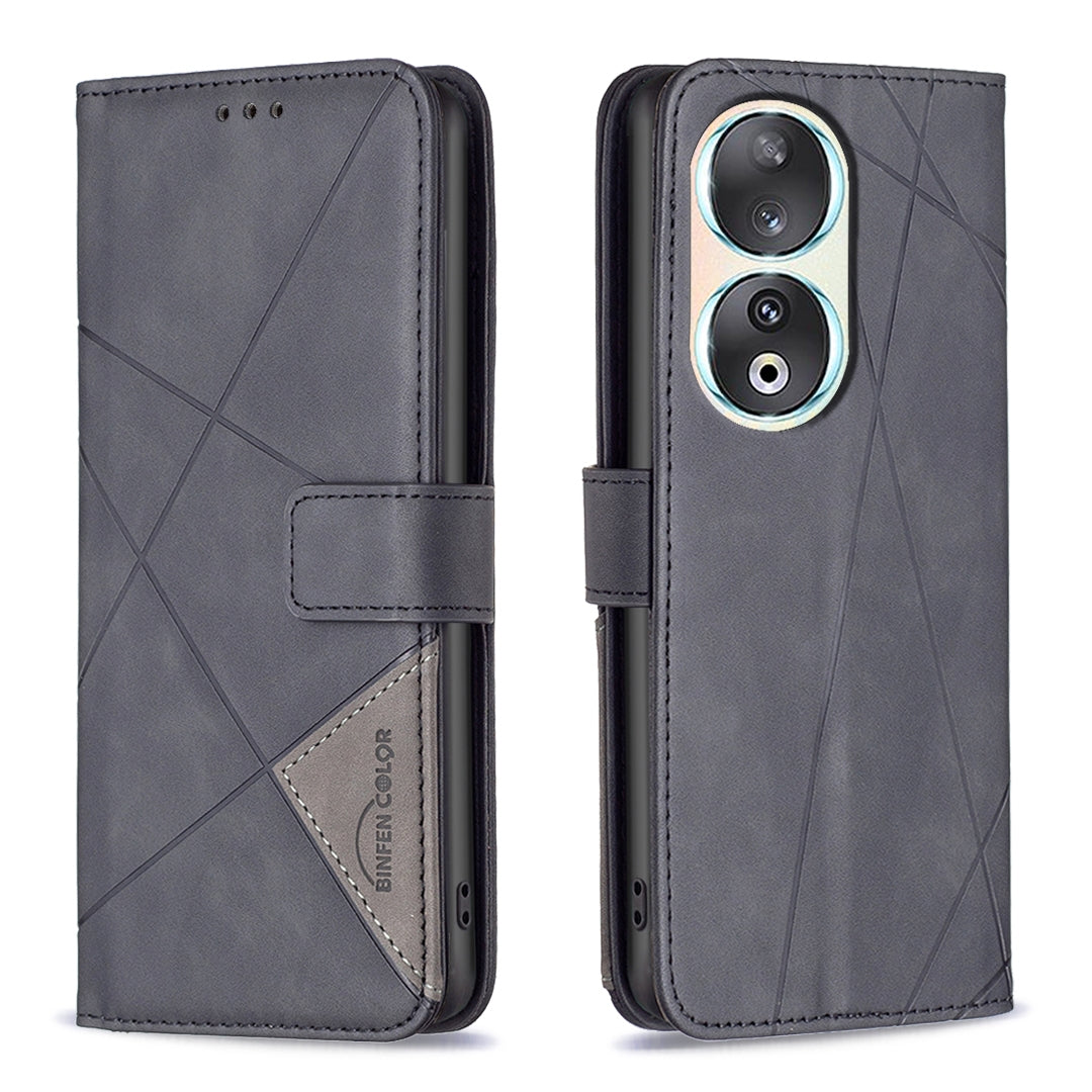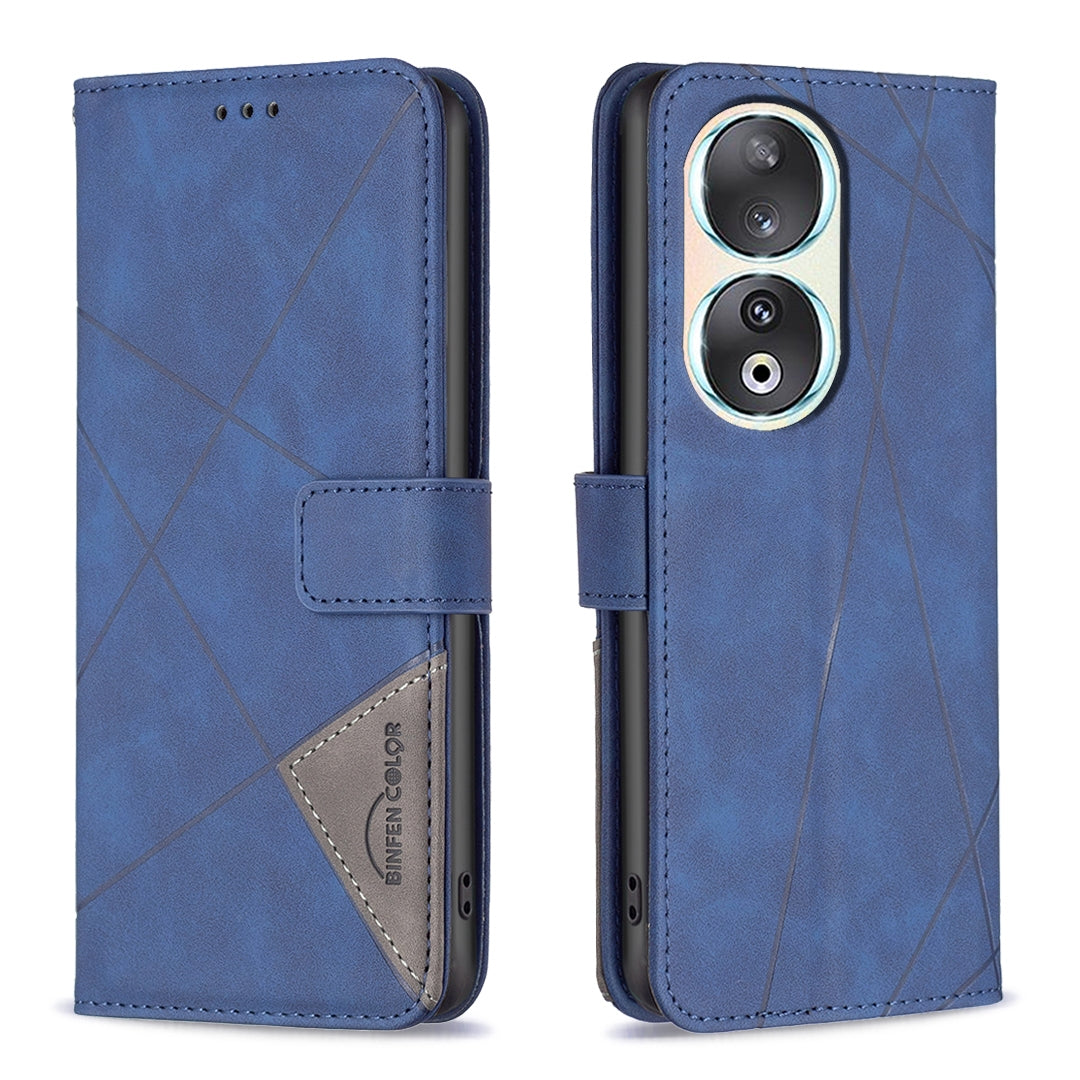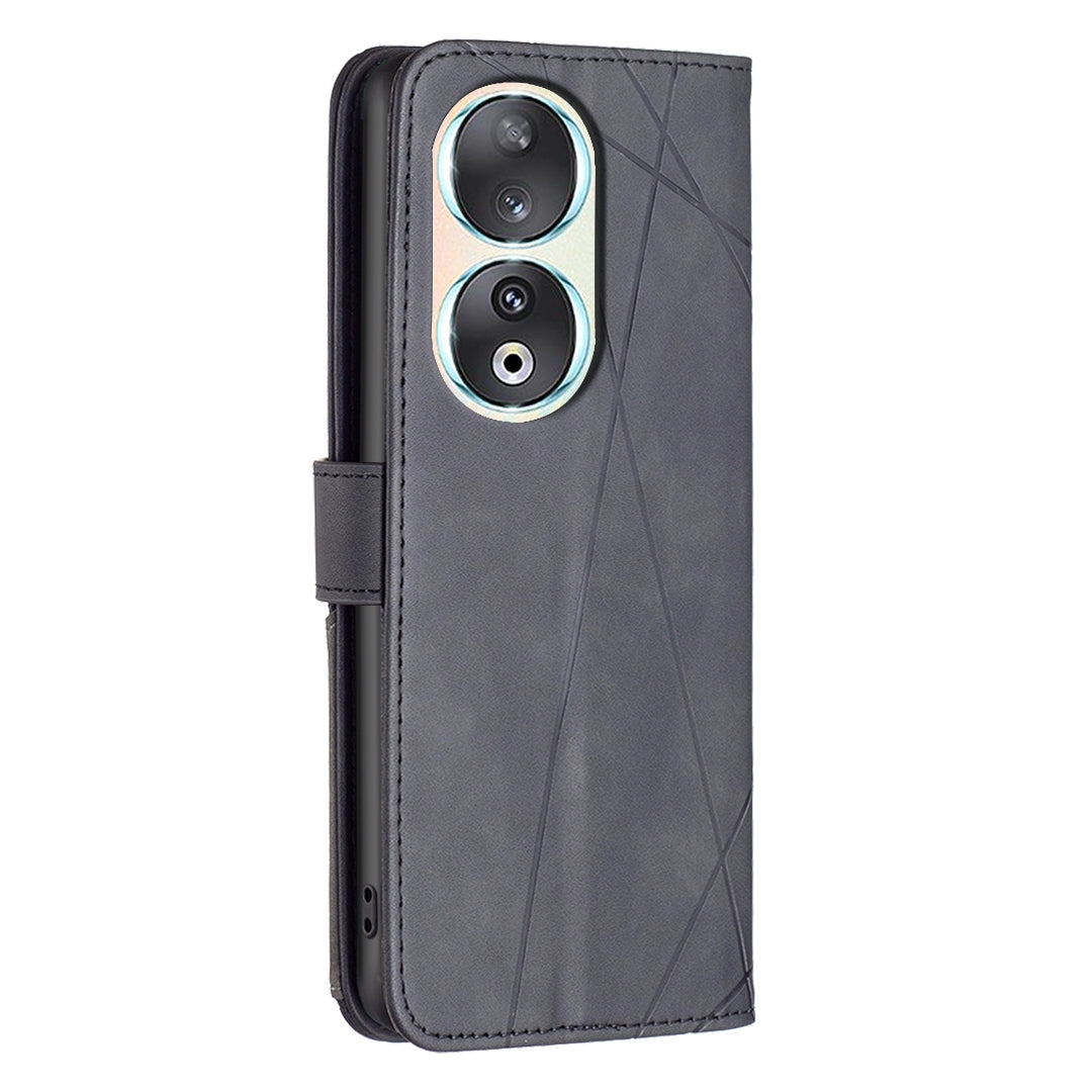 Honor 90 5G Rhombus Texture Leather Phone Case with Magnetic Buckle and Card Holder