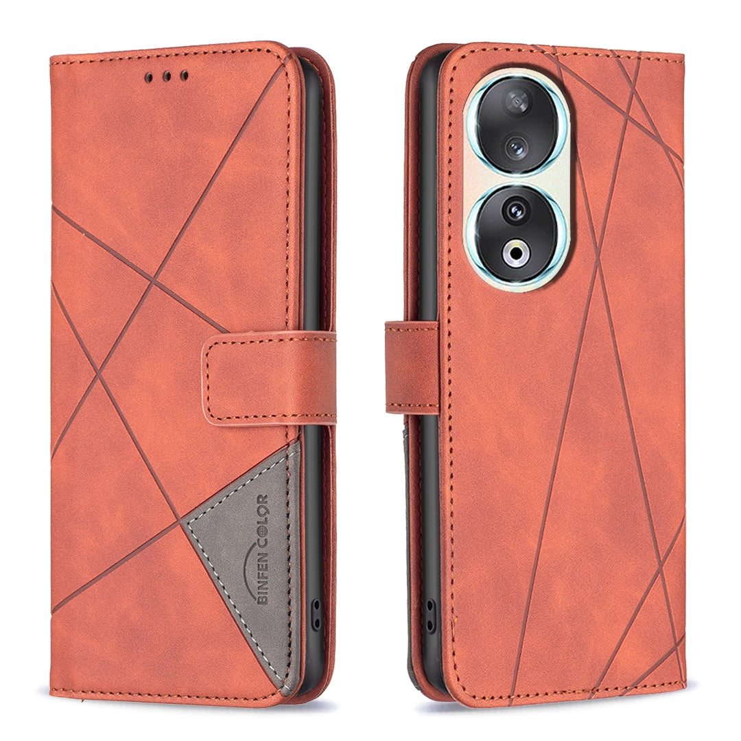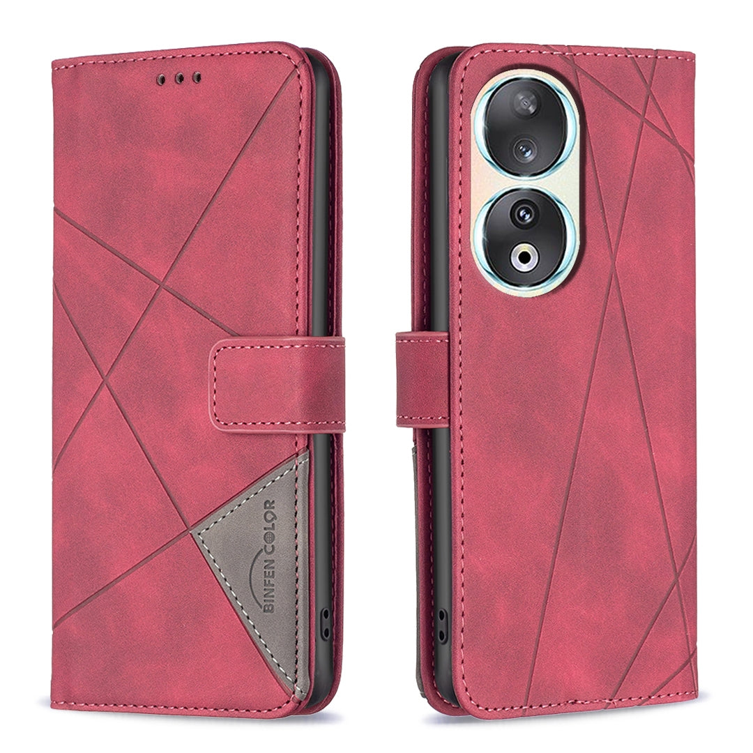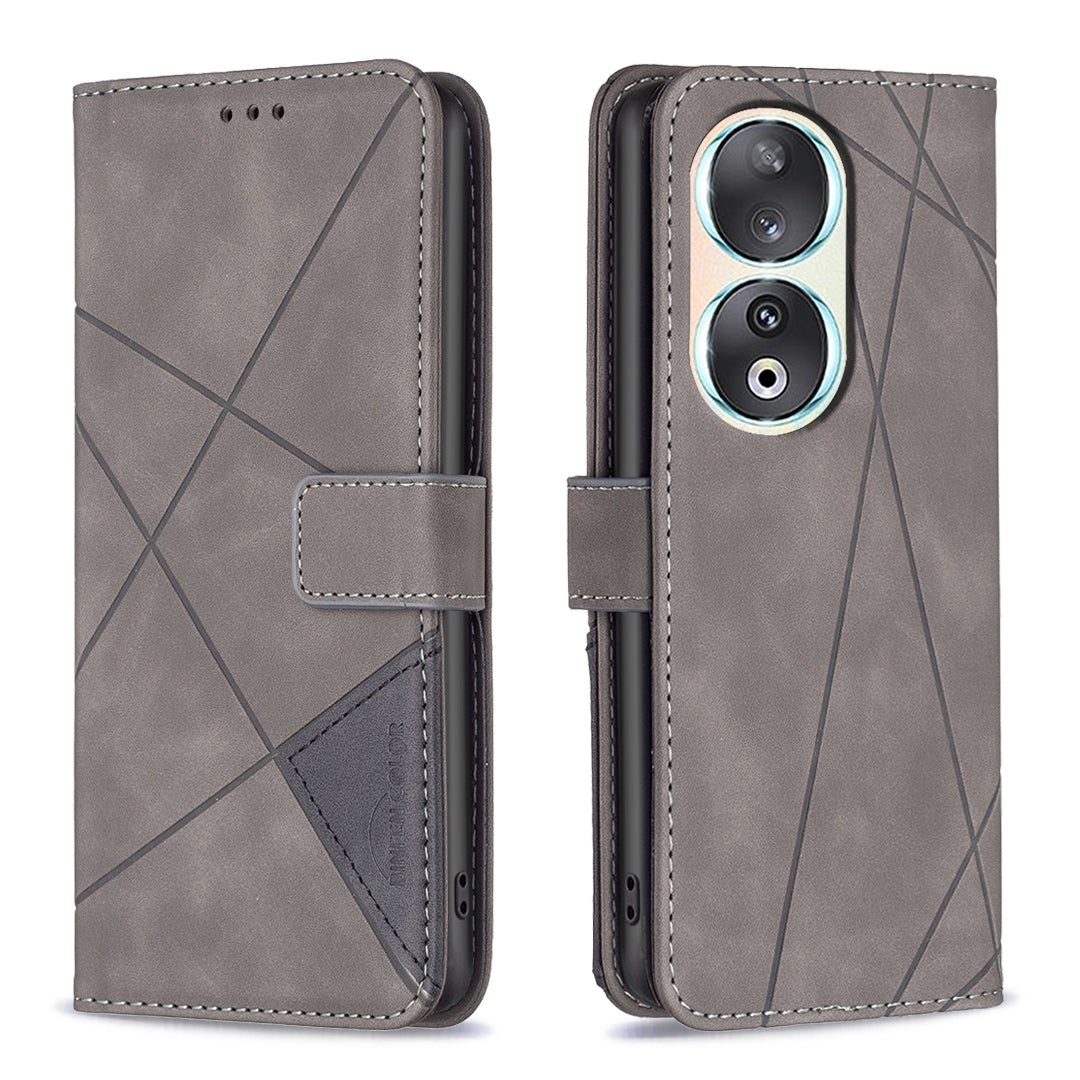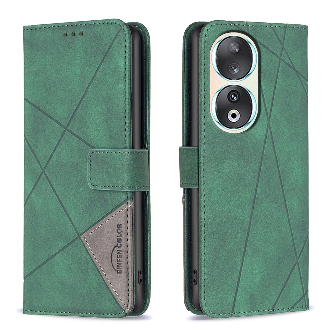 Honor 90 5G Rhombus Texture Leather Phone Case with Magnetic Buckle and Card Holder