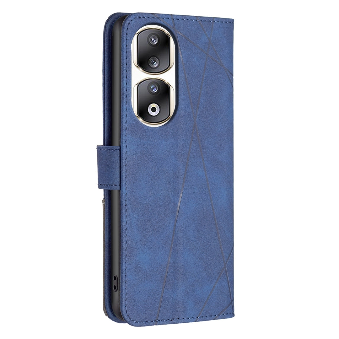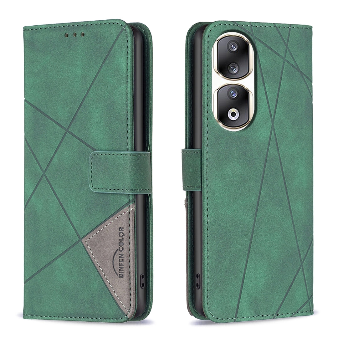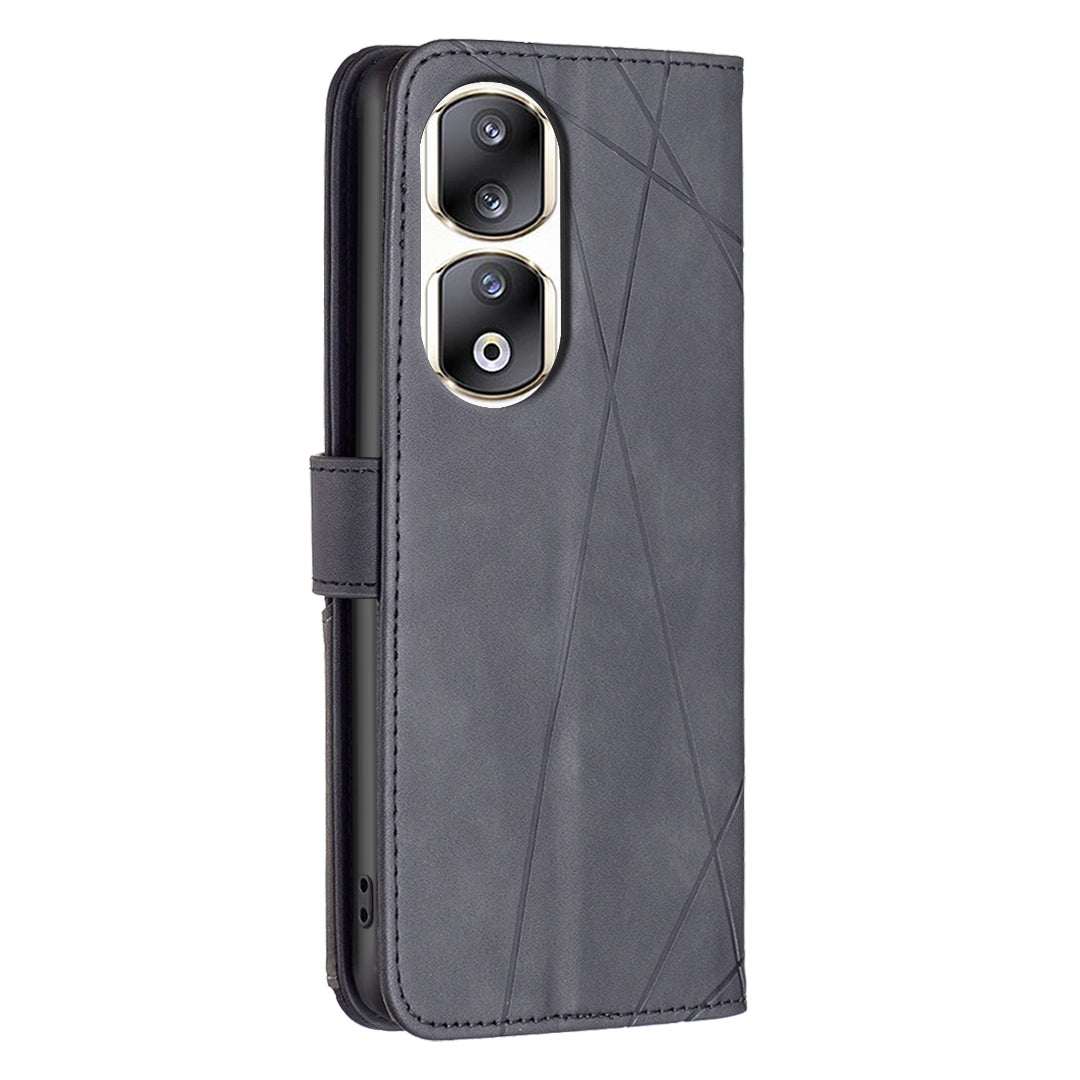 Honor 90 Pro Rhombus Texture Leather Phone Case with Magnetic Buckle and Card Holder