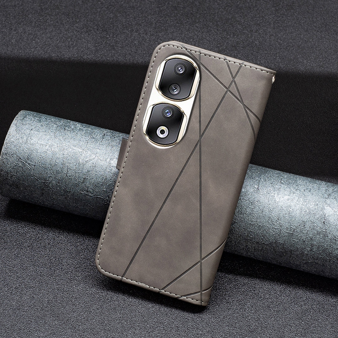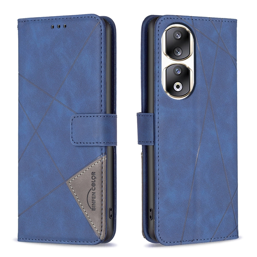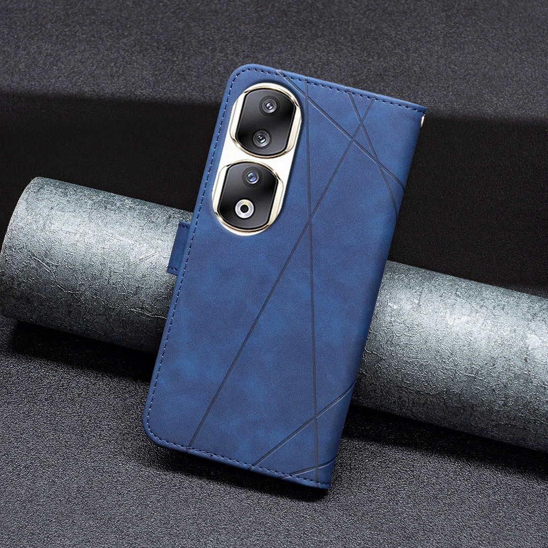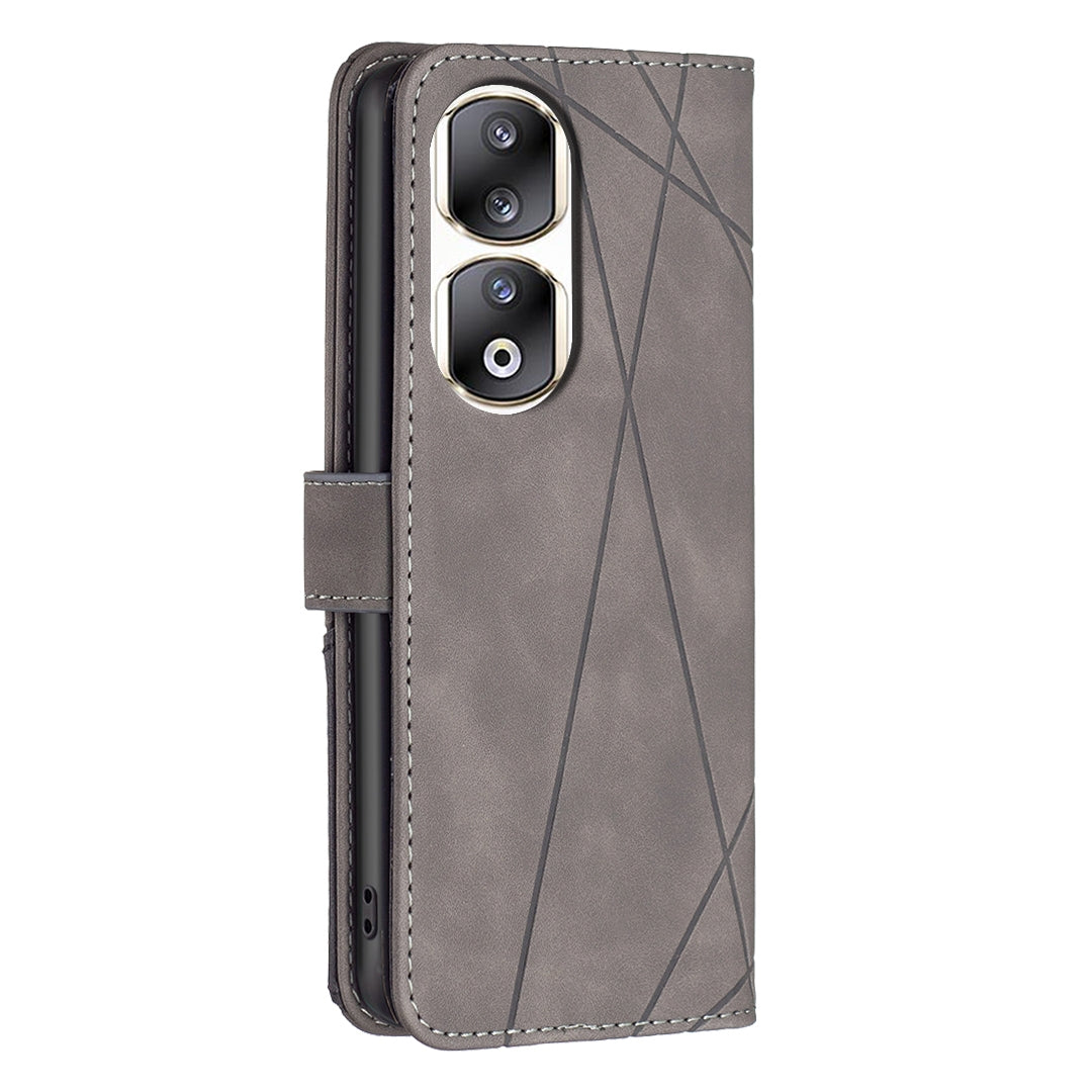 Honor 90 Pro Rhombus Texture Leather Phone Case with Magnetic Buckle and Card Holder