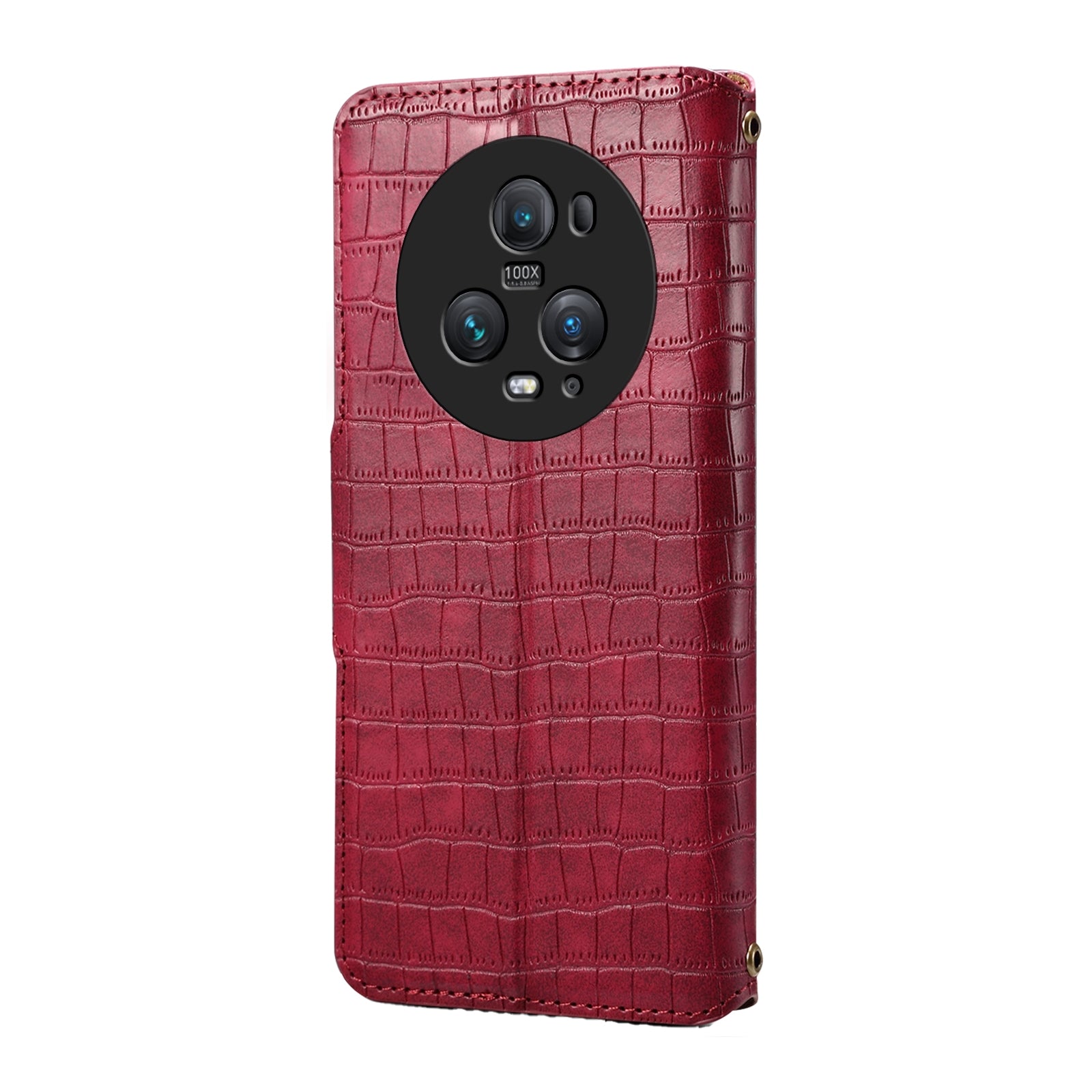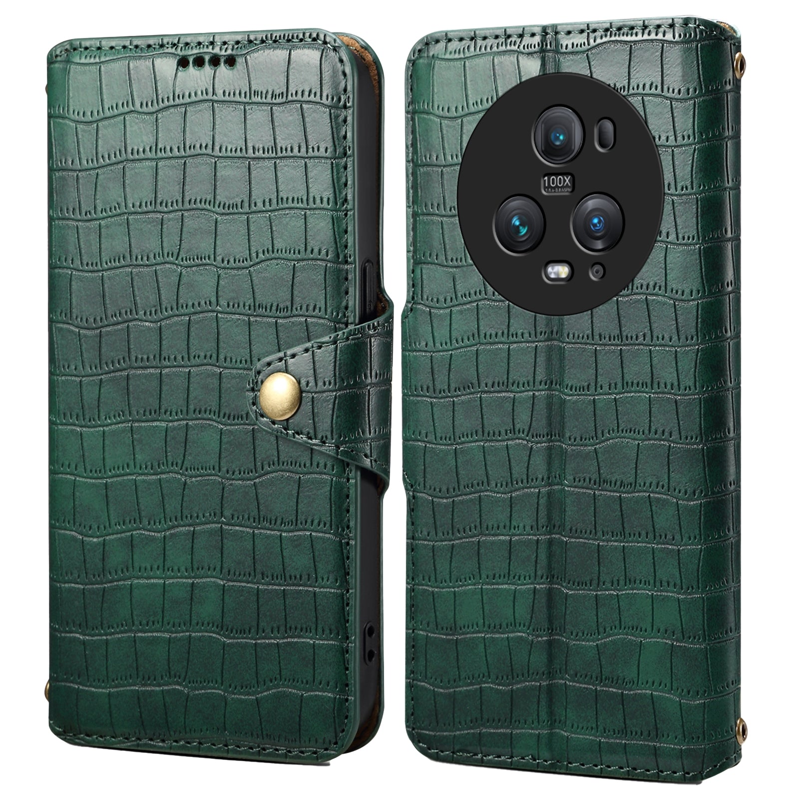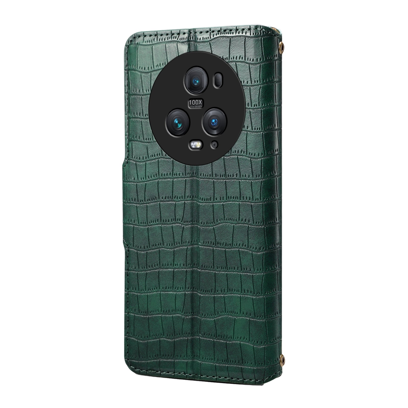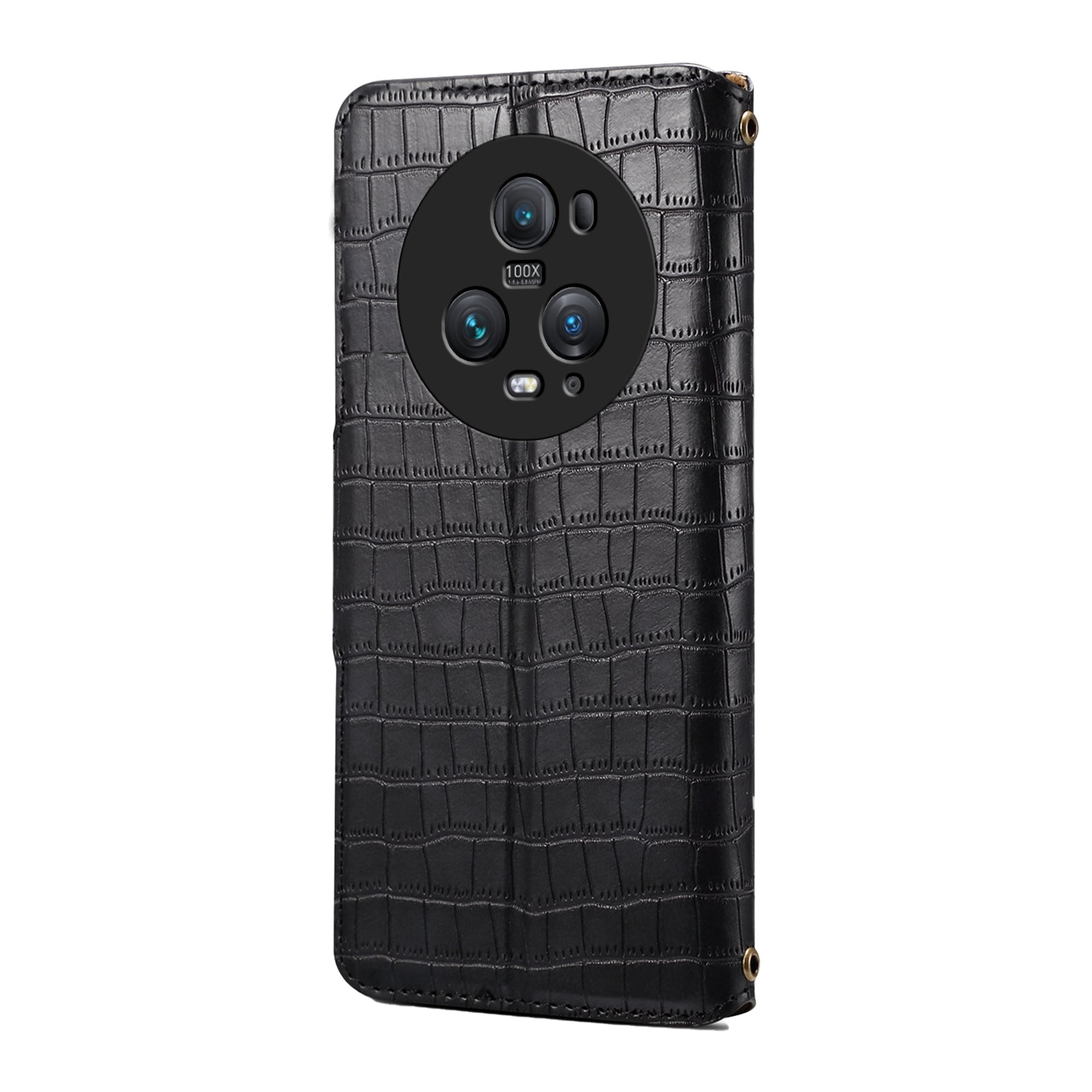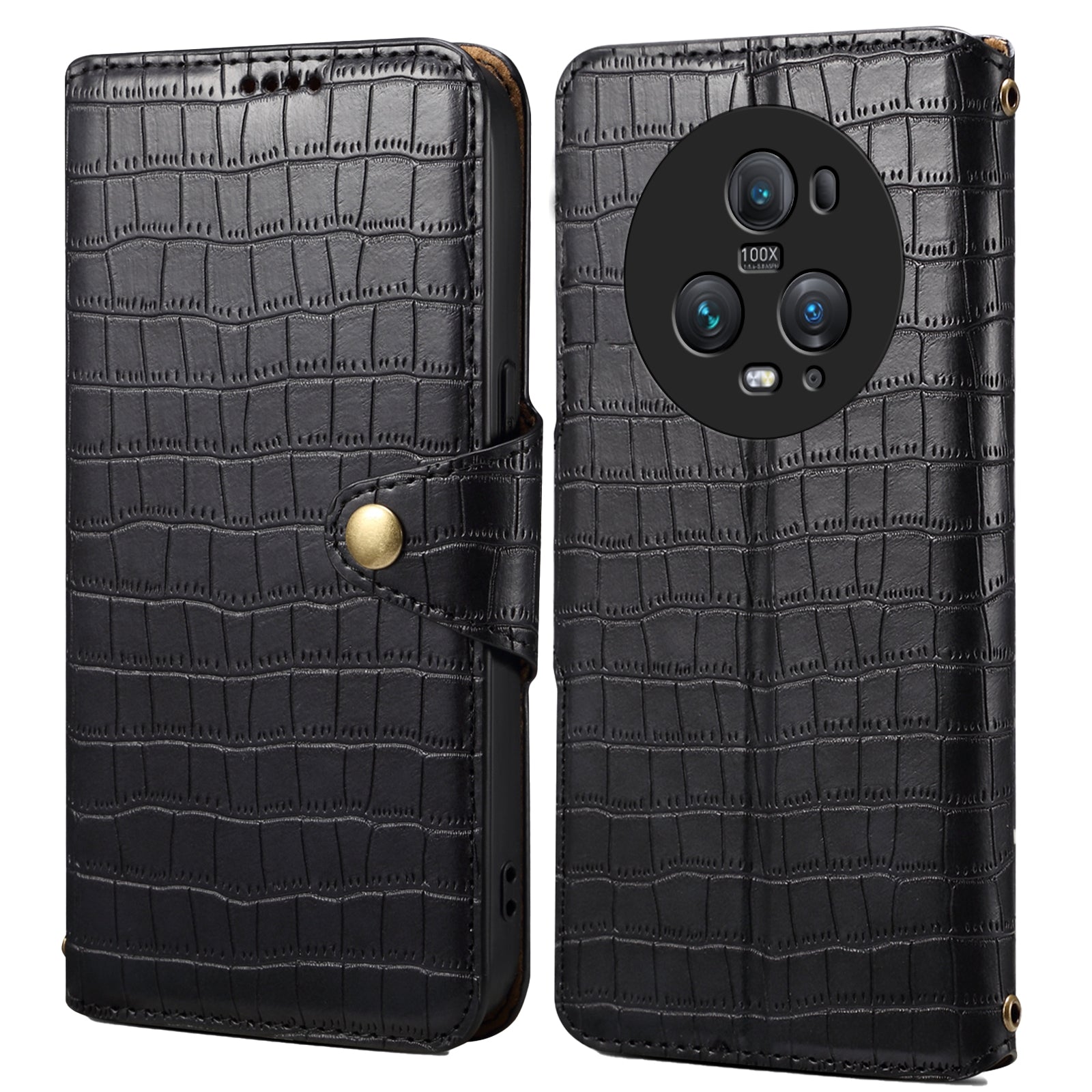 Honor Magic5 Pro Denior Leather Case - Crocodile Texture with Oil Edge, Wallet & Kickstand Features