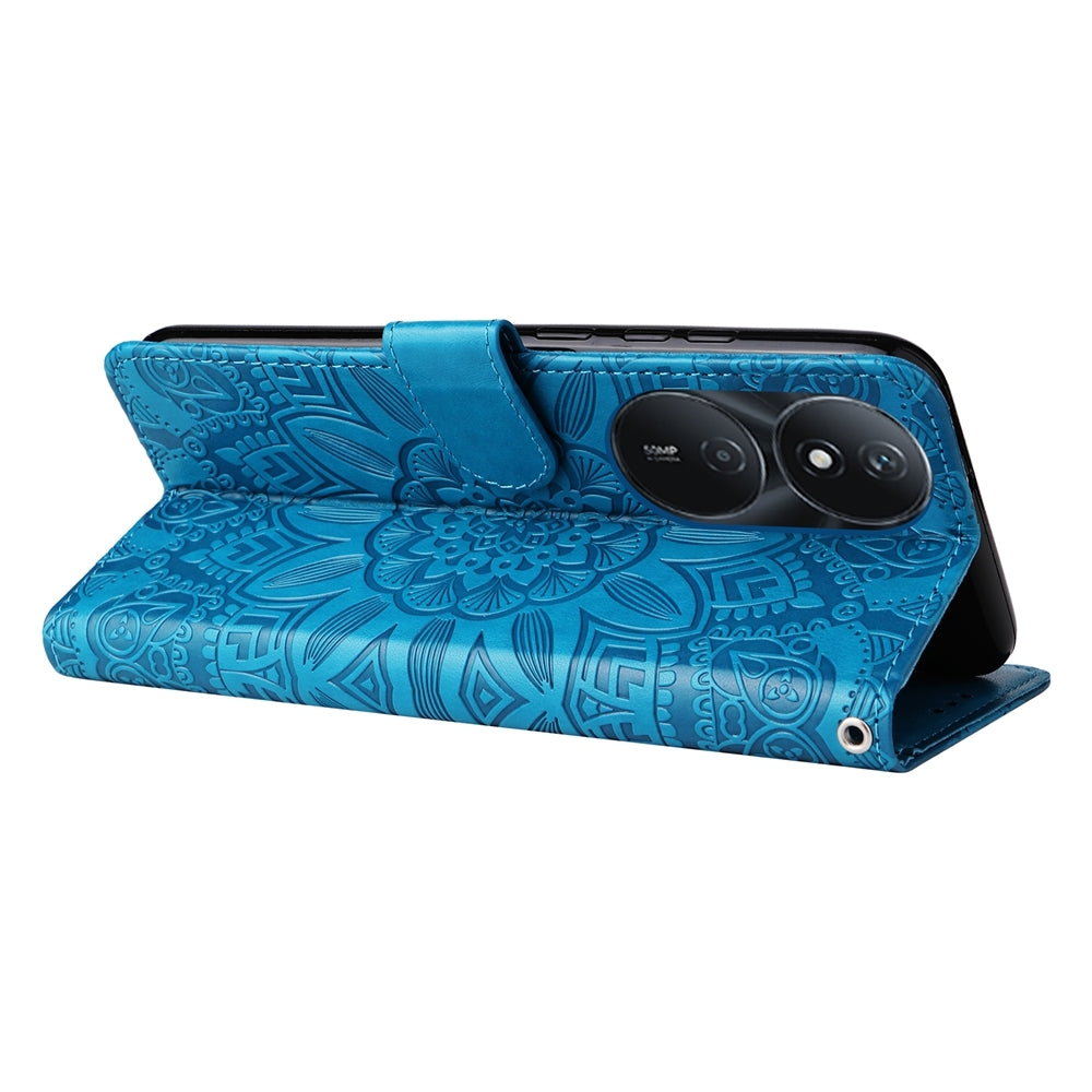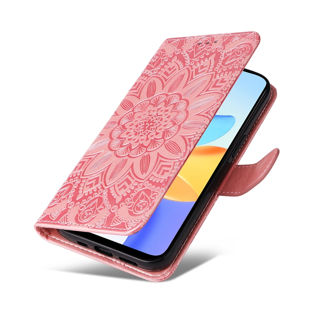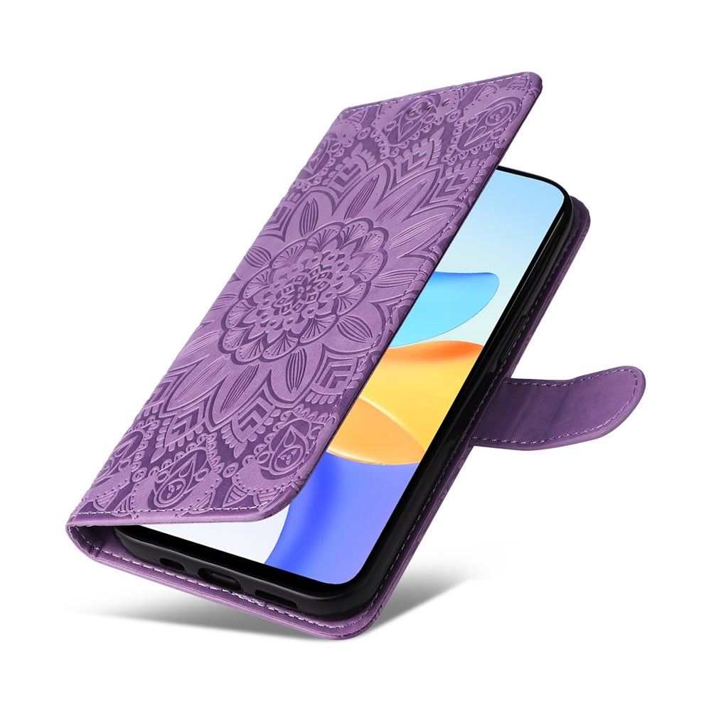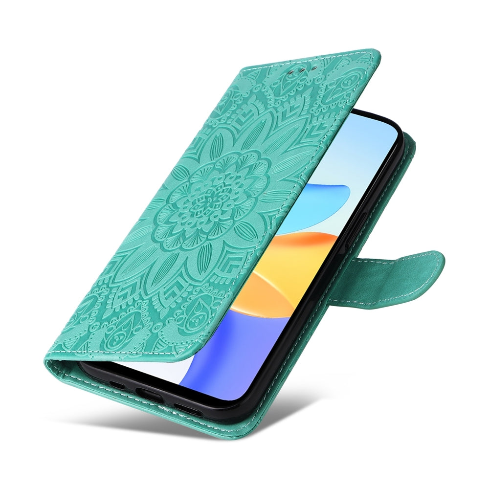 Honor Play 50 Plus Sunflower Embossed Leather Wallet Phone Case with Kickstand and Card Holder