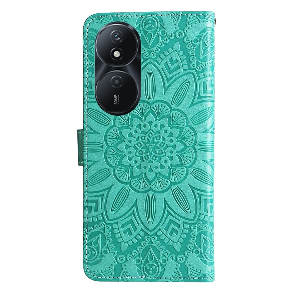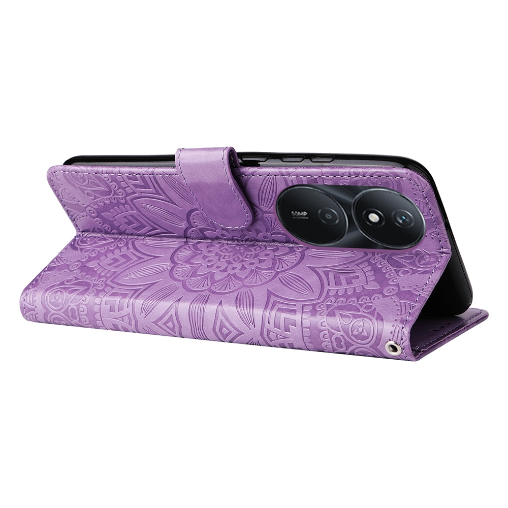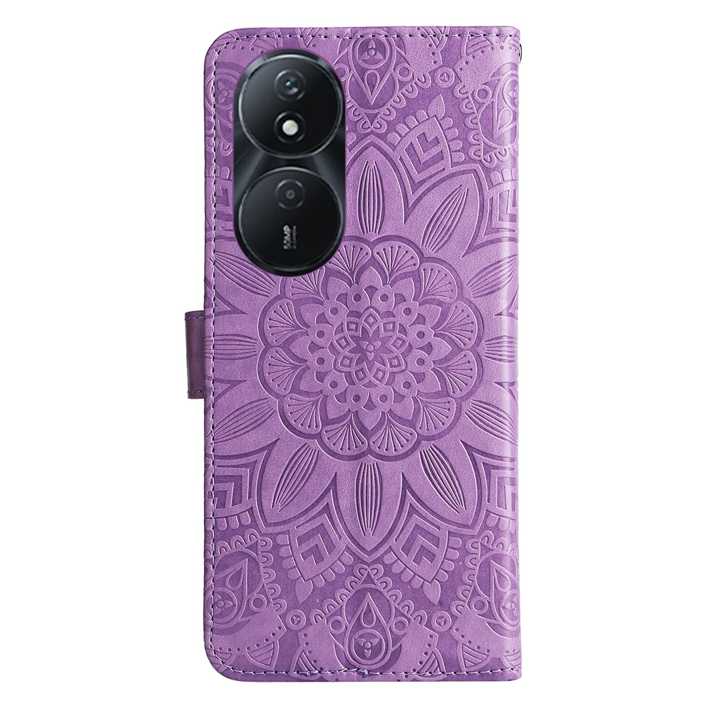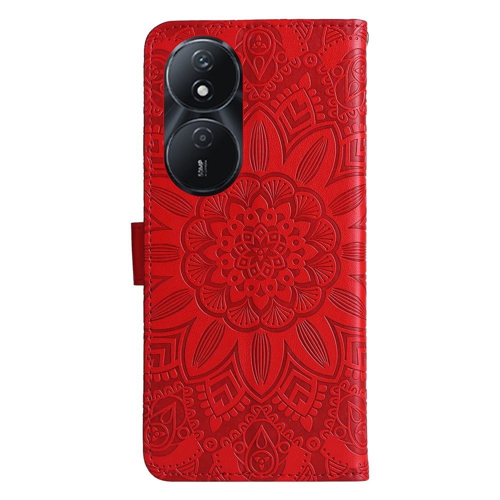 Honor Play 50 Plus Sunflower Embossed Leather Wallet Phone Case with Kickstand and Card Holder