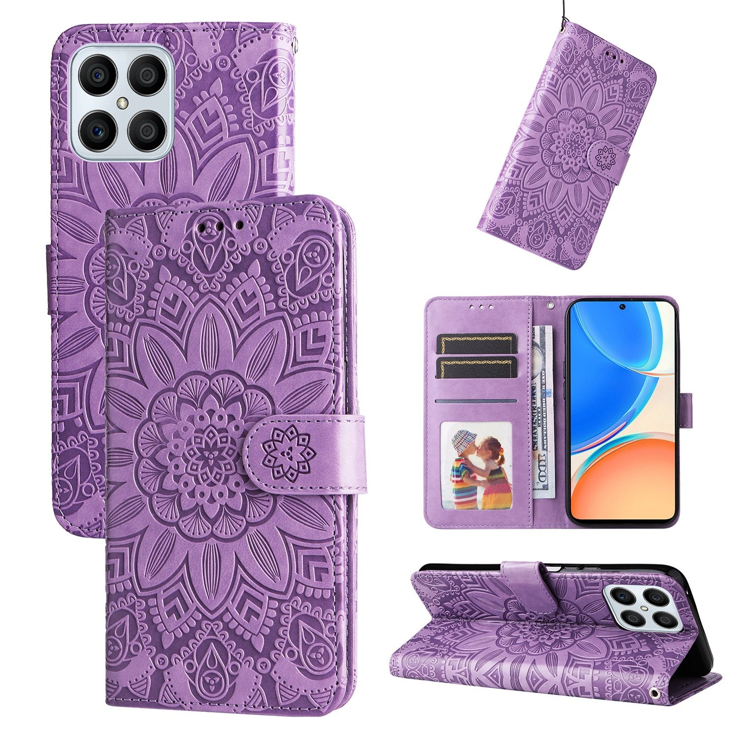 Honor X30i Sunflower Embossed Leather Wallet Phone Case with Kickstand and Card Holder