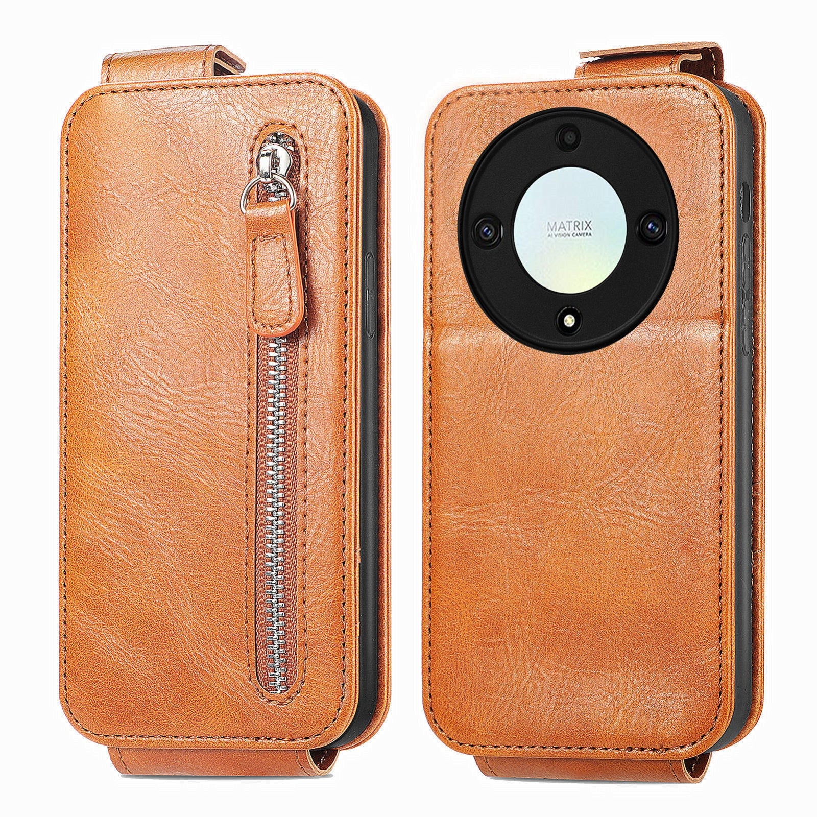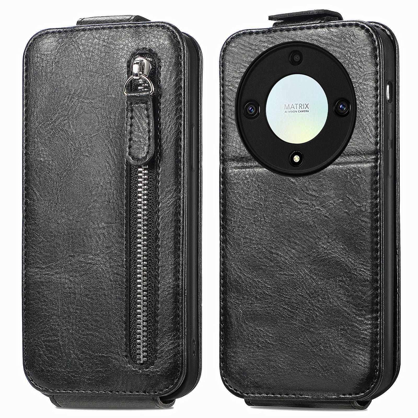 Honor X40 5G Zipper Wallet Case - Vertical Flip Leather Phone Cover with Multiple Card Slots and Stand