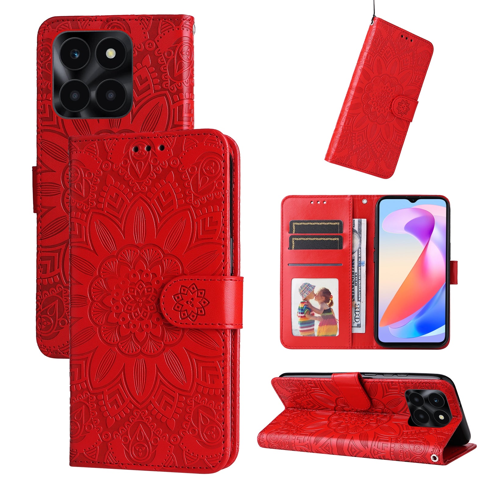 Honor X6a Sunflower Embossed Leather Wallet Phone Case with Kickstand and Card Holder