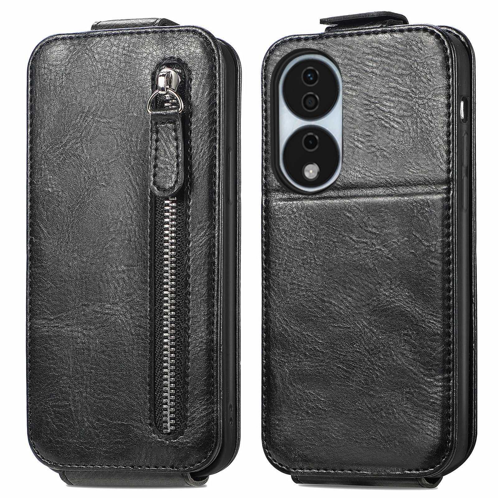 Honor X7b Zipper Wallet Case - Vertical Flip Leather Phone Cover with Multiple Card Slots and Stand